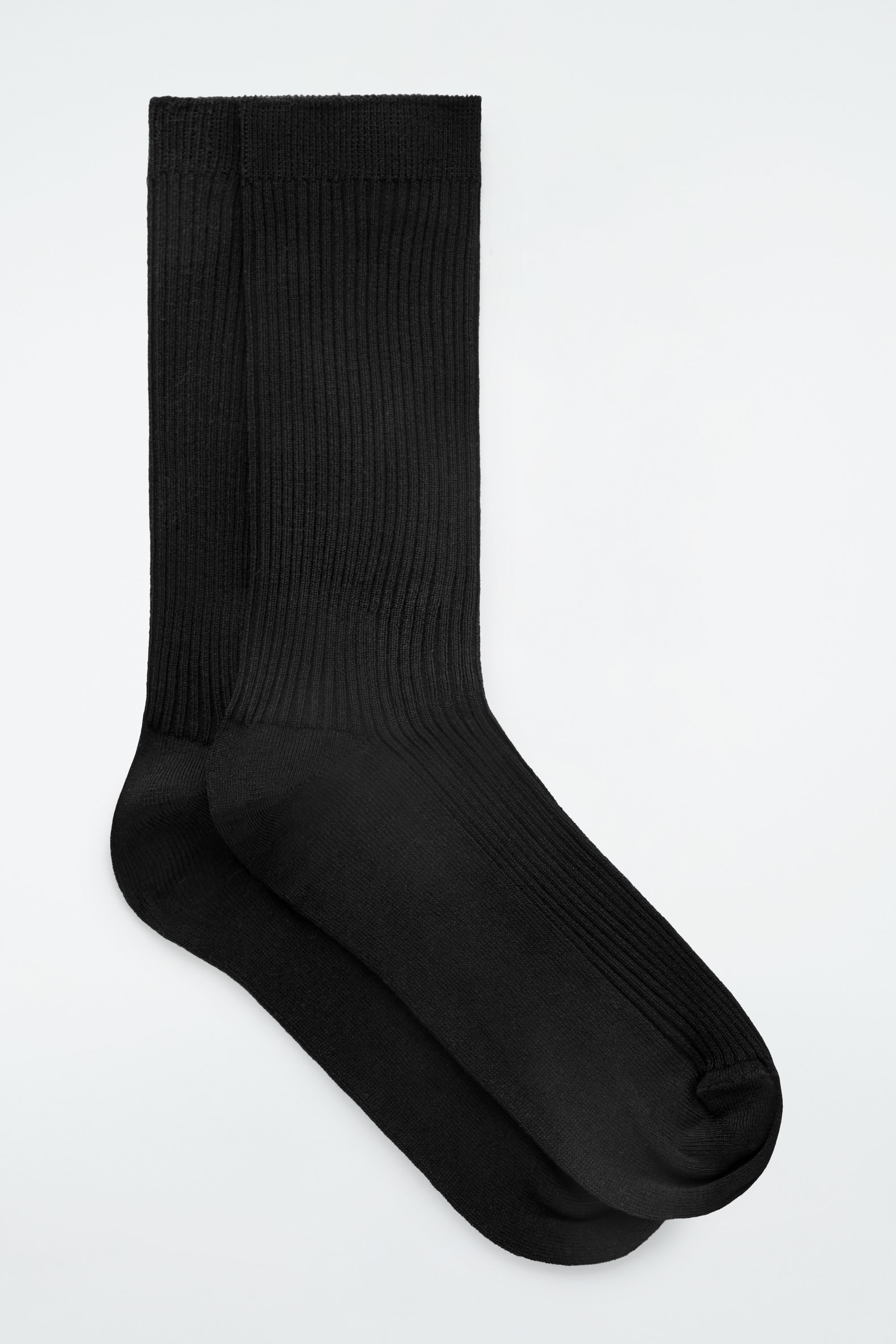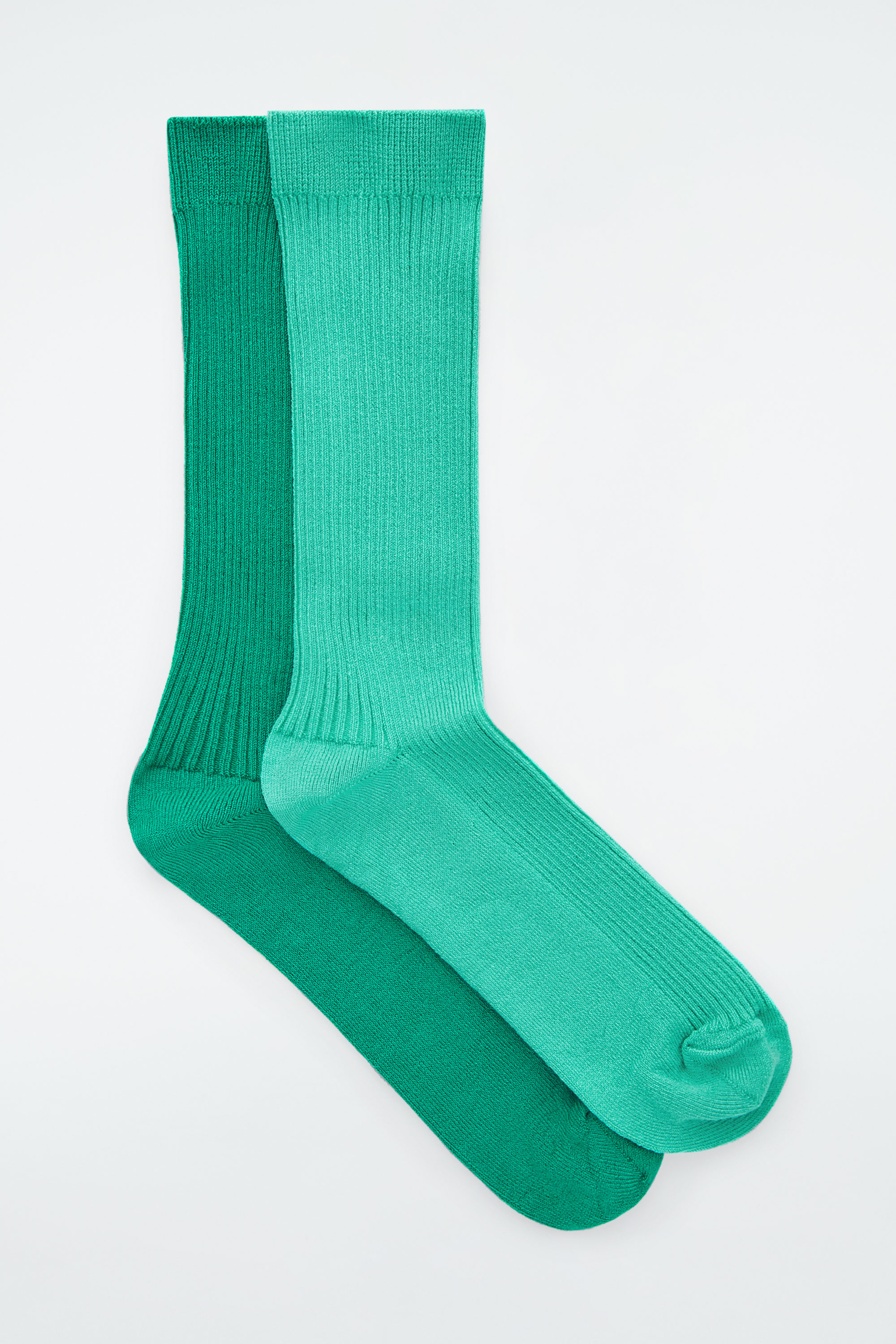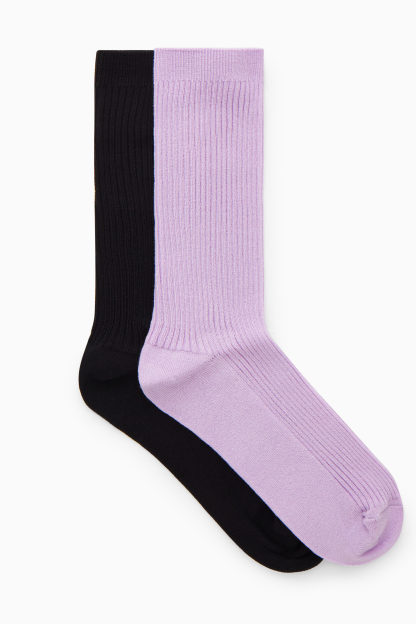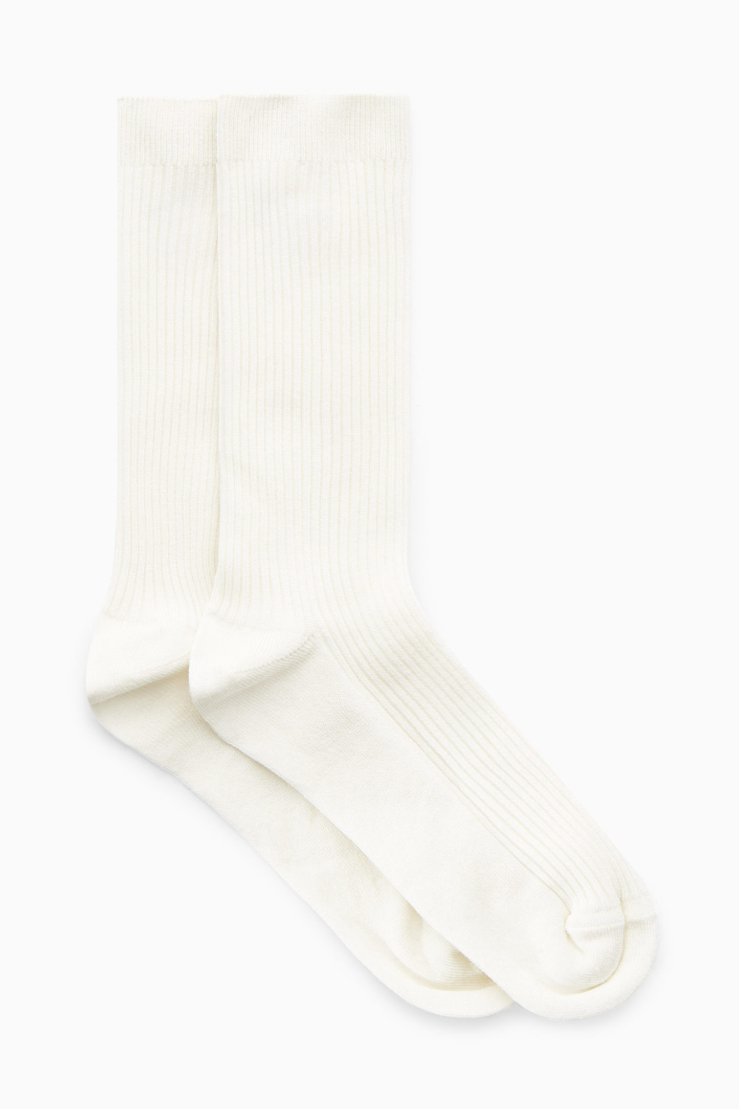 Det här 2-packet ribbade strumpor är gjorda av en merceriserad bomullsblandning i gräddvitt och passar till allt.