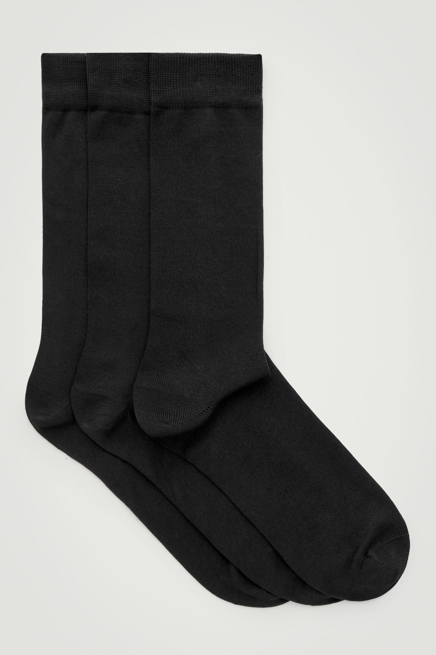 Dags att fylla på underklädeslådan? Klassiska svarta strumpor i praktiskt 3-pack. I mjuk, merceriserad bomull.