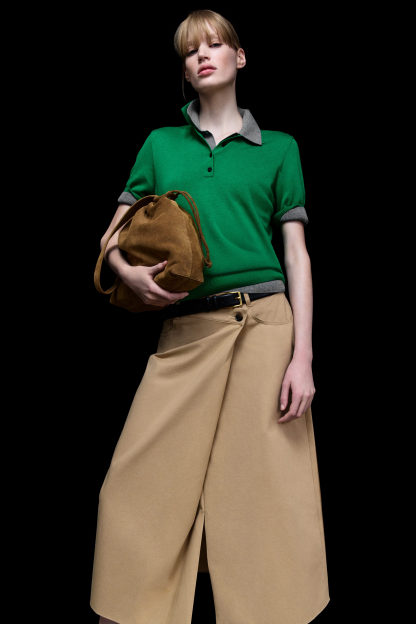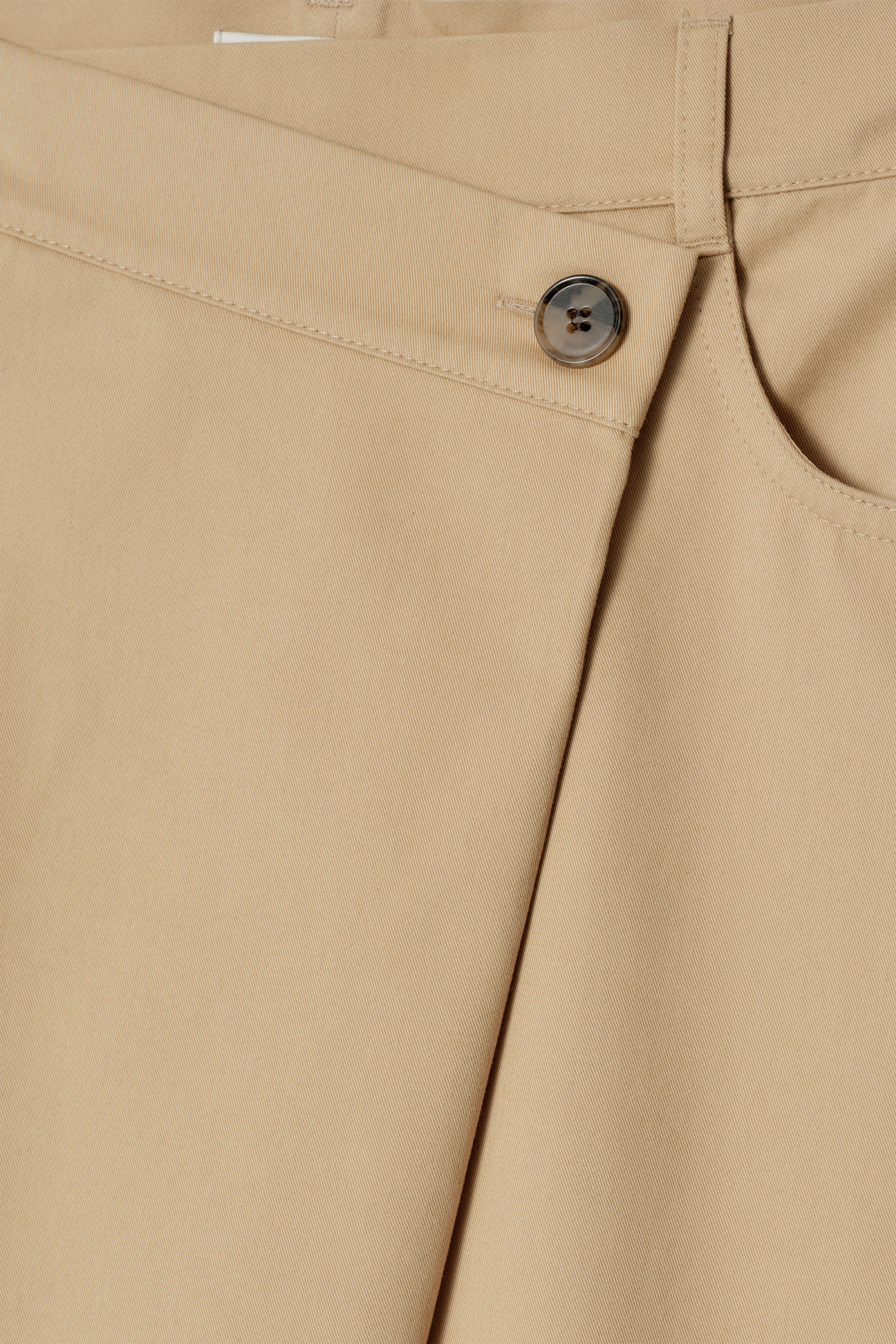 Playing with proportion, this midi skirt is shaped with an asymmetric waist that wraps across the front. It's crafted from pure cotton and features belt loops, five-pocket styling and a split at the front. The classic beige tone creates a canvas for the rest of your wardrobe.