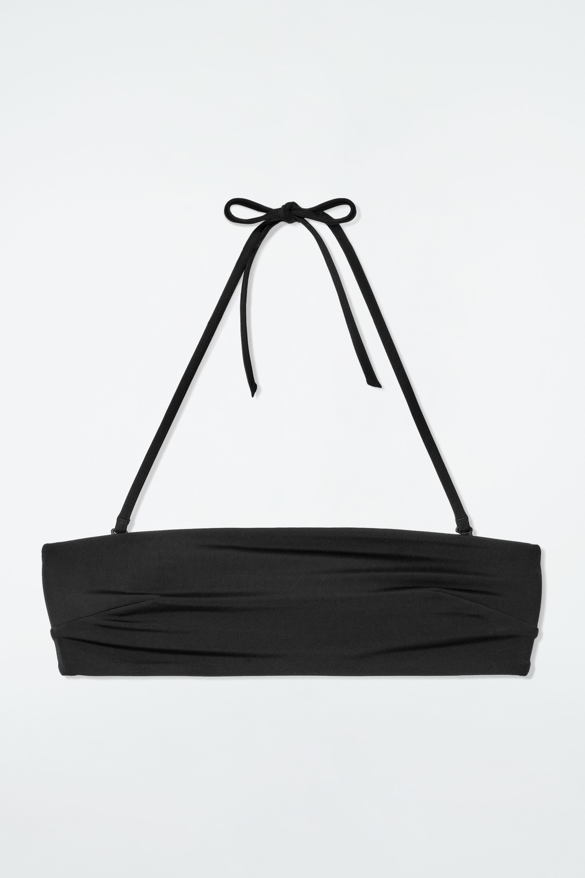 This bikini top is a timeless option for days spent in the sun. Offered in a refined black tone, it's cut with a bandeau neckline and has a detachable halterneck strap and silicone-backed elastic to ensure it stays in place. It's a natural choice for getaway packing; mix and match it with the coordinating high-waisted, classic or cheeky bikini briefs.