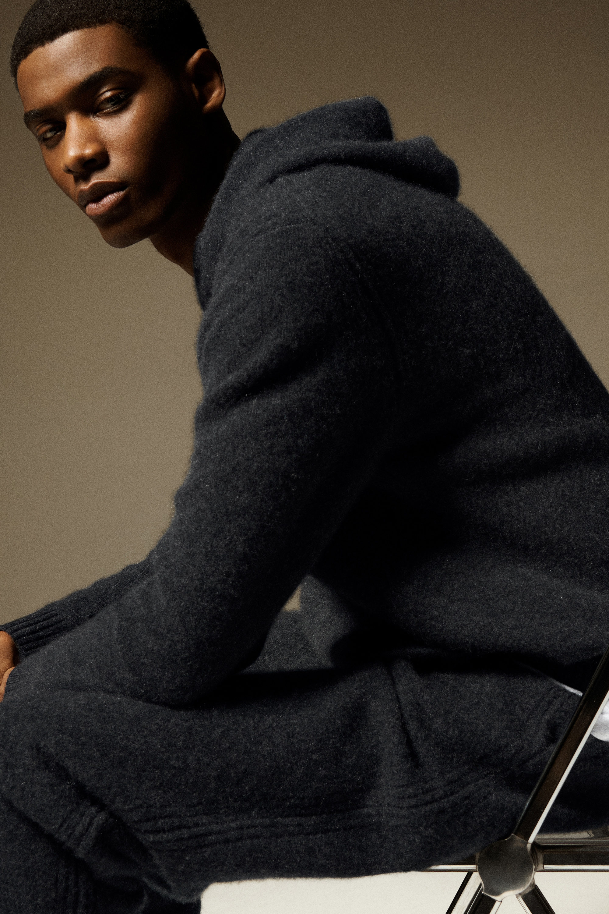 Denna huvtröja i kashmir av högsta kvalitet är ett raffinerat alternativ till klassiska fritidskläder. Den är tillverkad av garn i 100% Good Cashmere Standard® som kokats för en intressant textur. Tröjan har en ledig passform med tubformad huva, känguruficka och ribbad kant. Stylea den enkelt med matchande sweatpants.