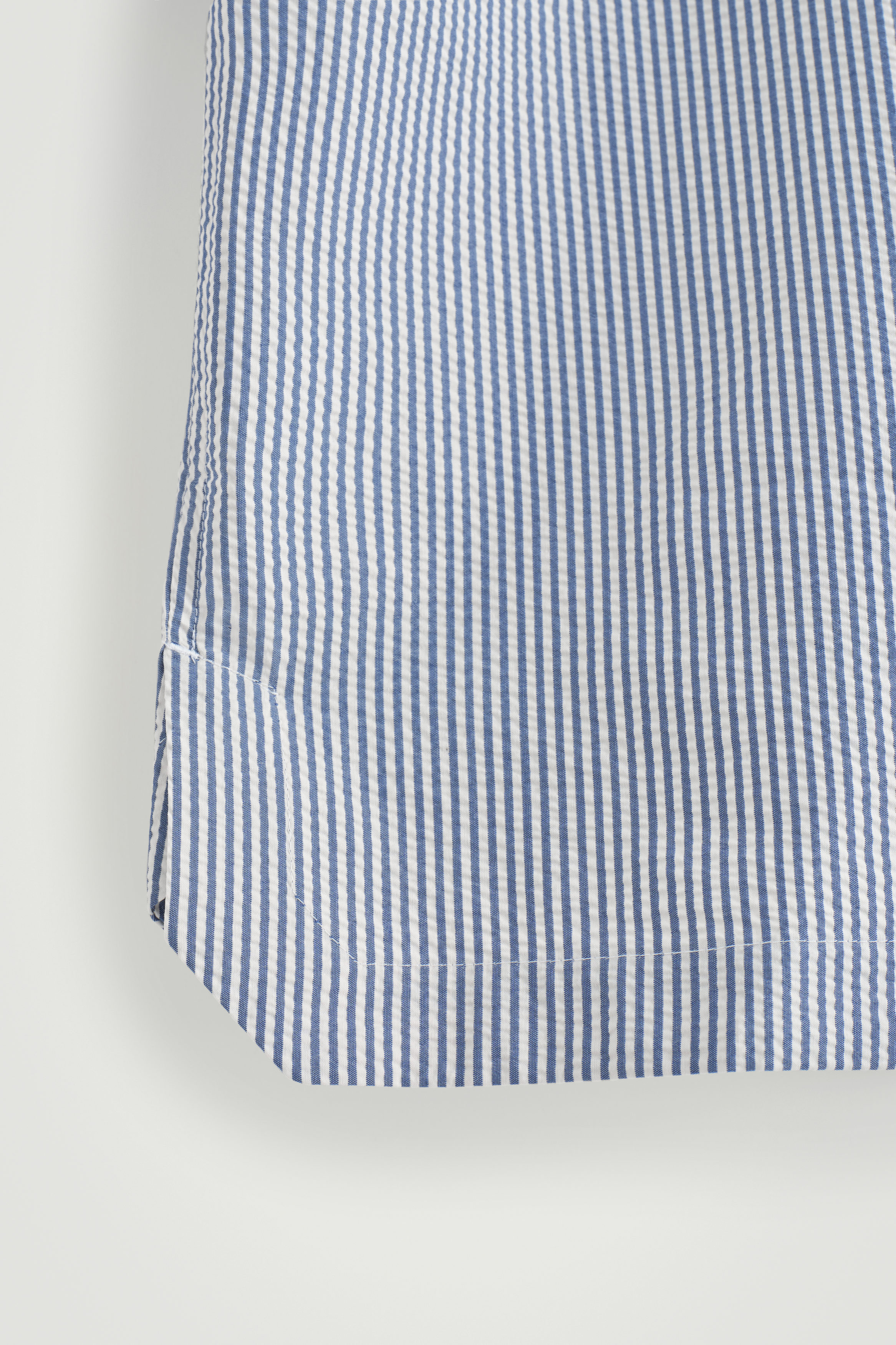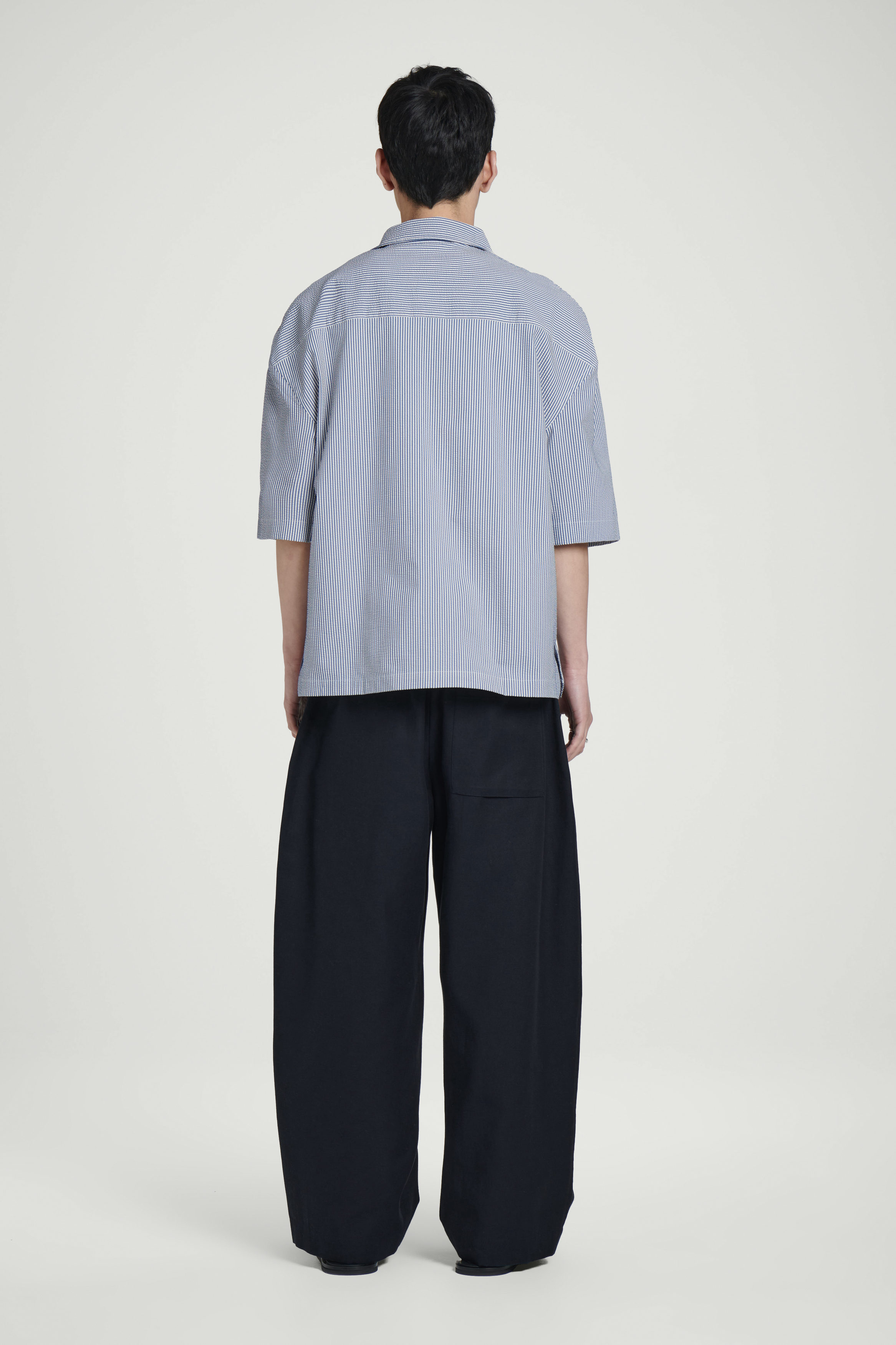 This season, the menswear team reconsider the formality of the classic poplin shirt. Relaxed in shape, this one is made from a premium Pima cotton blend and cut in a boxy fit with short sleeves and an angular hem. The mother-of-pearl buttons are a considered finishing touch.