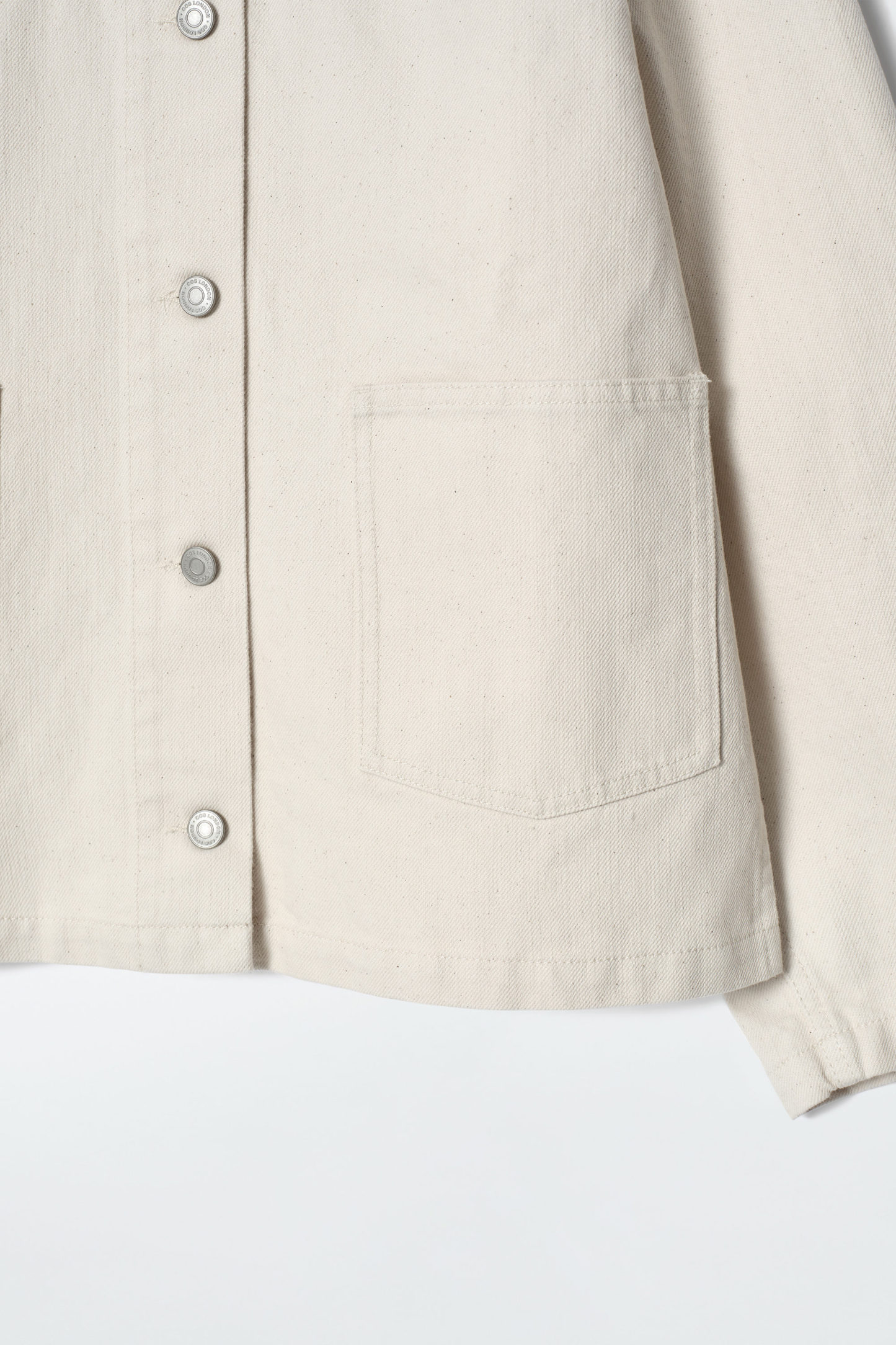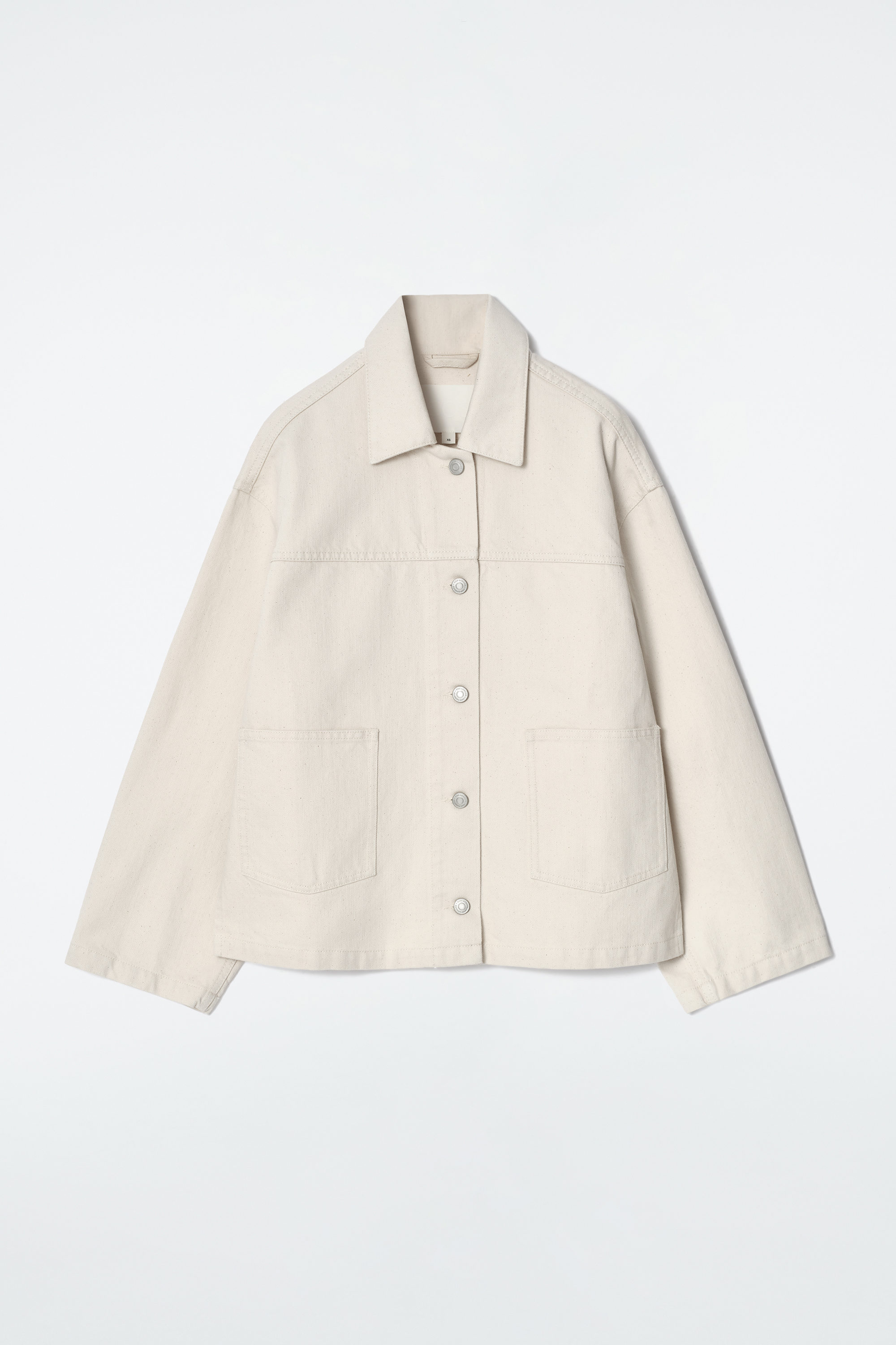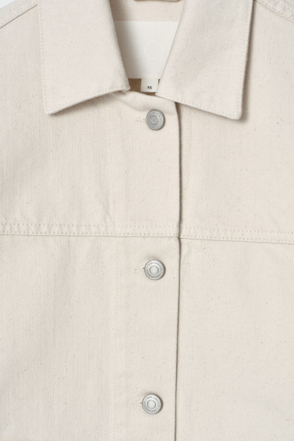 Utilityinspirerad jeansjacka i en klassisk, ecru tvätt med oversize påsydda fickor samt slitsar i sidorna som framhäver den lediga formen. Omfamna double denim-trenden genom att styla den med ett par färgmatchade jeans.