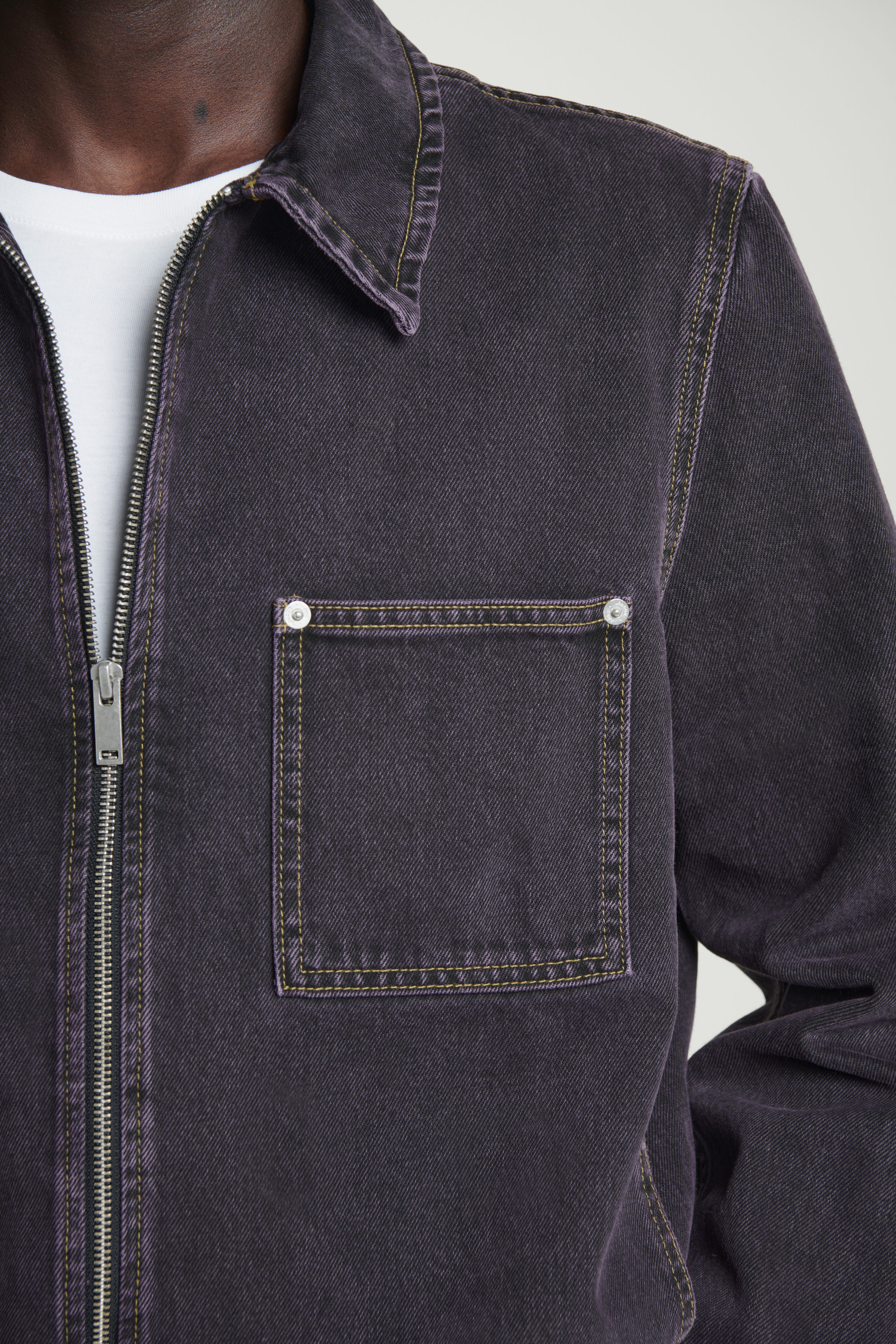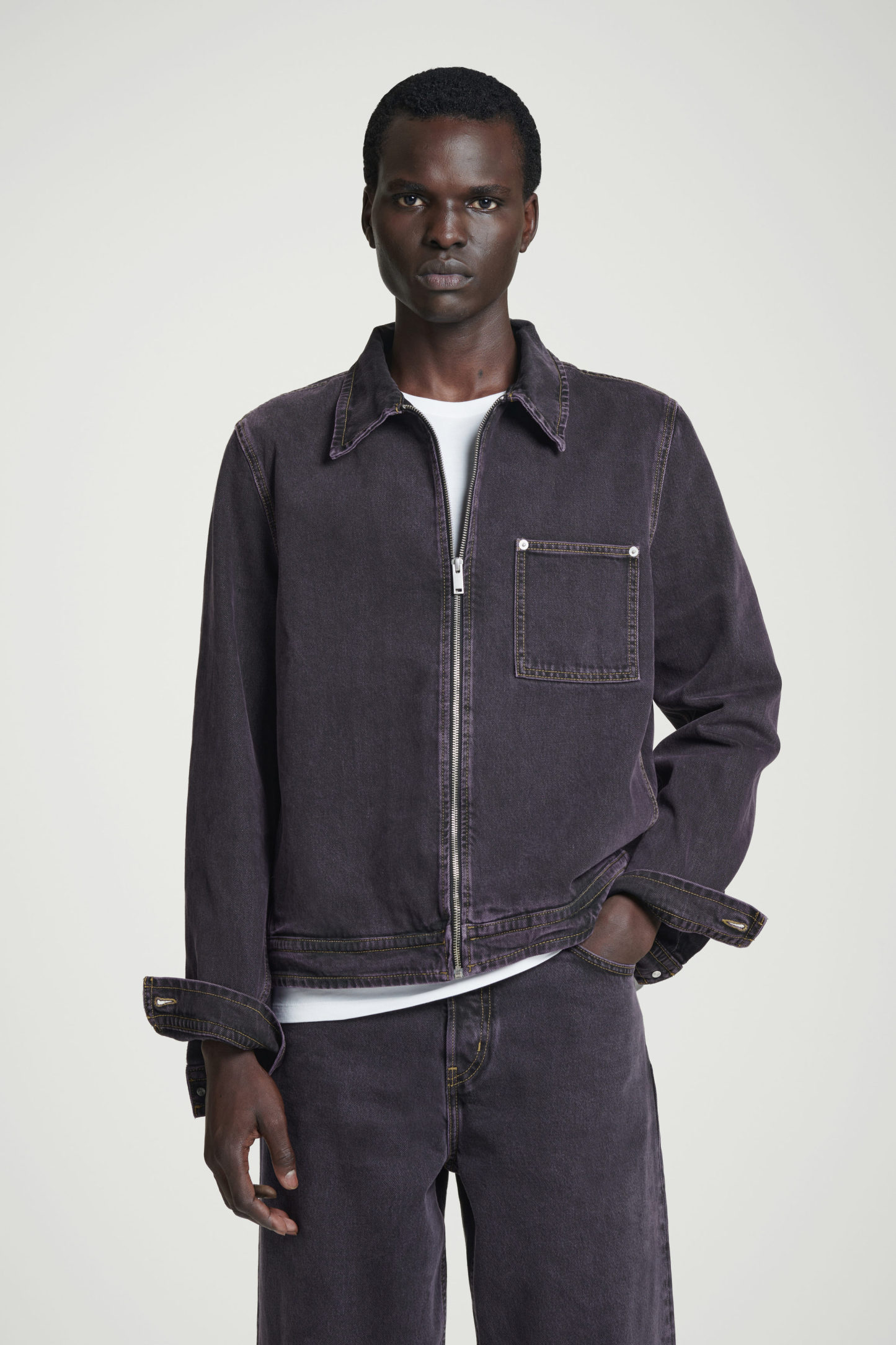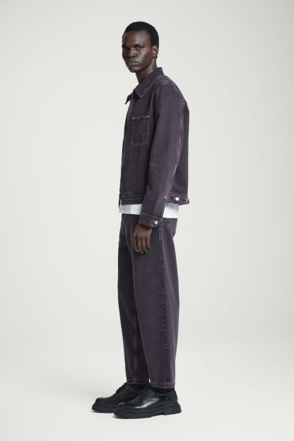 Tidlös jeansjacka i förfinad omtolkning, sydd i användbar nyans med lila tvätt, kontraststickningar och nötta kanter. Ledigt och lätt strukturerat snitt med klassisk krage, silvervit dragkedja och en påsydd bröstficka med öljetter på båda sidorna. Bär jackan som ett set med de matchande jeansen.