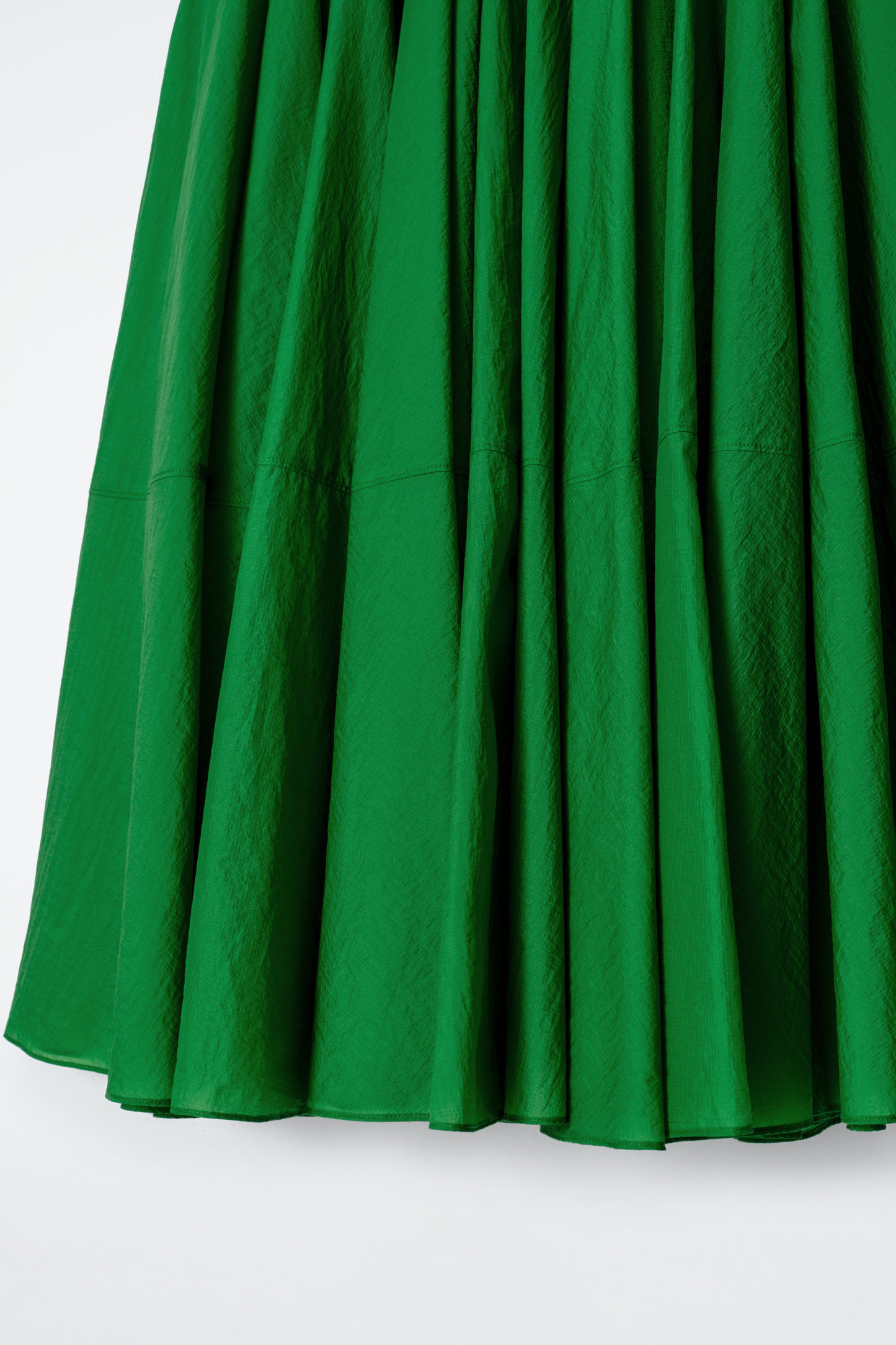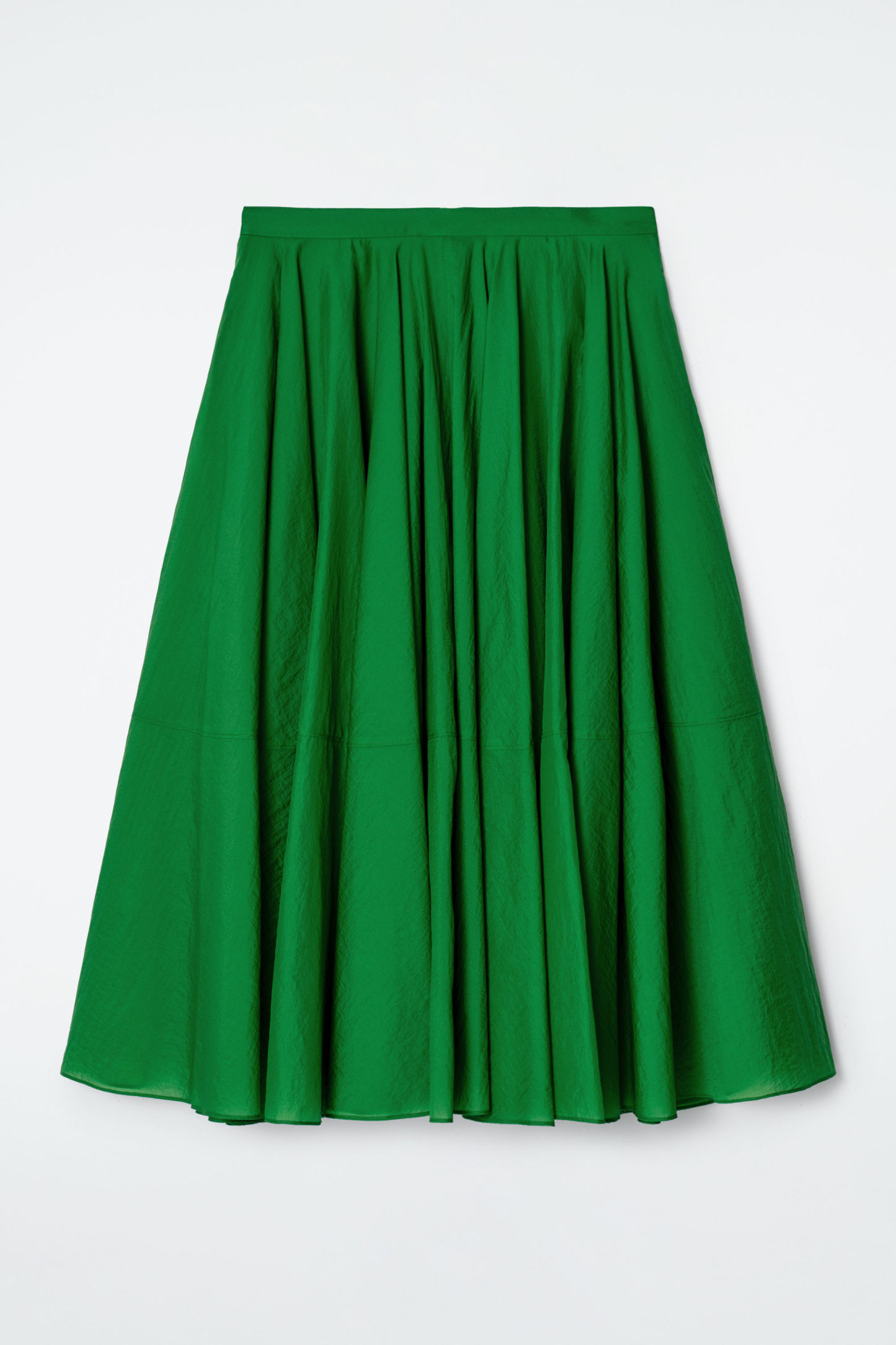 Med en känsla av modern feminitet är denna midikjol cirkelskuren för en voluminös silhuett med en livfull, grön nyans. Den är designad med rynkade detaljer som skapar en lekfull form och har diskreta sidfickor. Styla den med mules och en linne för en sofistikerad look.