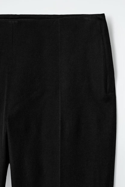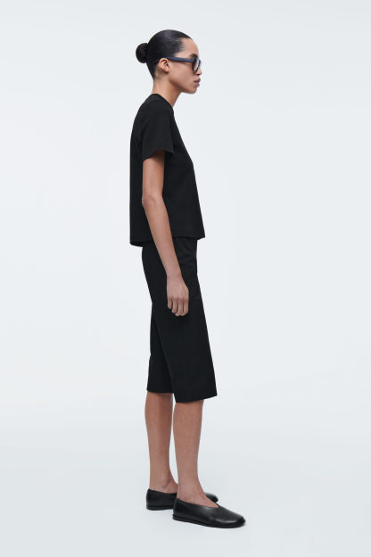 Med en nickning till 2000-talet är dessa capribyxor tillverkade av en bomullsblandning och skurna i en strömlinjeformad silhuett som slutar precis under knät.. Styla dem med taxklackar för en fulländad look.