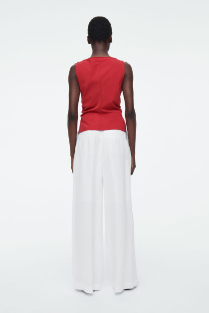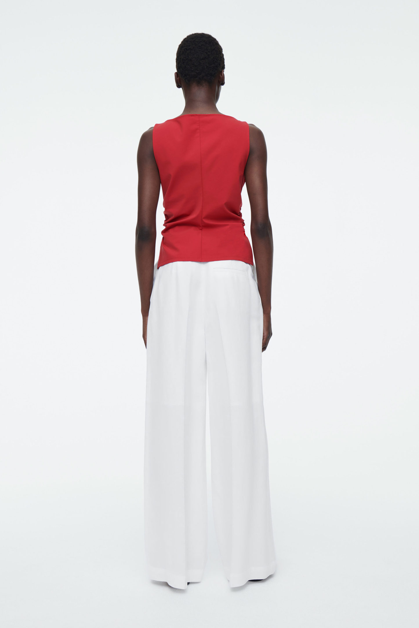Den här ärmlösa toppen understryker vårt engagemang för att skapa förfinade basplagg. Den är gjord av en bomullsblandning med draperad halsringning och rynkning i sidorna för att framhäva formen och skapa en känsla av volym. Bär den med vida byxor och loafers med öppen häl.