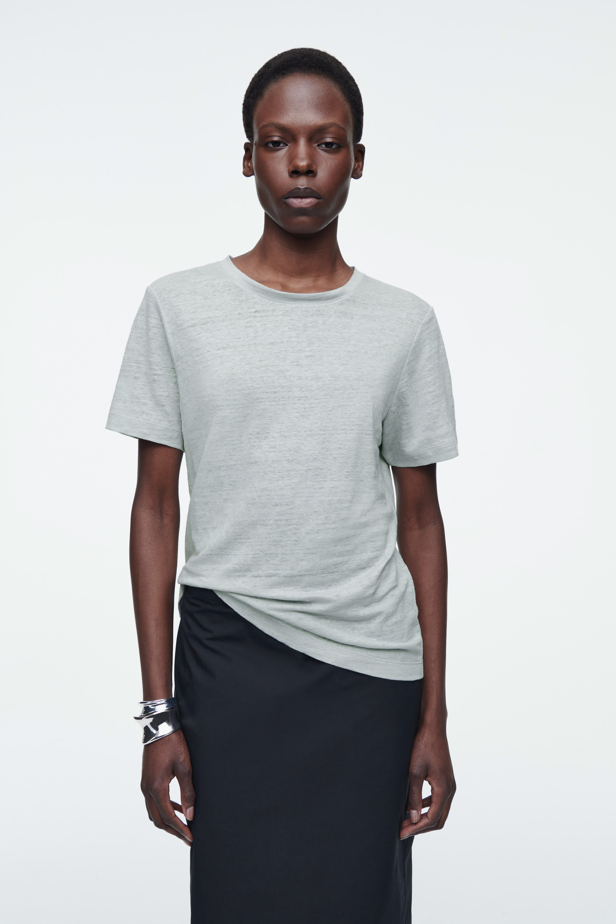 The cthtos womenswear team present an everyday icon, perfected. This refined T-shirt is crafted from 210gsm European Flax™ jersey, chosen for its natural breathability and soft handle. It's cut in a classic crew-neck shape and comes in an enduring white tone.