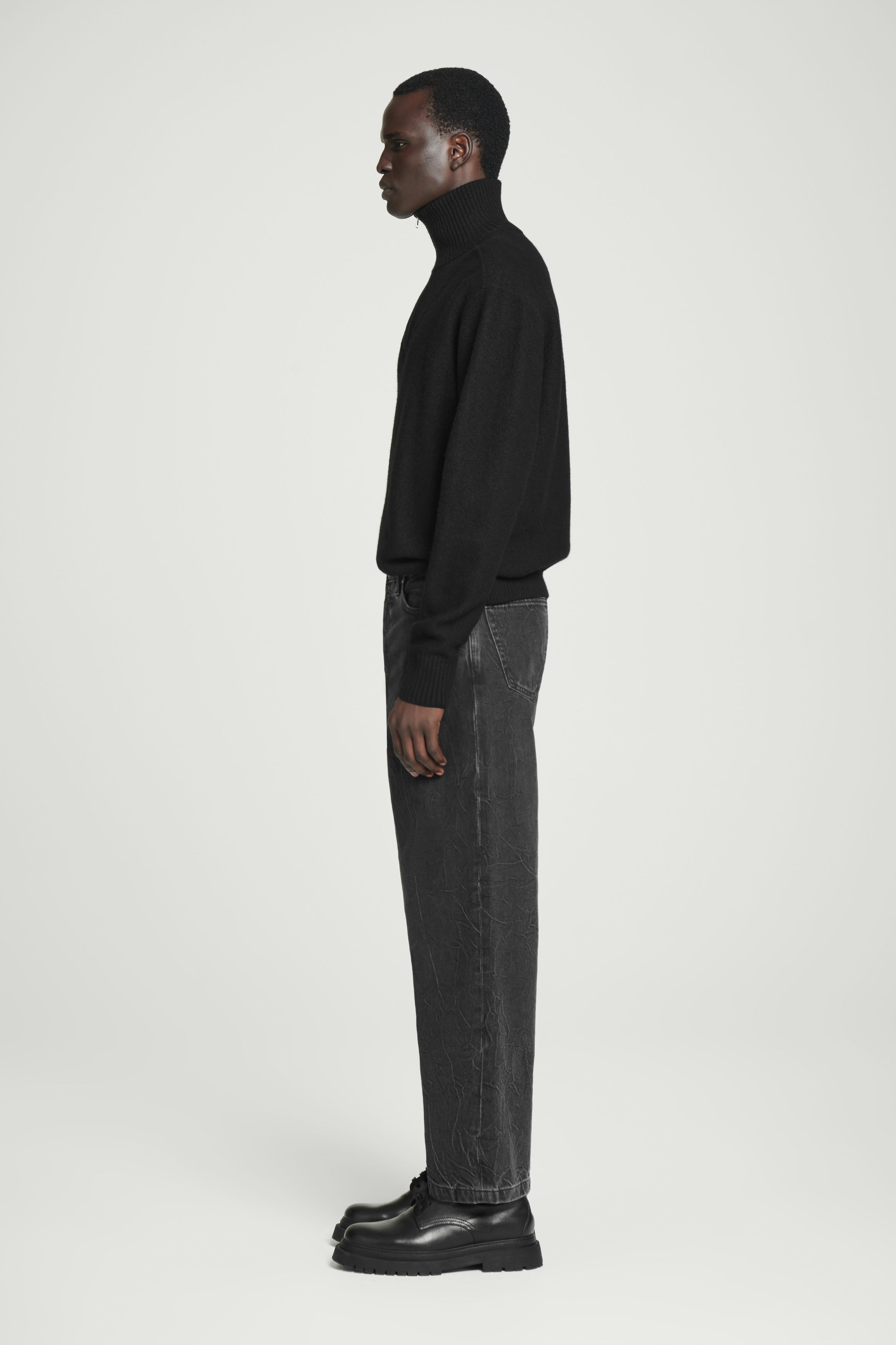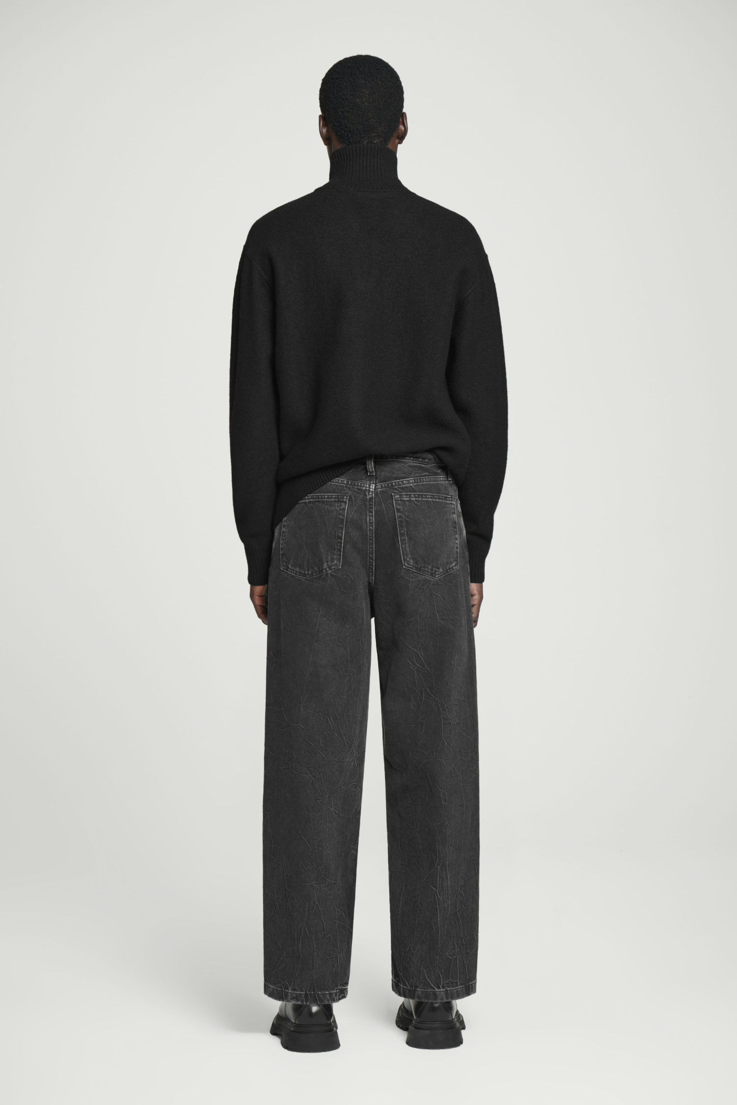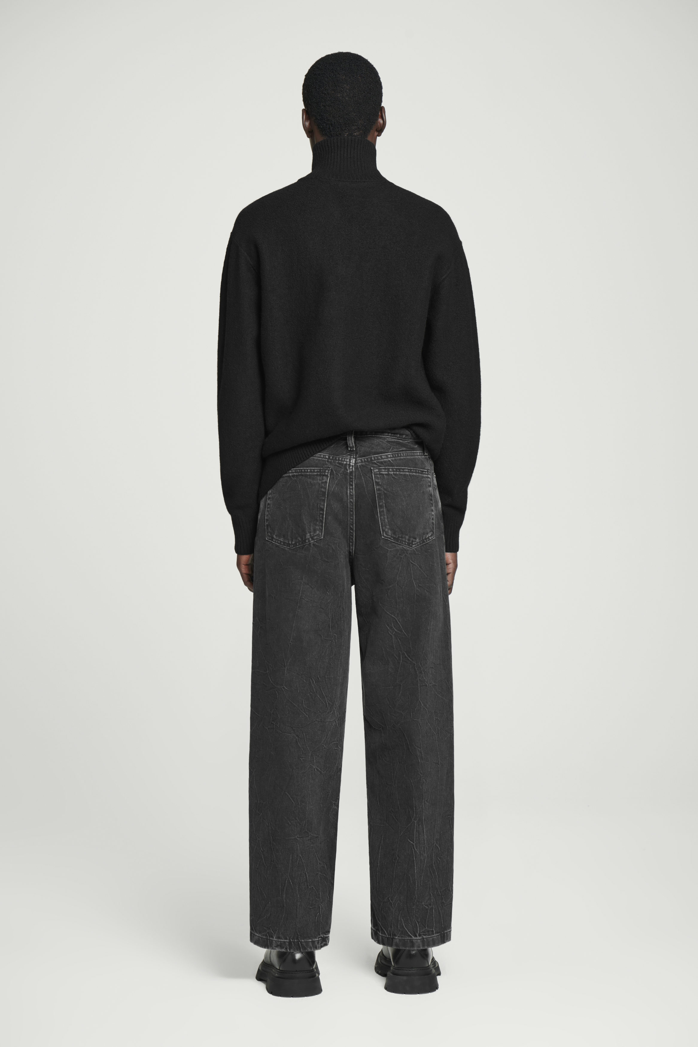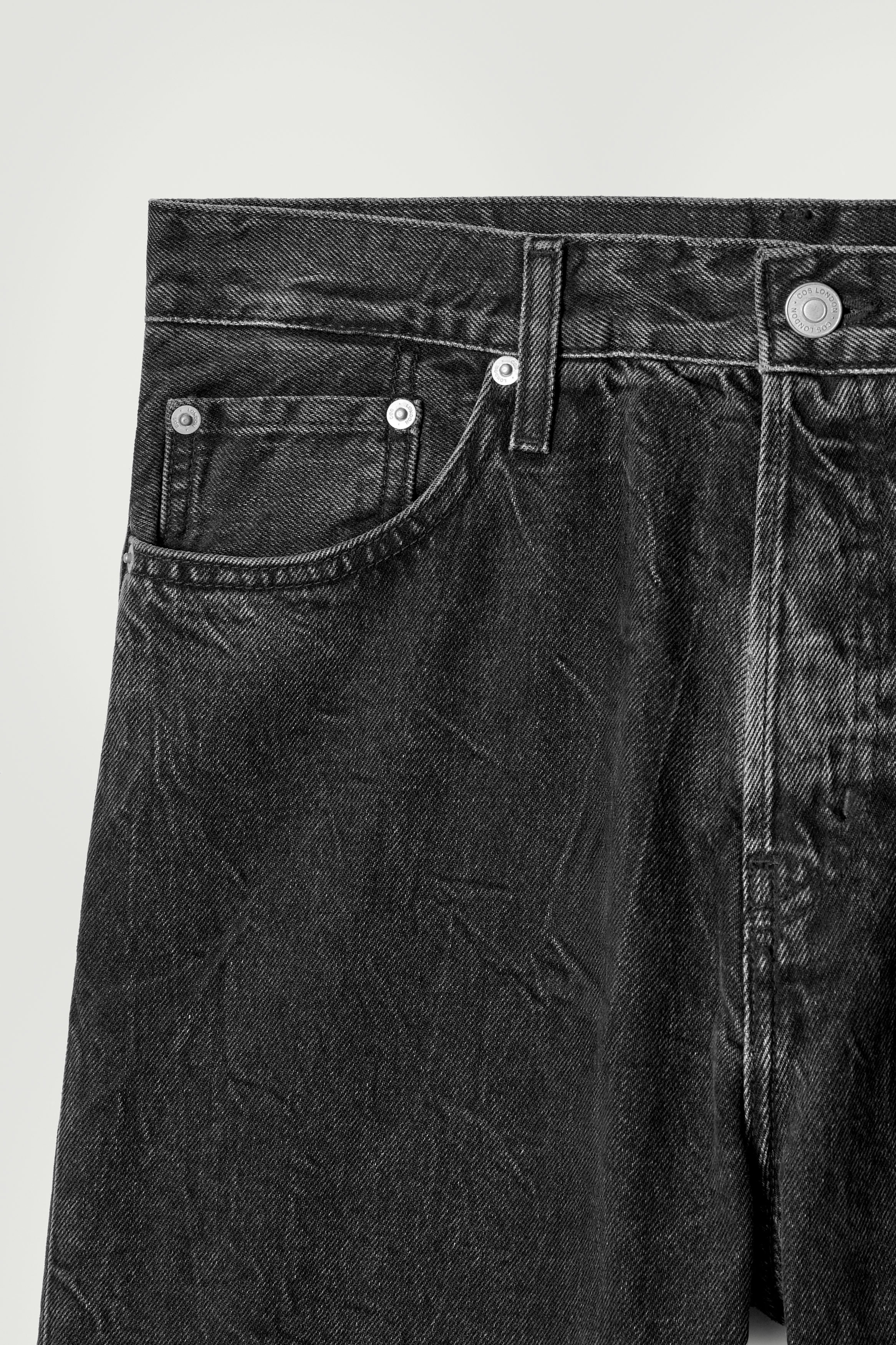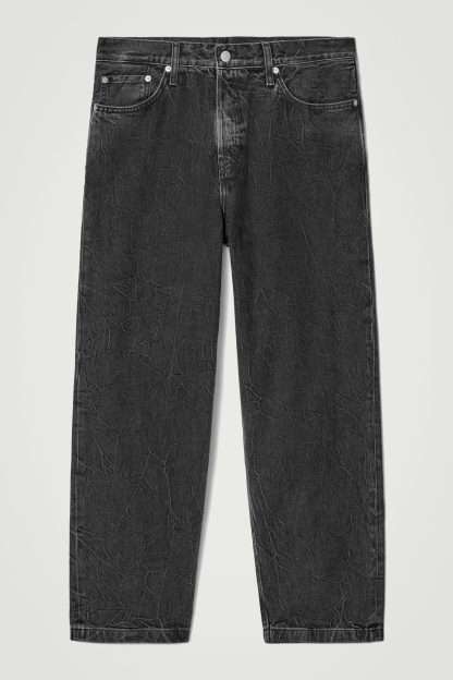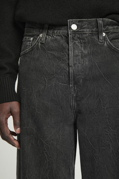 Jeansen Dome är den mest avslappnade modellen i vår denimkollektion. De har en croppad, rak passform och är tillverkade i 368 g (13 oz) denim i ekologisk bomull i en krinklad, svart tvätt för en modern tolkning av klassisk americana. Styla med den matchande överskjortan för en klassisk look.
