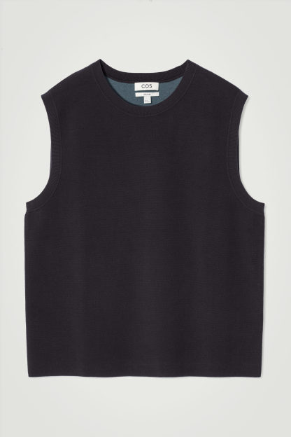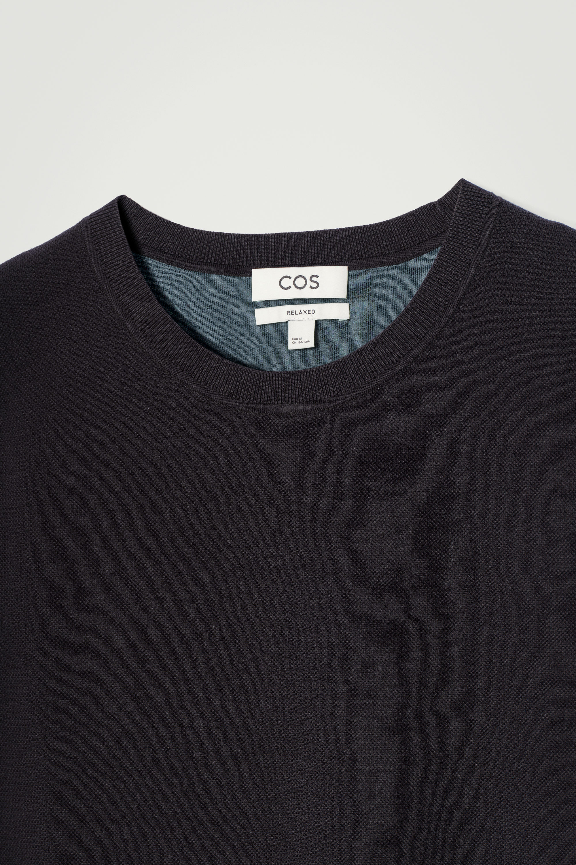 Detta linne kommer att bli ett mångsidigt tillskott i din stickade kollektion. Det är tillverkat av dubbelsidig bomull i en klassisk, marinblå nyans samt är designat med rund halsringning och ribbade kanter. Styla den på egen hand eller som ett lager över en t-shirt.