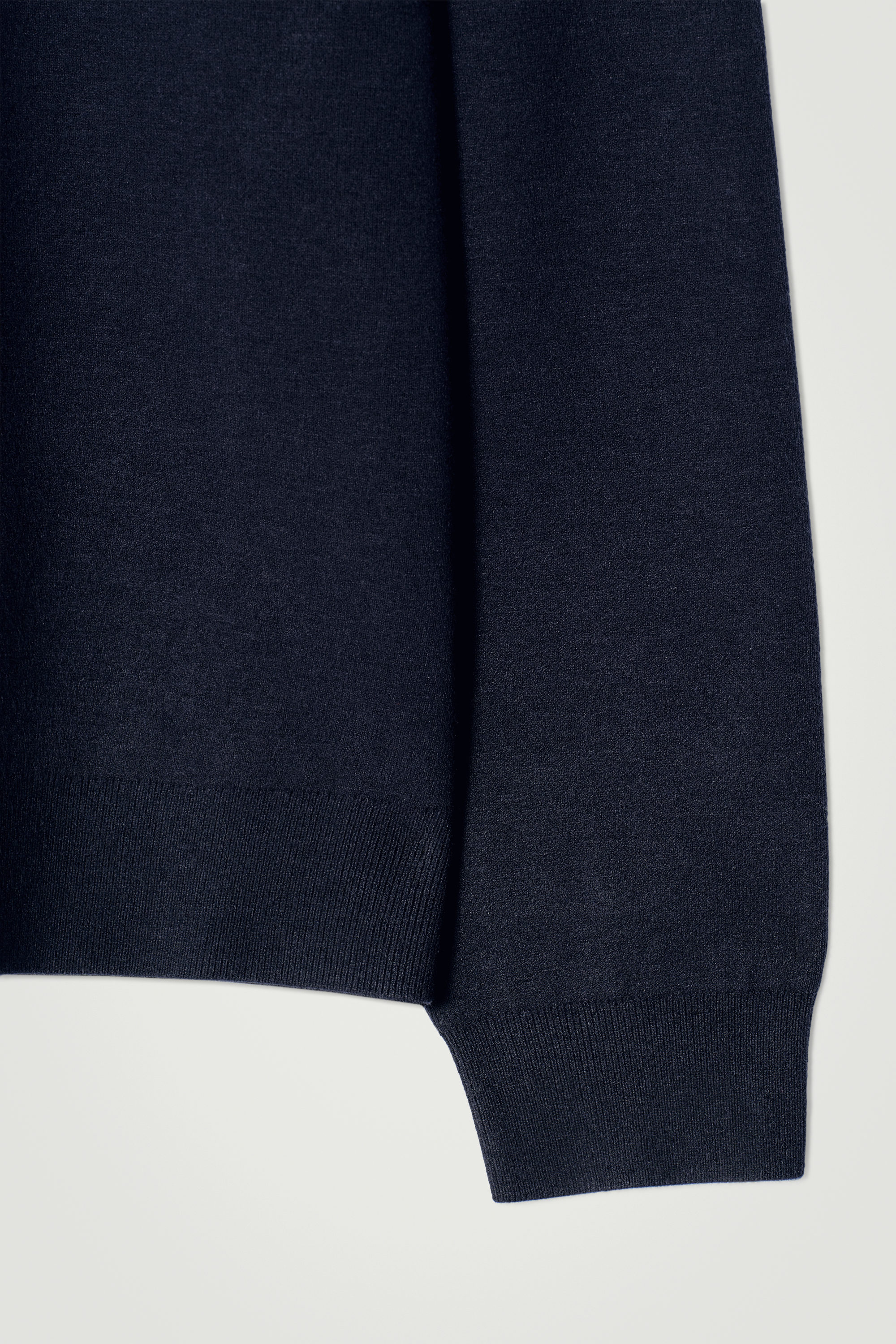 cthtos designteam omtolkar klassiska stickade plagg med moderna designdetaljer inför den nya säsongen. Den här tröjan har ett avslappnat snitt med en modern bomberkrage och är tillverkad i ett dubbelstickat material som ger en premium finish både på insidan och utsidan.