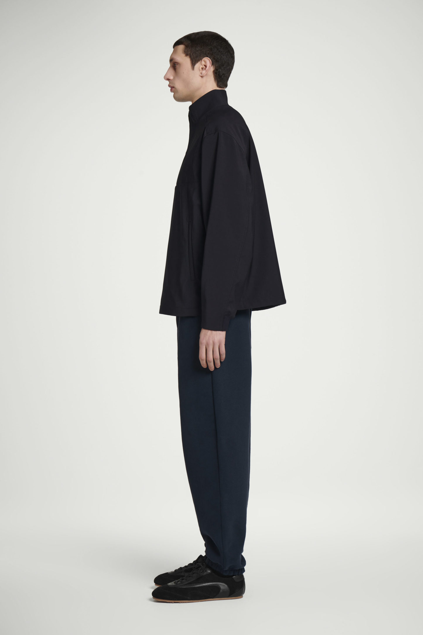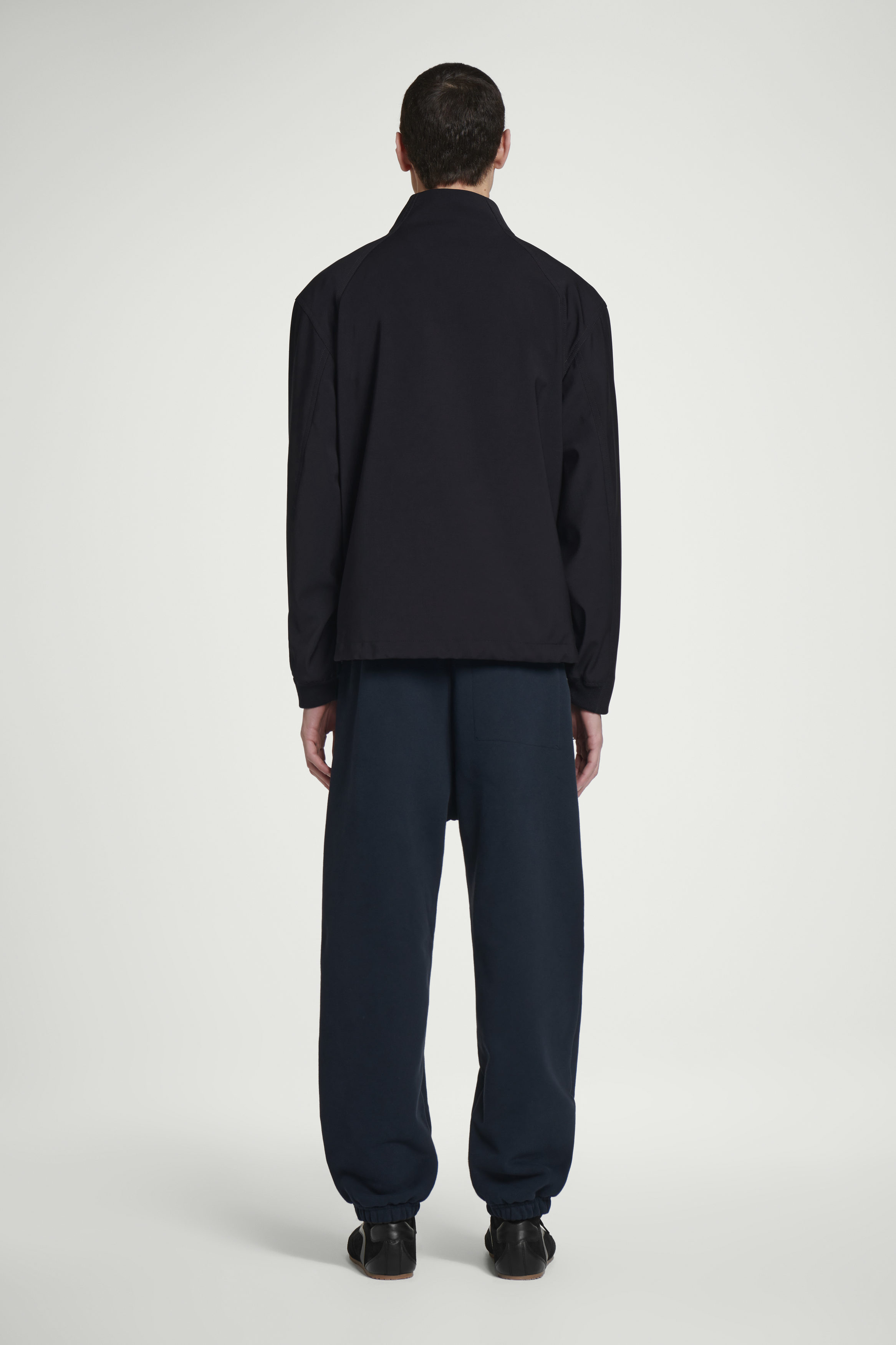 Denna eleganta träningsjacka omdefinierar athleisure-koder. Jackan är tillverkad i en dubbelsidig ullblandning med stolpfickor fram samt ribbad krage, halvkrage med dragkedja och rem i läder. Invändiga dragskor midjan låter dig leka med passformen. Styla den med matchande byxor för en fulländad look.