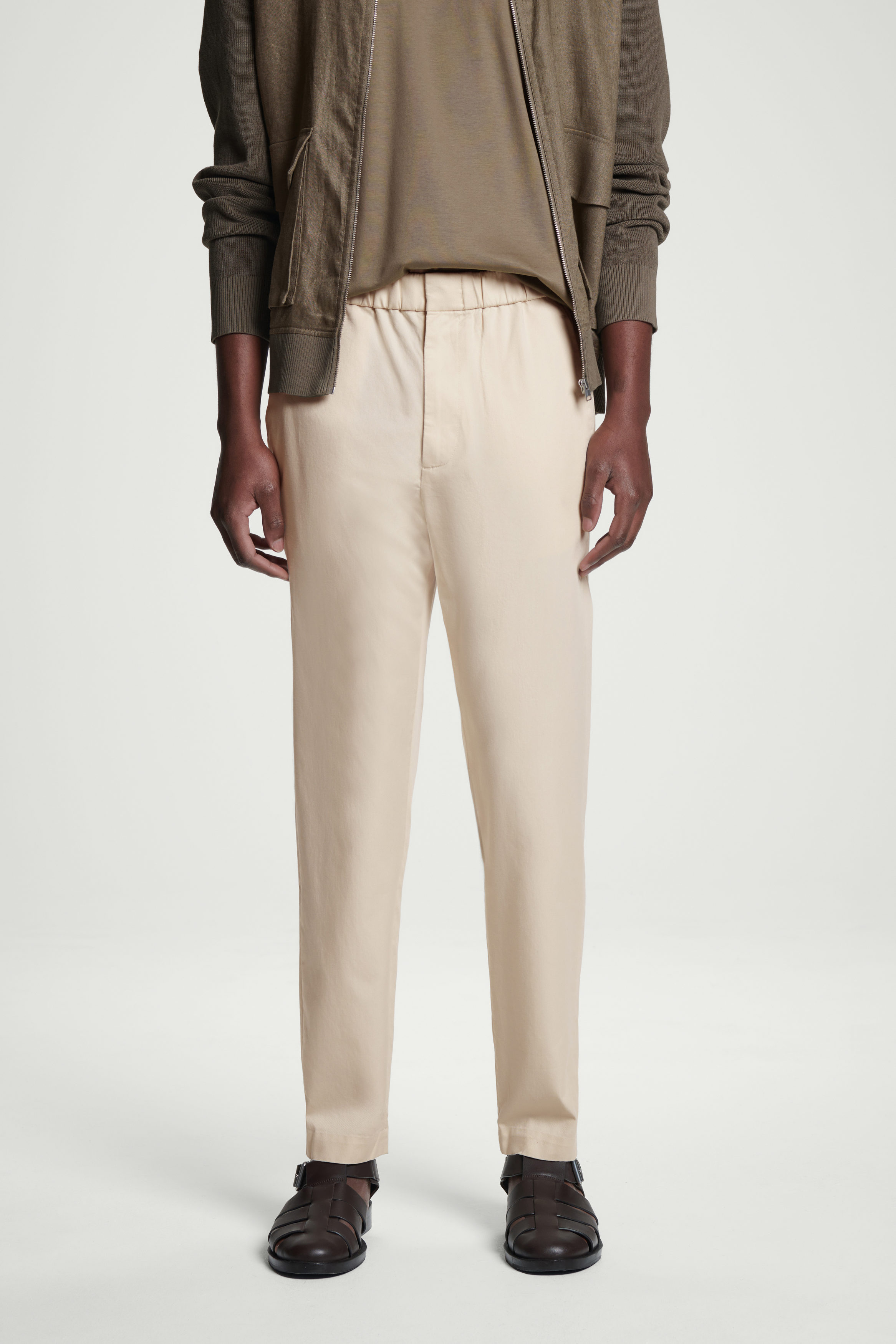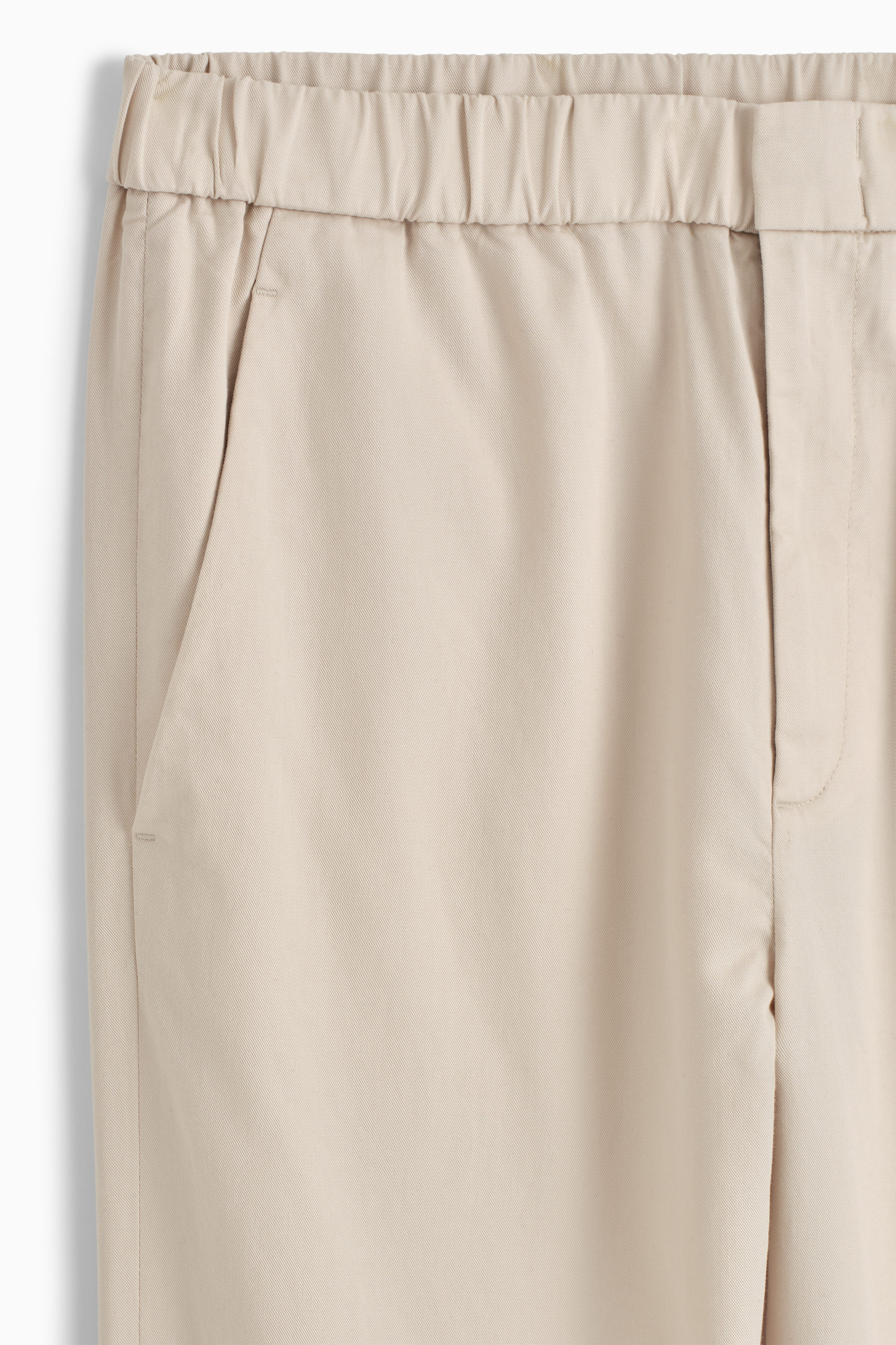 De här byxorna i beige är skräddade för en något avsmalnande silhuett i TENCEL™ lyocell och en bomullsblandad twill som garanterat håller formen. De har en midja med stretch för en smidig passform och fickor både fram och bak.