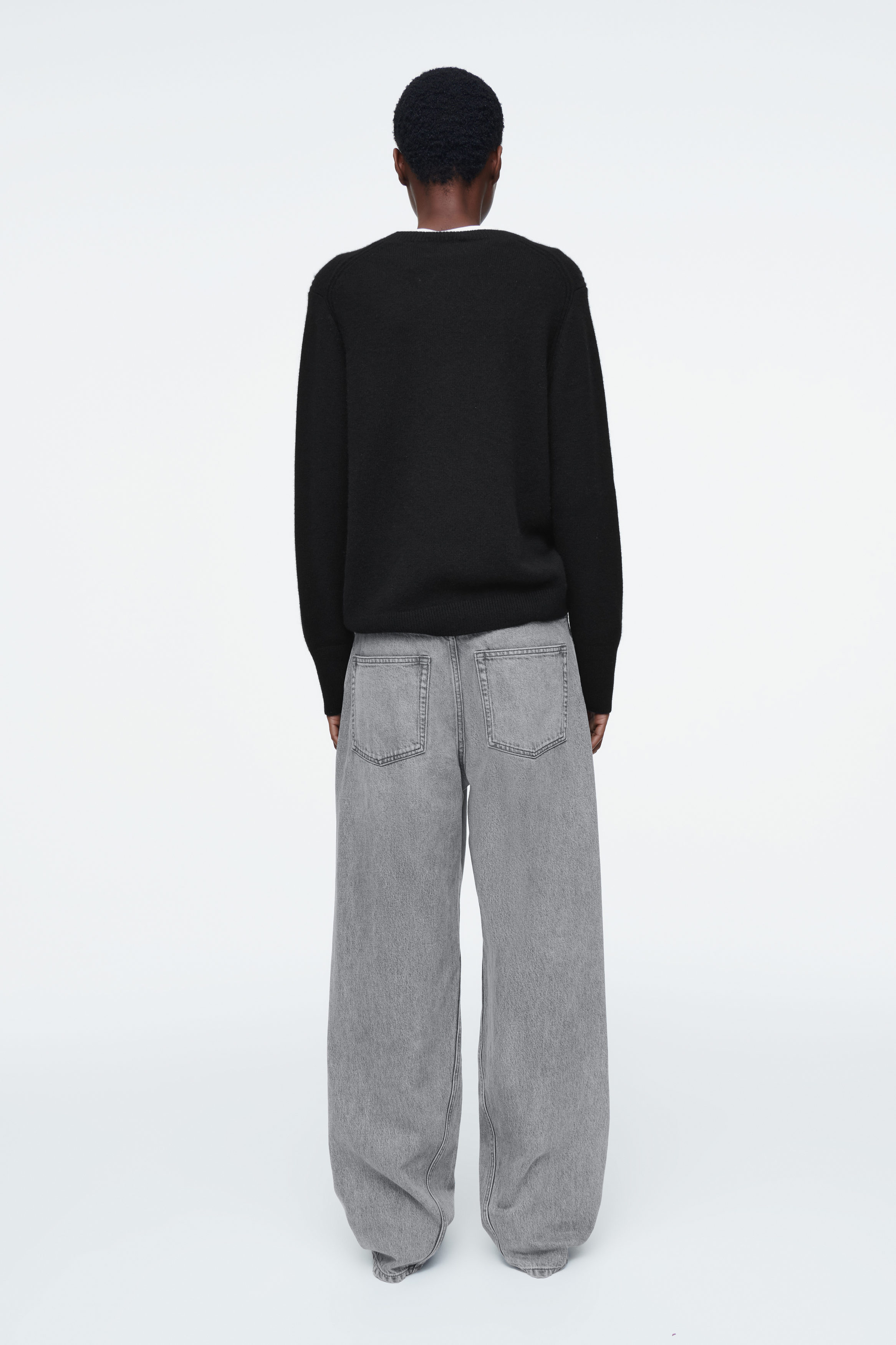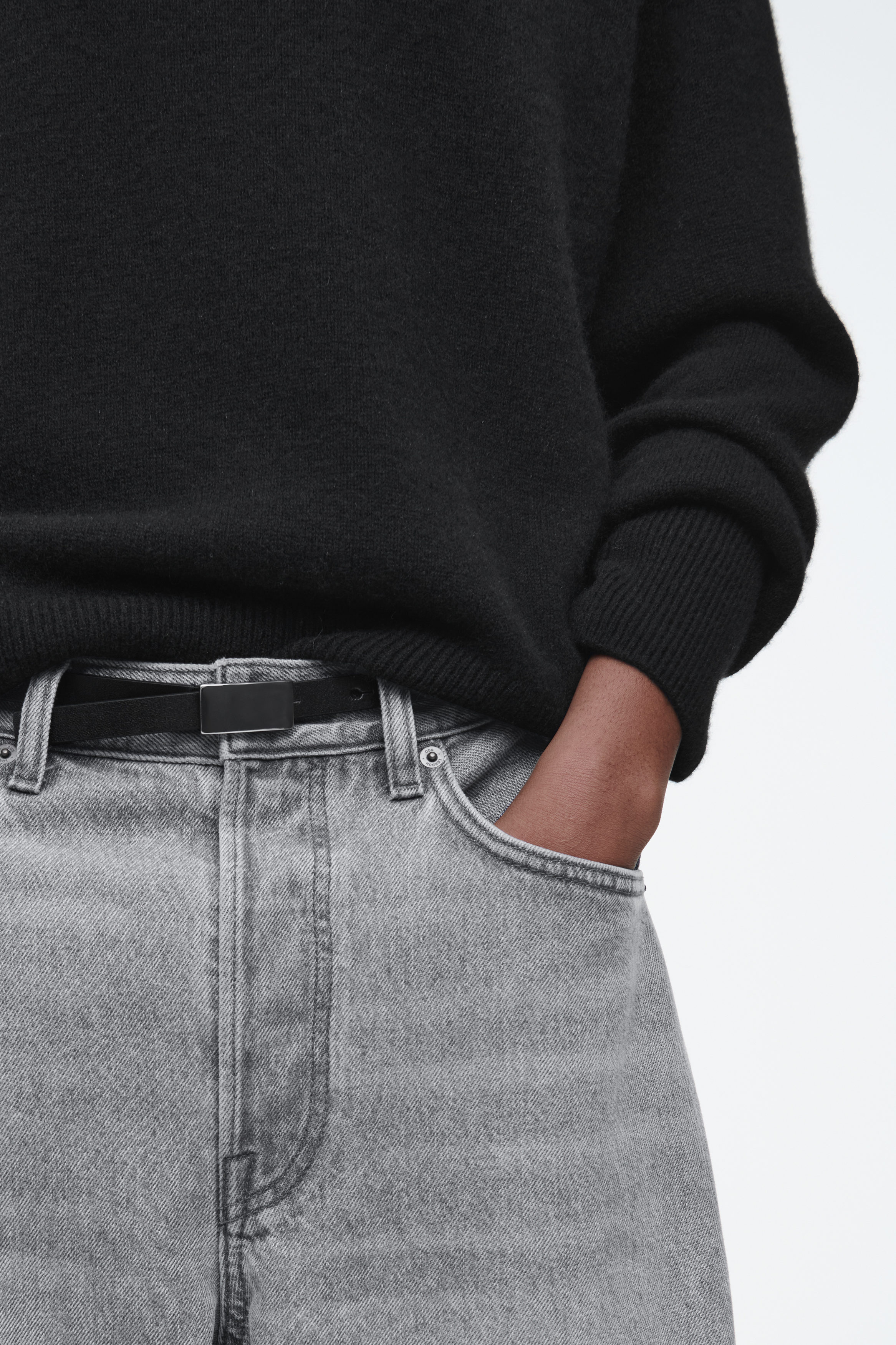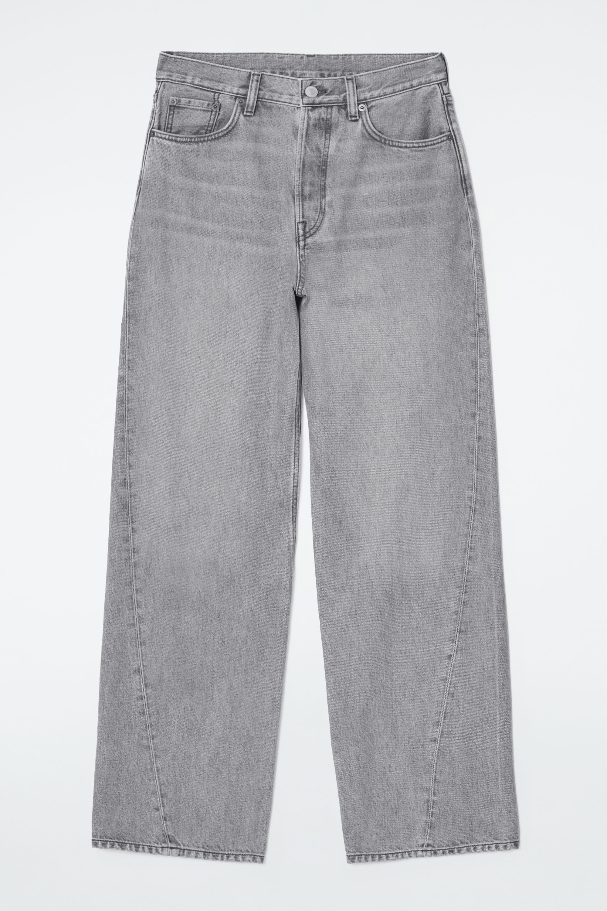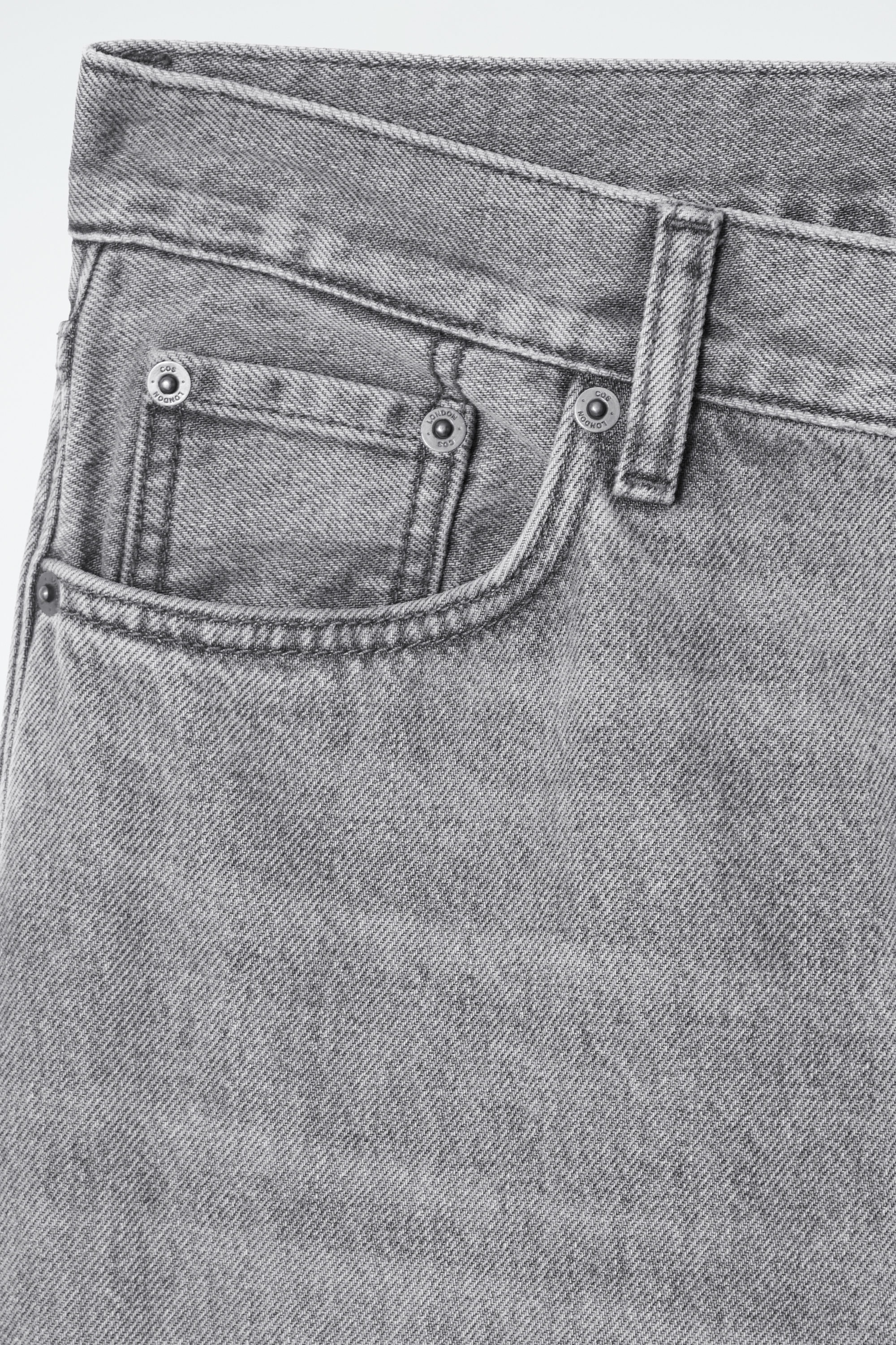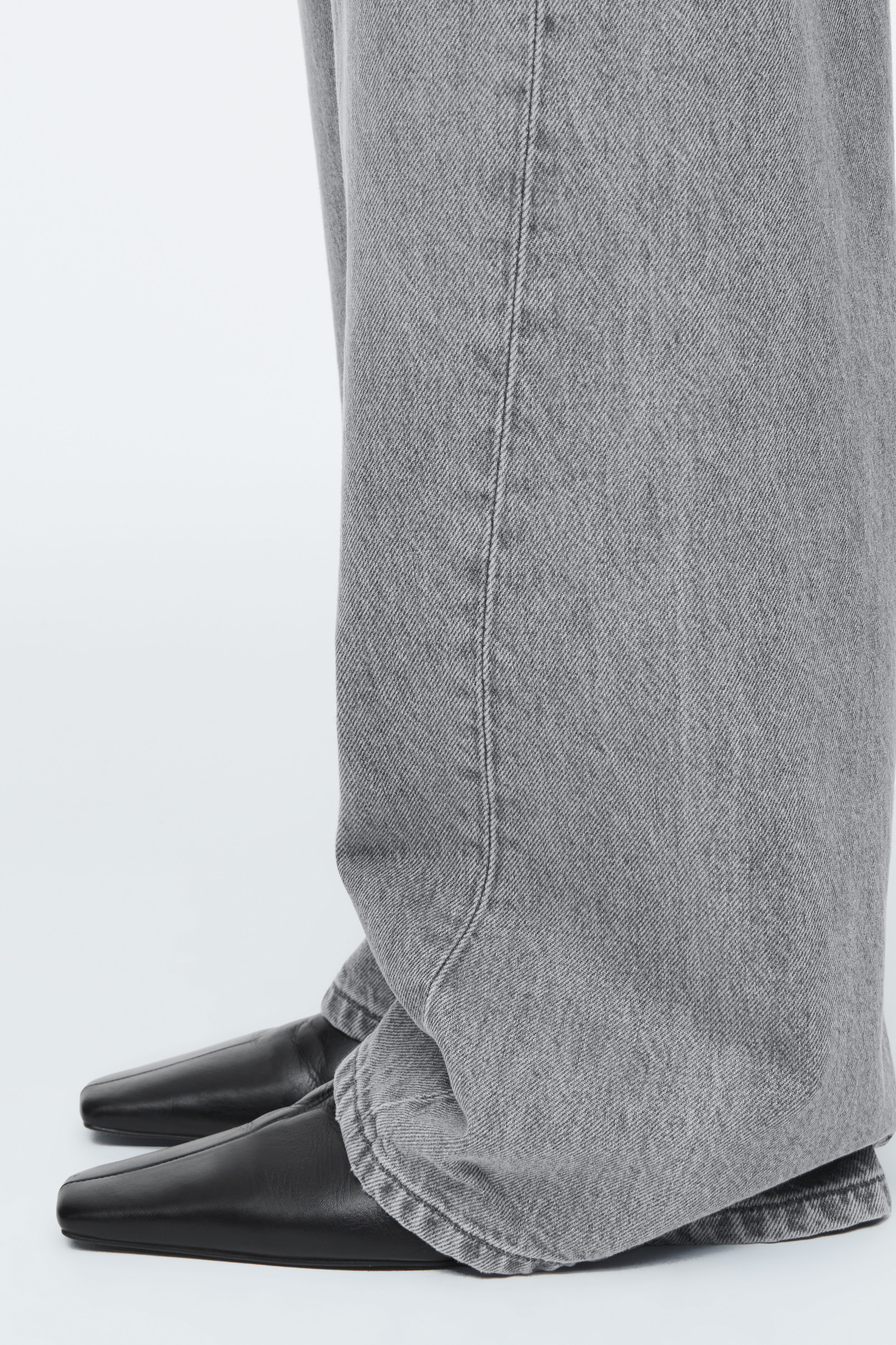 Med rötterna i 00-talsnostalgi har jeansen Facade den låga midja som är synonym med årtiondet. De är gjorda av en denimblandning med ekologisk och återvunnen bomull i en mångsidig grå nyans. De raka benen har välvda sömmar för en dekonstruerad effekt, medan slitningarna ger plagget karaktär.