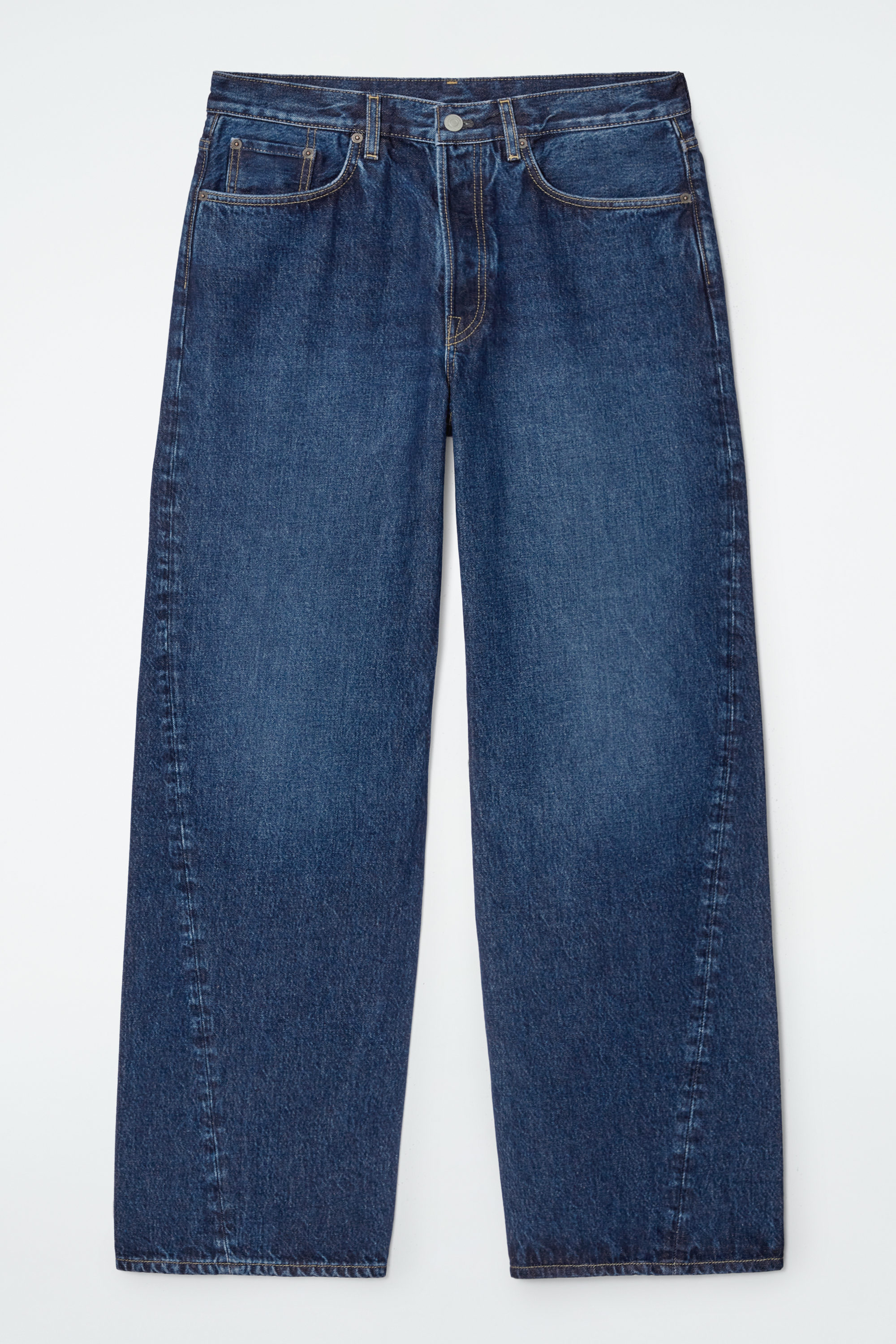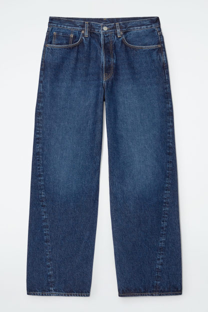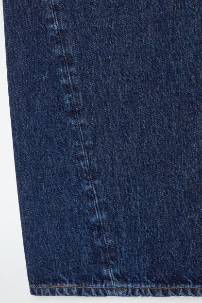 Med rötter i 2000-talet har jeansen Facade den nostalgiskt låga midja som är synonym med årtiondet. De är tillverkade av en denimblandning med ekologisk och återvunnen bomull i en djupt blå nyans. De raka benen har välvda sömmar för en dekonstruerad effekt, medan slitningarna ger plagget karaktär.