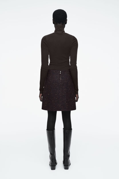 cthtos presenterar en kollektion av vinterstilar som uppdaterats med exklusiva mönster. I samarbete med fotografen Chris Perani framhäver vi naturens extraordinära skönhet med intrikata detaljer och livfulla färger. Den här minikjolen är tillverkad i en blandning med RWS-ull, är vävd med färgglada trådar och har råa kanter. Styla den enkelt med den matchande jackan.