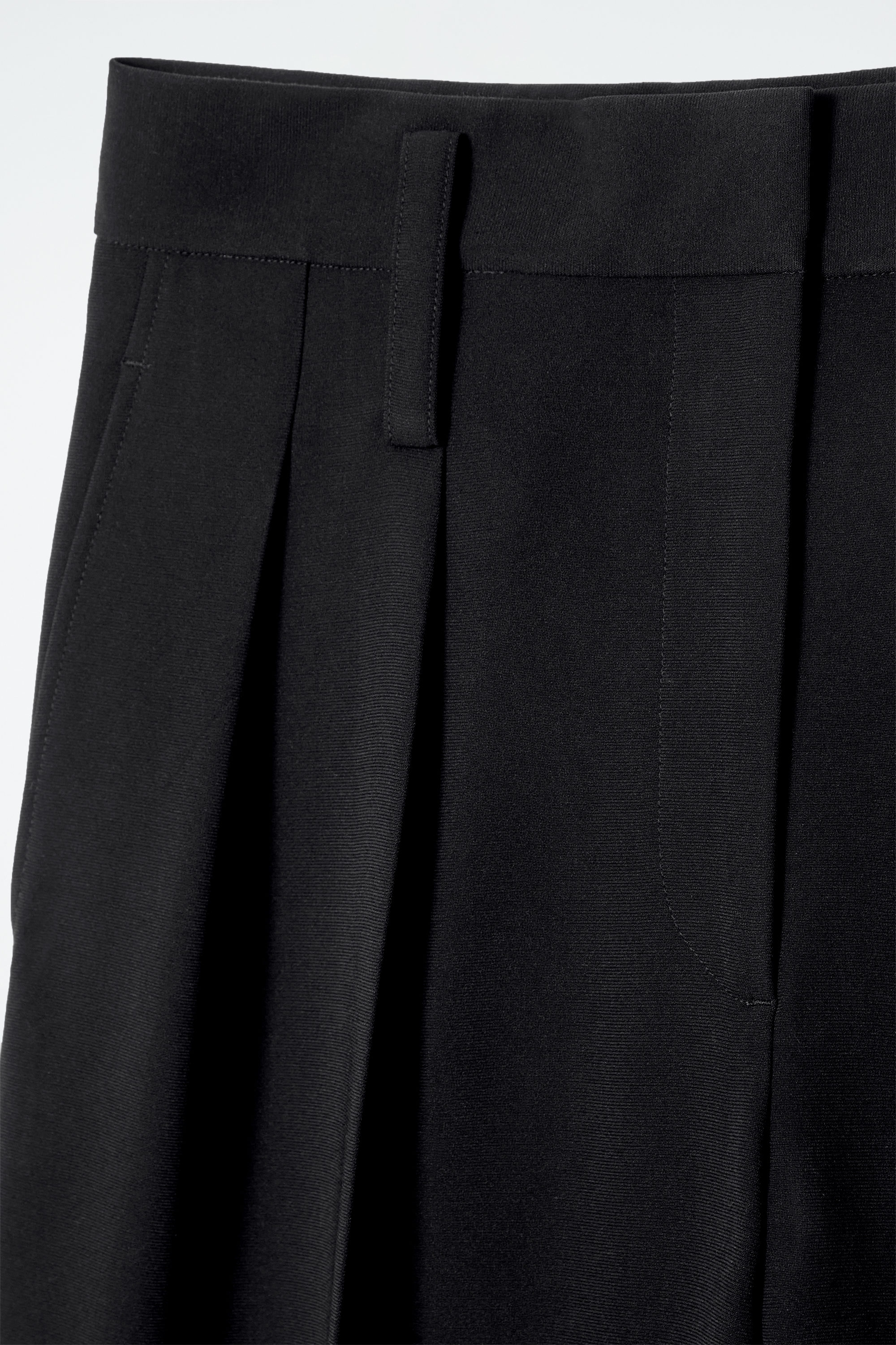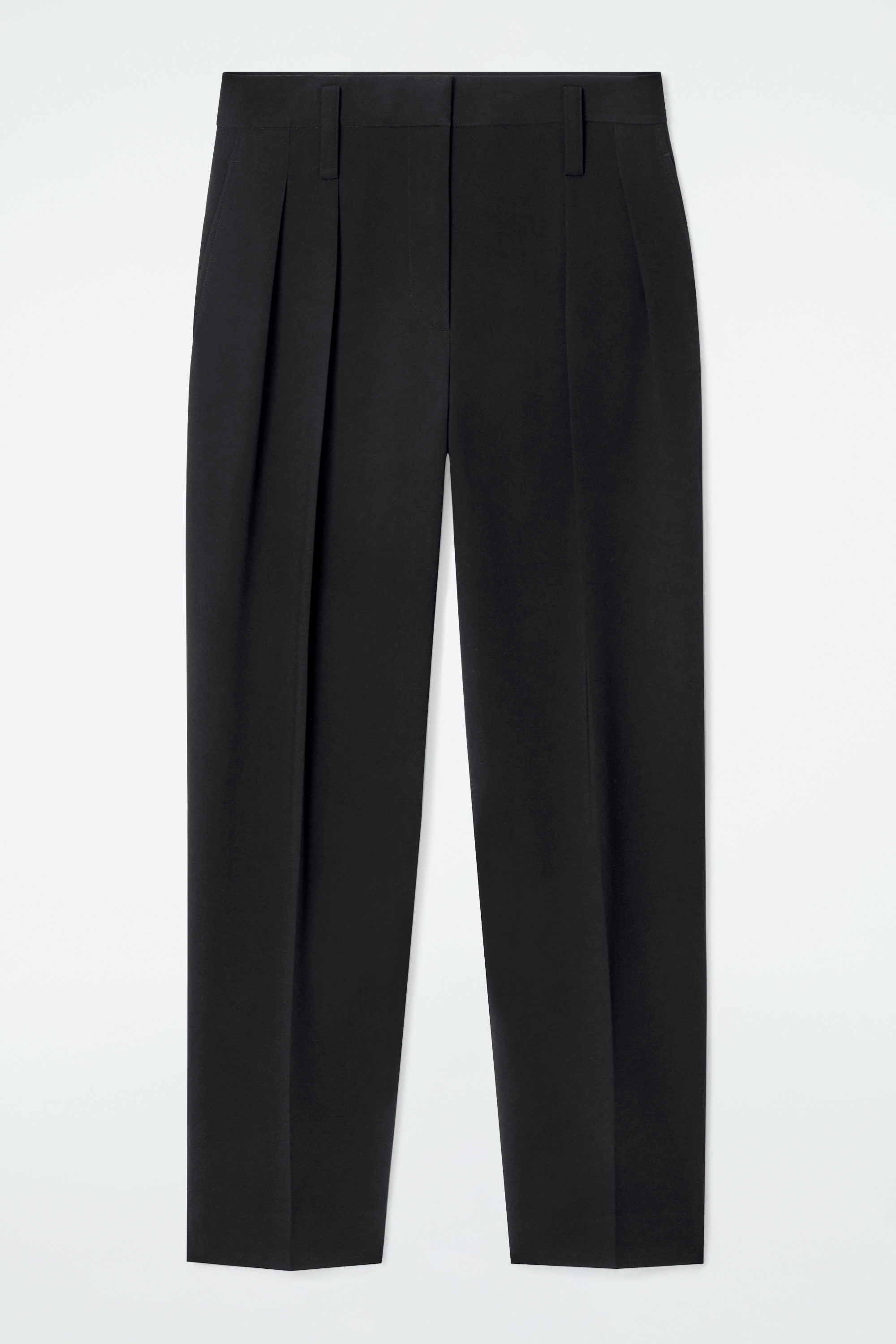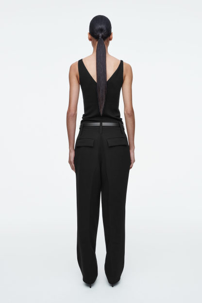 Denna säsong ger flödande silhuetter och mjuka linjer en ny känsla av lätthet till skräddat. De här byxorna är tillverkade av lätt crepe och skräddade med raka ben och frontveck, bälteshällor och justering i midjan för en skräddarsydd passform. Styla som en kostym med den matchande kavajen.