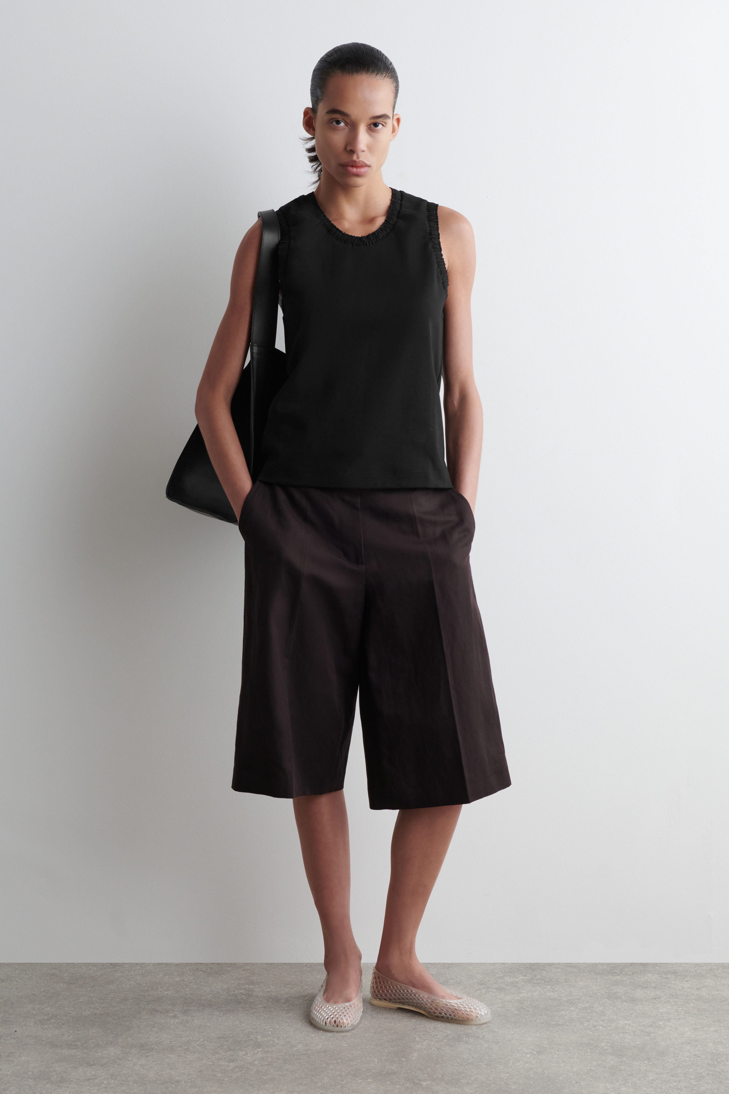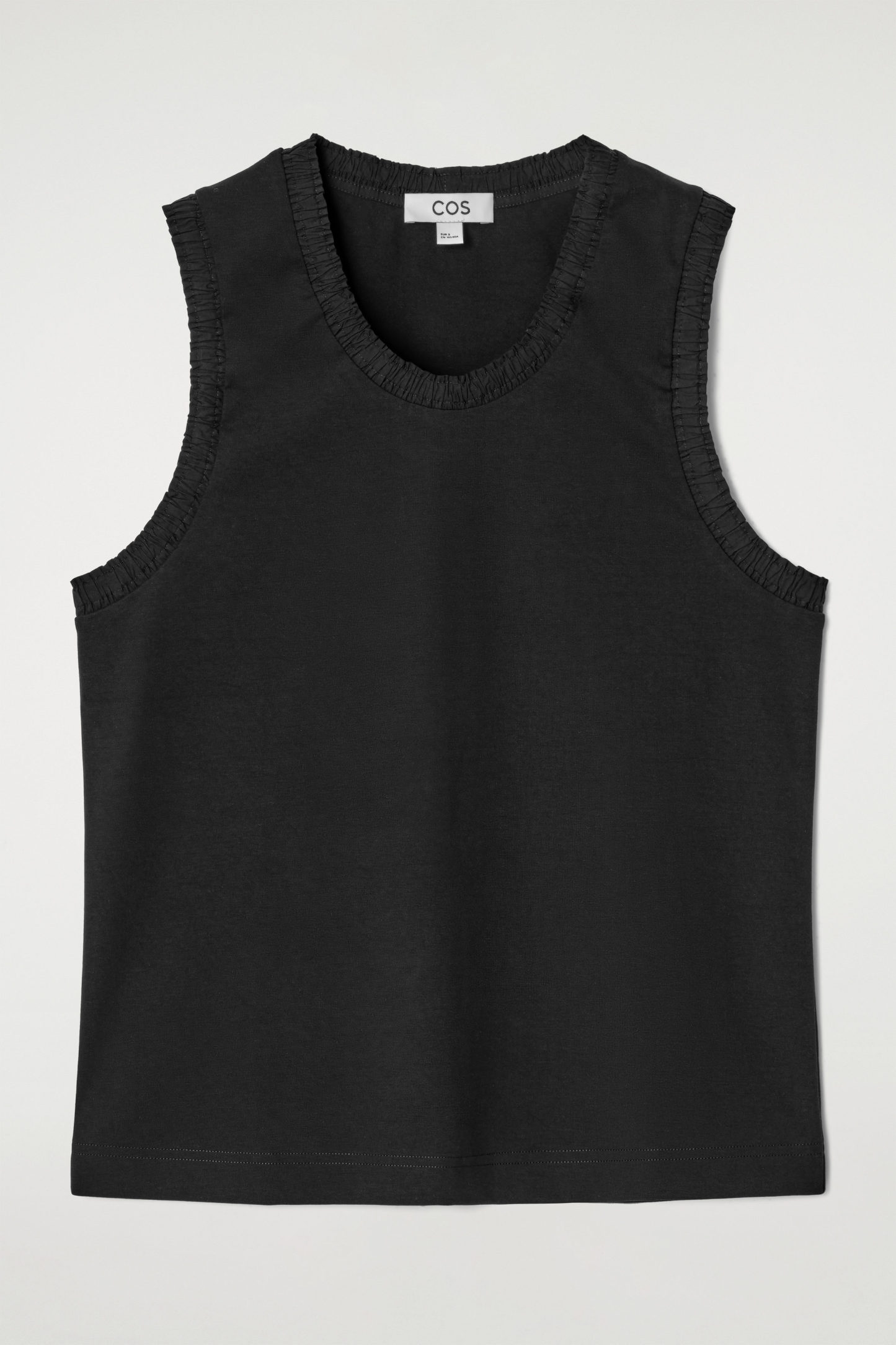 Crafted from soft cotton-jersey, this refined tank top has ruffled edges that delicately trace the scooped neckline and sleeves, creating a fresh, feminine shape. It's rendered in a classic black tone that is effortless to style.