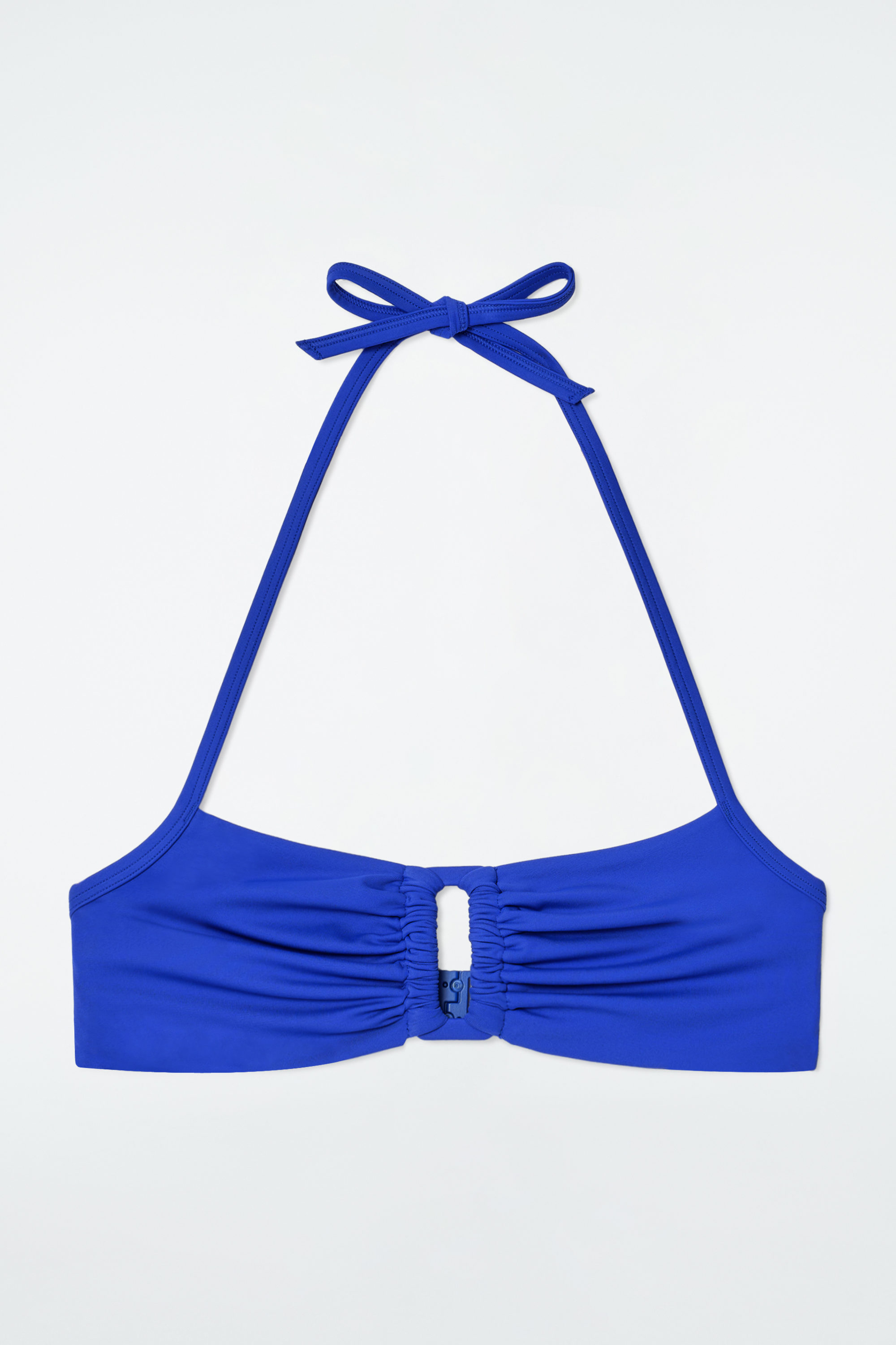 This modern bikini top lends itself to days spent by the water. Made from recycled nylon with hints of stretch, it's designed with a cutout rectangular buckle, rouleau straps and halterneck ties. Style it as a set with the matching bikini briefs.
