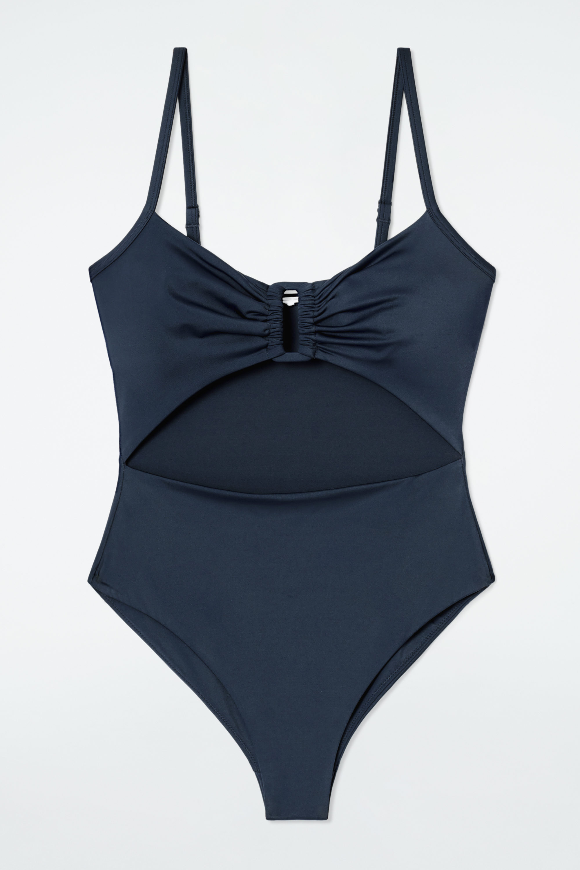 This modern swimsuit lends itself to days spent by the water. Made from recycled nylon with hints of stretch, it's designed with a central cutout panel, a rectangular buckle and adjustable shoulder straps.
