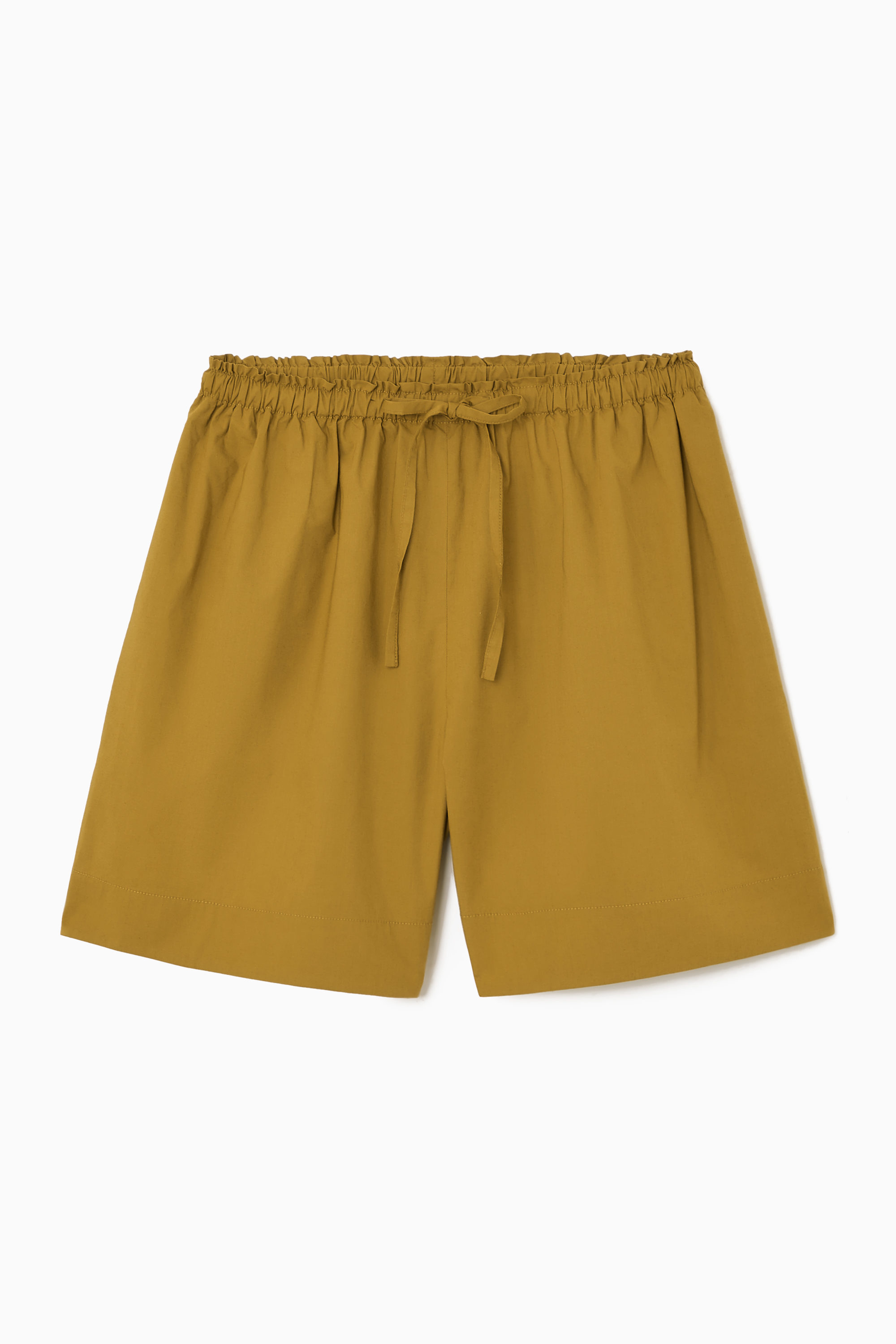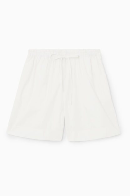 cthtos dammodeteam har designat de här lätta shortsen i bomull för att enkelt kunna ta klivet in i sommaren. Linningen med stretch och dragsko ger en flexibel passform och rynkad struktur som framhäver det böljande materialet. Våra stylister föreslår en outfit med den matchande blusen för en ledig look under sommardagar.