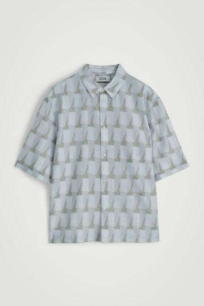 KORTÄRMAD SKJORTA MED GEOMETRISKT MÖNSTER