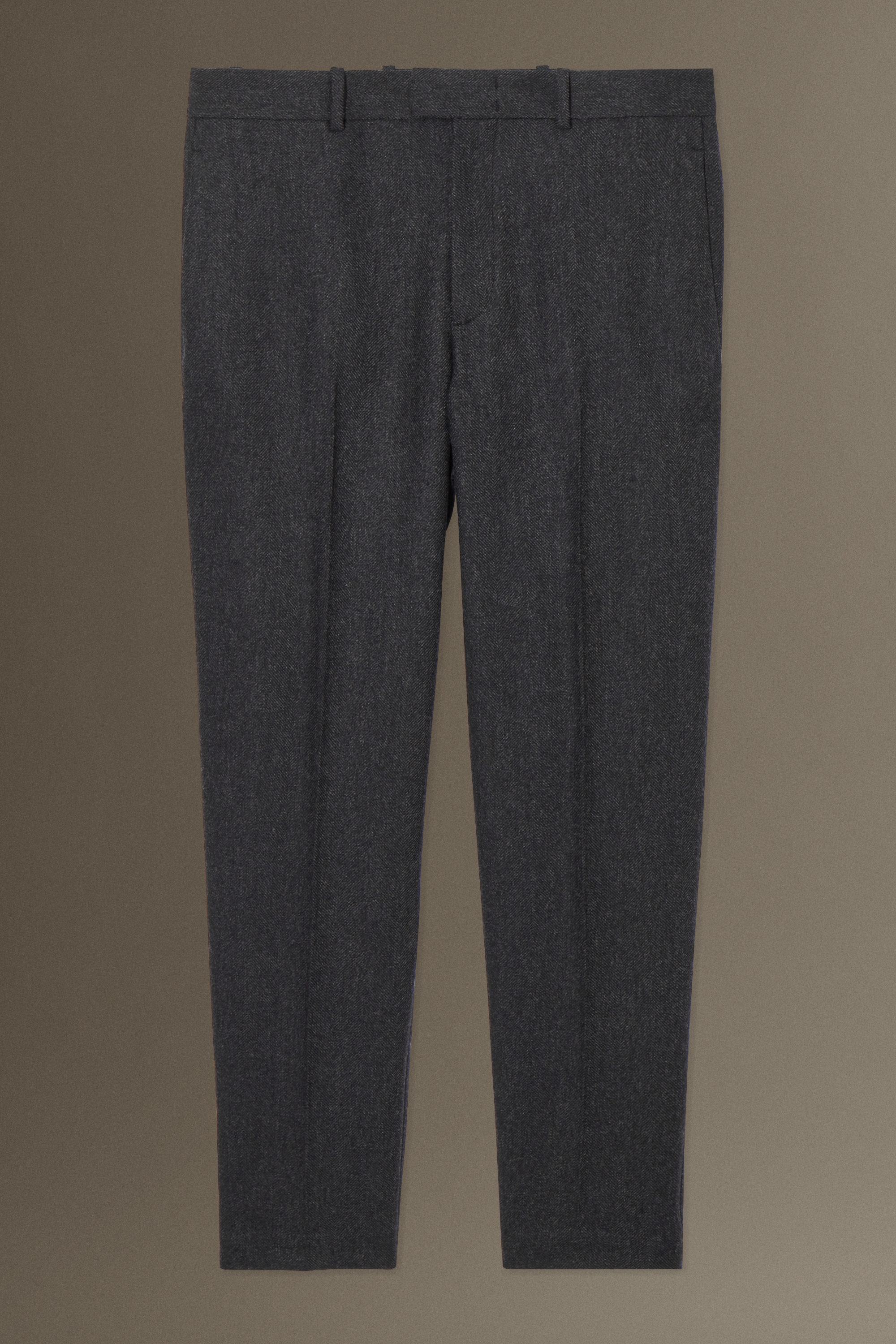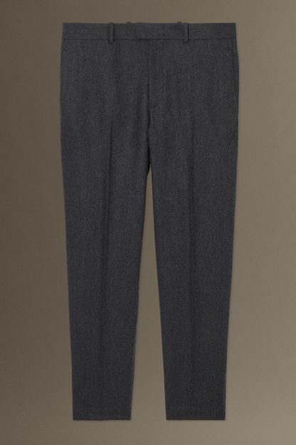 Dessa byxor med raka ben tillhör den mer dressade delen av vår herrkollektion tack vare de exakta pressvecken och stilrena passpoalfickorna. De har en tidlös, mörkgrå nyans och är skickligt skräddade i fiskbensmönstrad ullblandning. Du kan enkelt styla dem med en skjorta, derbyskor och den matchande kavajen.
