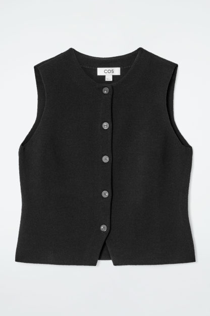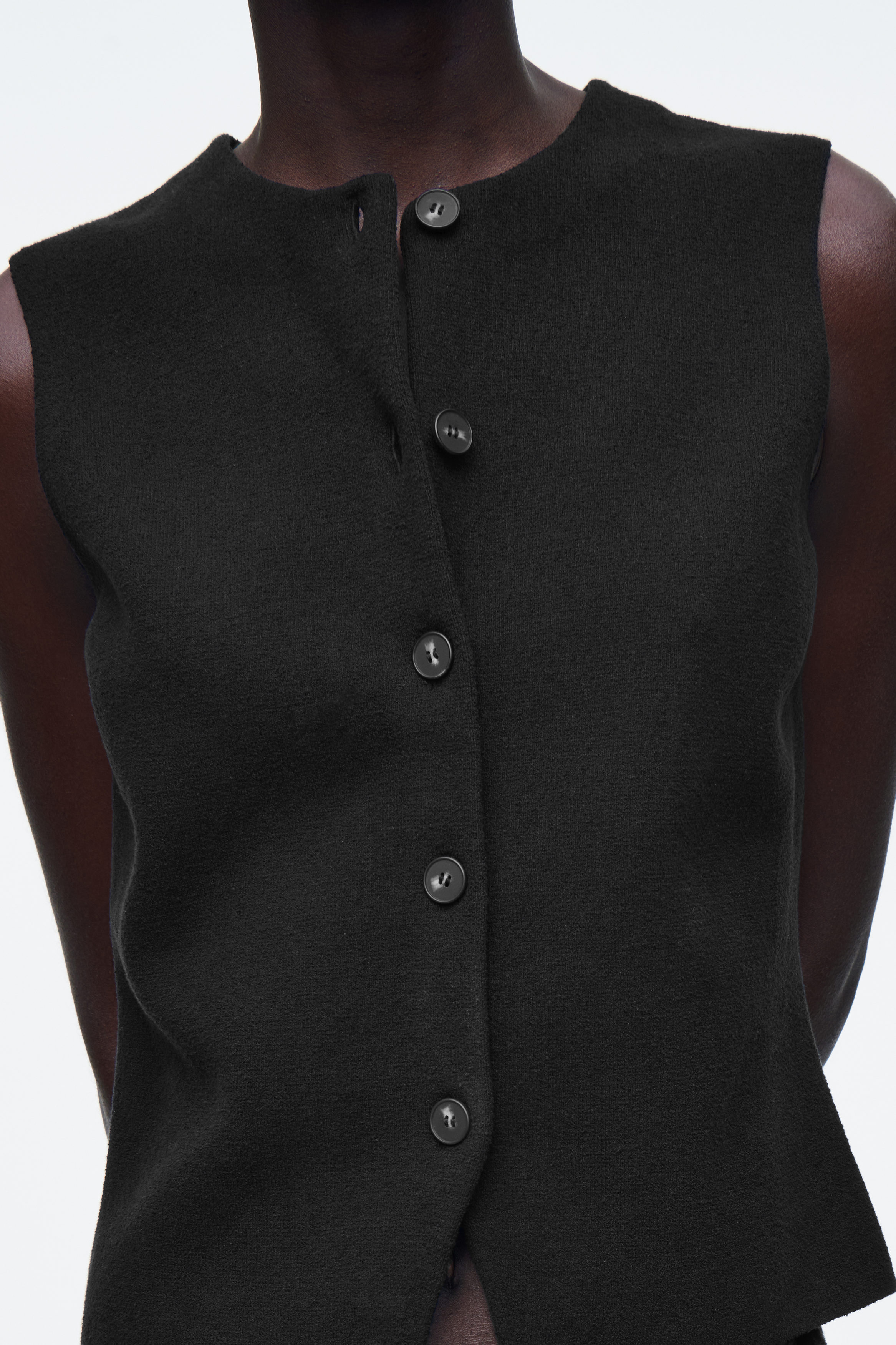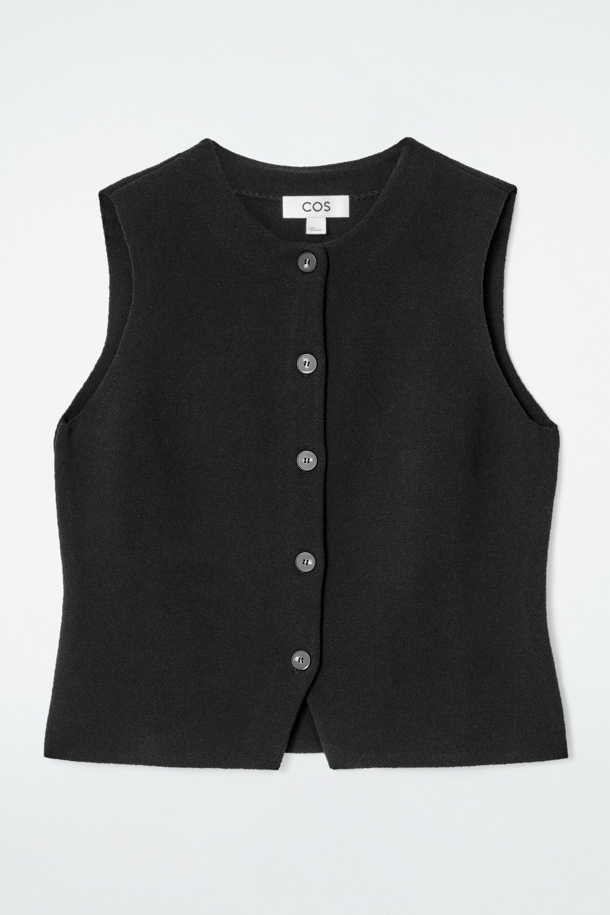 cthtos skräddade kollektion kännetecknas av rena linjer och diskret enkelhet. Denna stickade bomullsväst i en lättburen, svart nyans är designad med en rundad halsringning och en V-formad detalj vid fållen. Styla den med denim eller kostymbyxor för en effektfull ensemble.