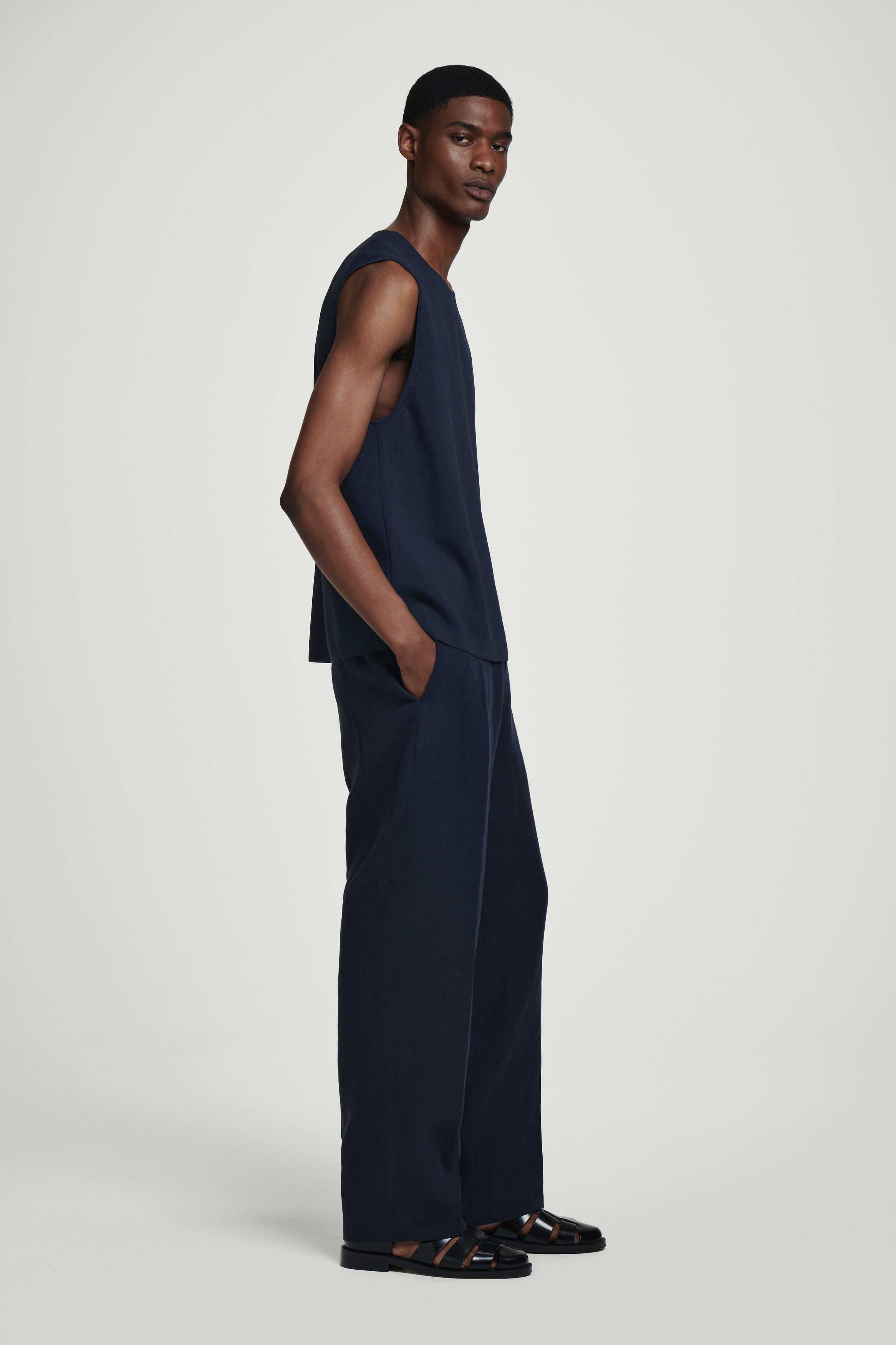 Genomtänkta material och klanderfria snitt bidrar med en uppdatering för garderoben den här säsongen. Det här välpolerade linnet är finstickat för en mjuk känsla och har en intensivt marinblå nyans med ett stilrent snitt som erbjuder potential för mångsidig styling: bär plagget som det är med jeans eller under skräddade plagg.
