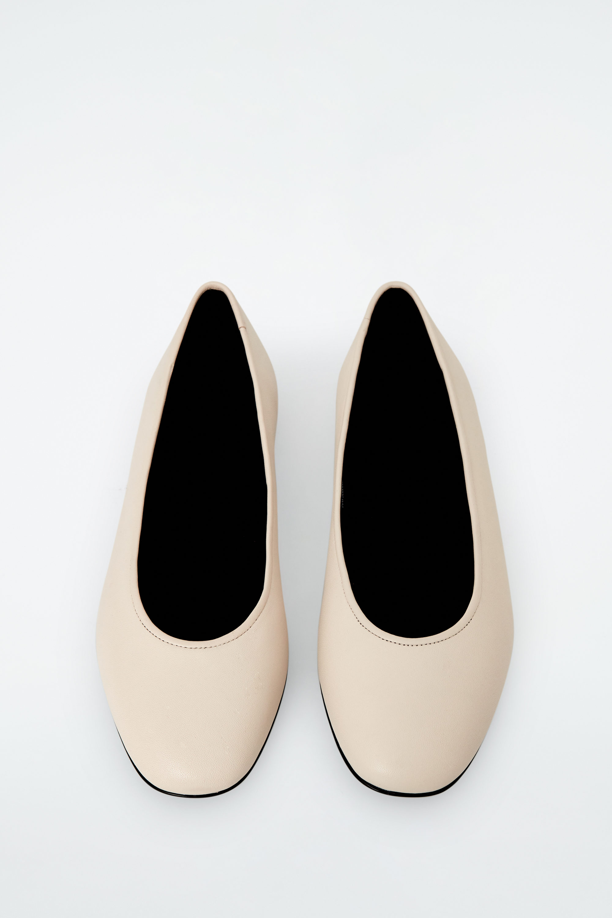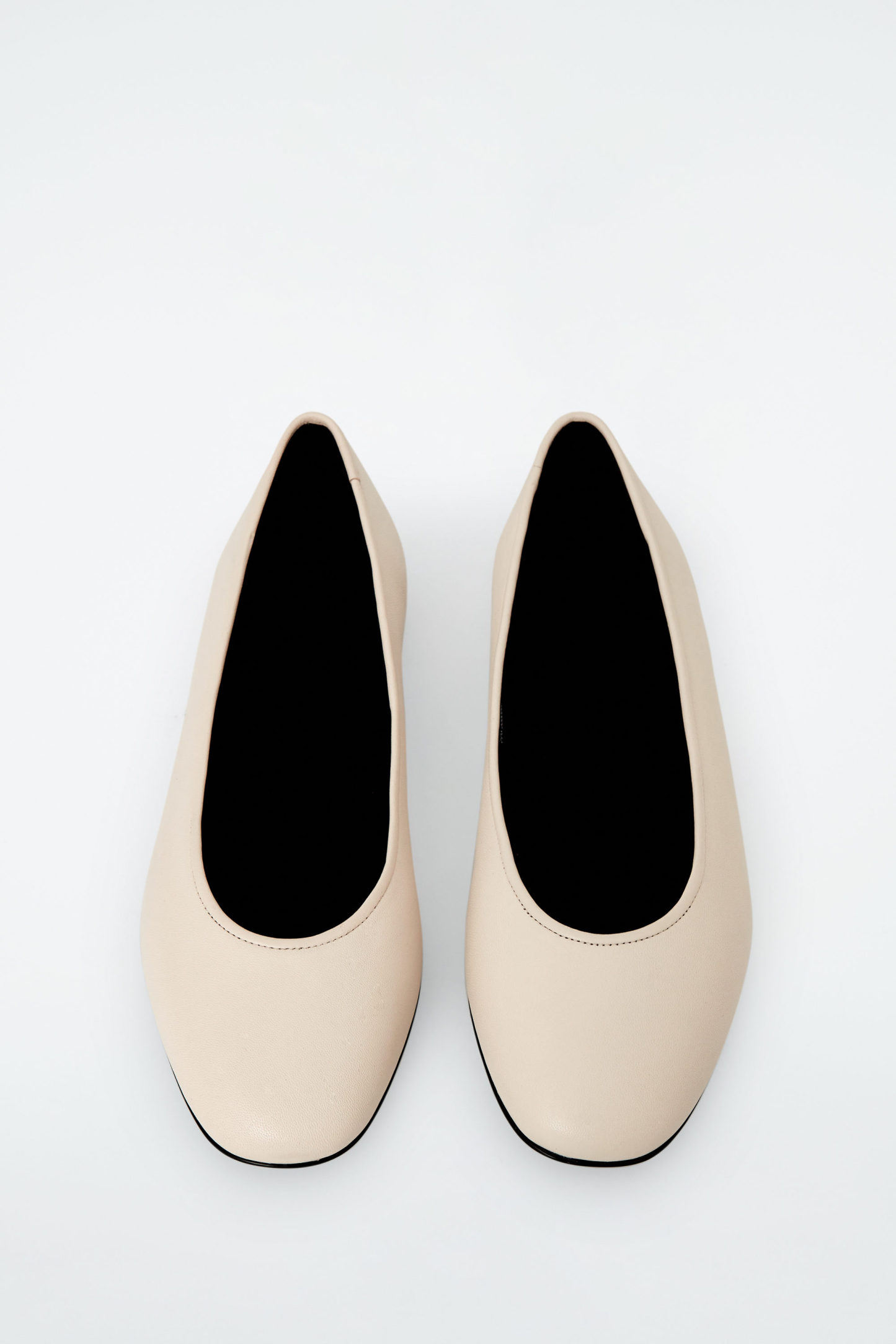 Enkelheten hos dessa ballerinapumps gör att de högkvalitativa materialen och den skickliga konstruktionen står i centrum. De är tillverkade av smidigt, kromfritt läder som mjuknar vid slitage och vilar på en bekväm, vadderad innersula. Den klassiska silhuetten gör att de kan stylas säsong efter säsong.
