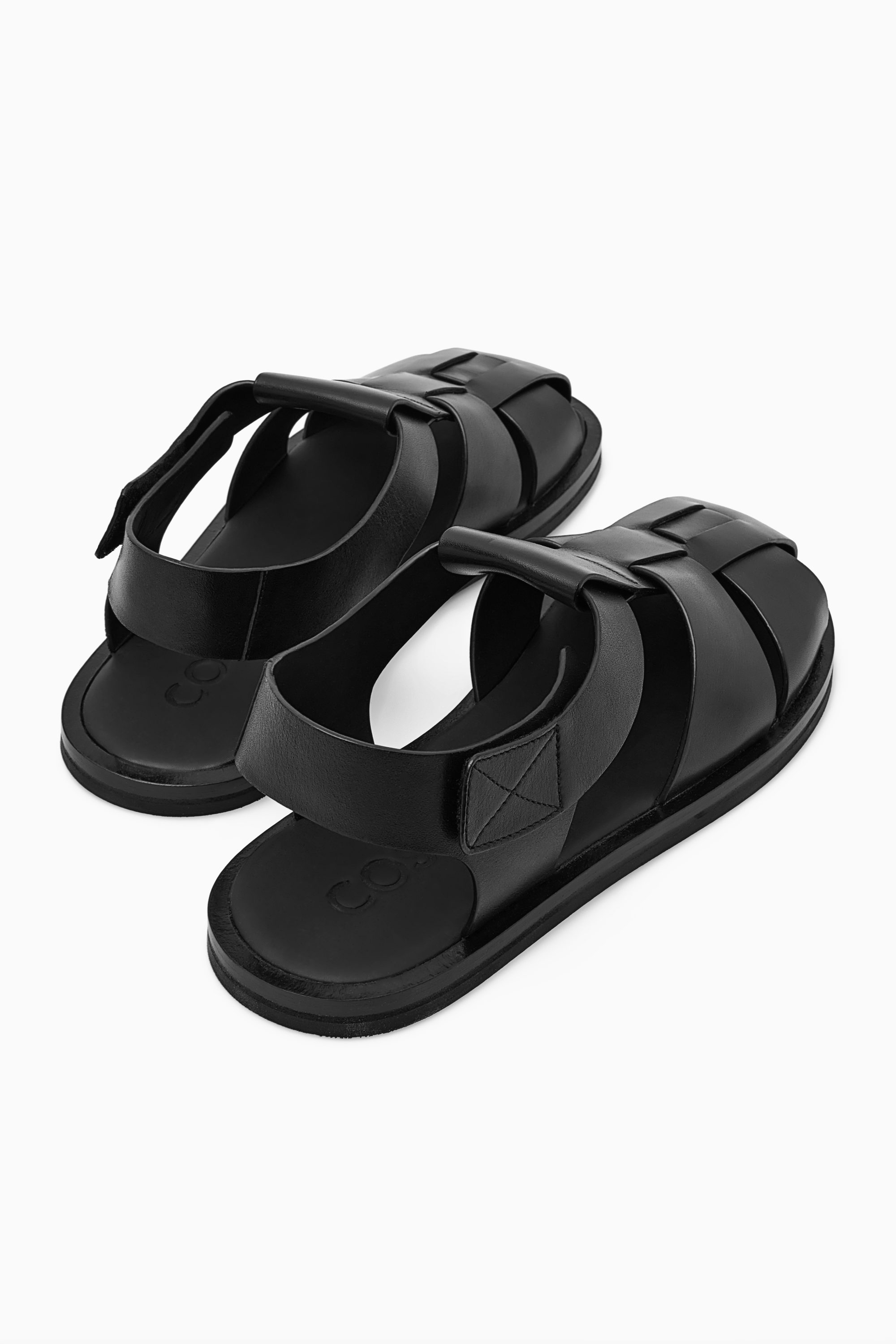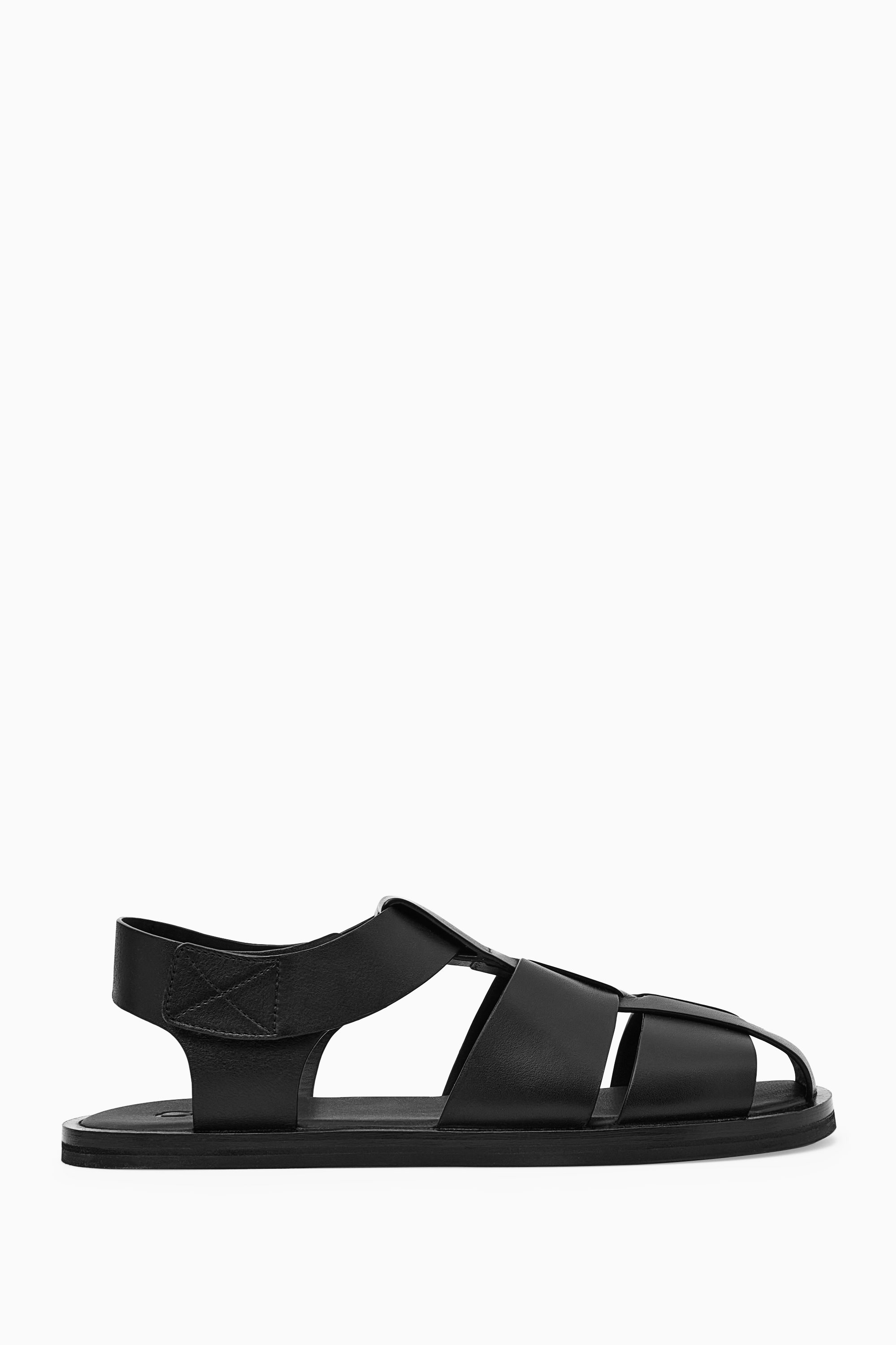 cthtos herrmodeteam inspirerades av en klassisk fiskarlook vid designen av de här sandalerna. De är gjorda av mjukt kromfritt läder och garvade i en djupsvart nyans med karaktäristisk ovandel som har breda sammanflätade spännen och en tydligt modern känsla. Bär dem med både avslappnade outfits och skräddade plagg.