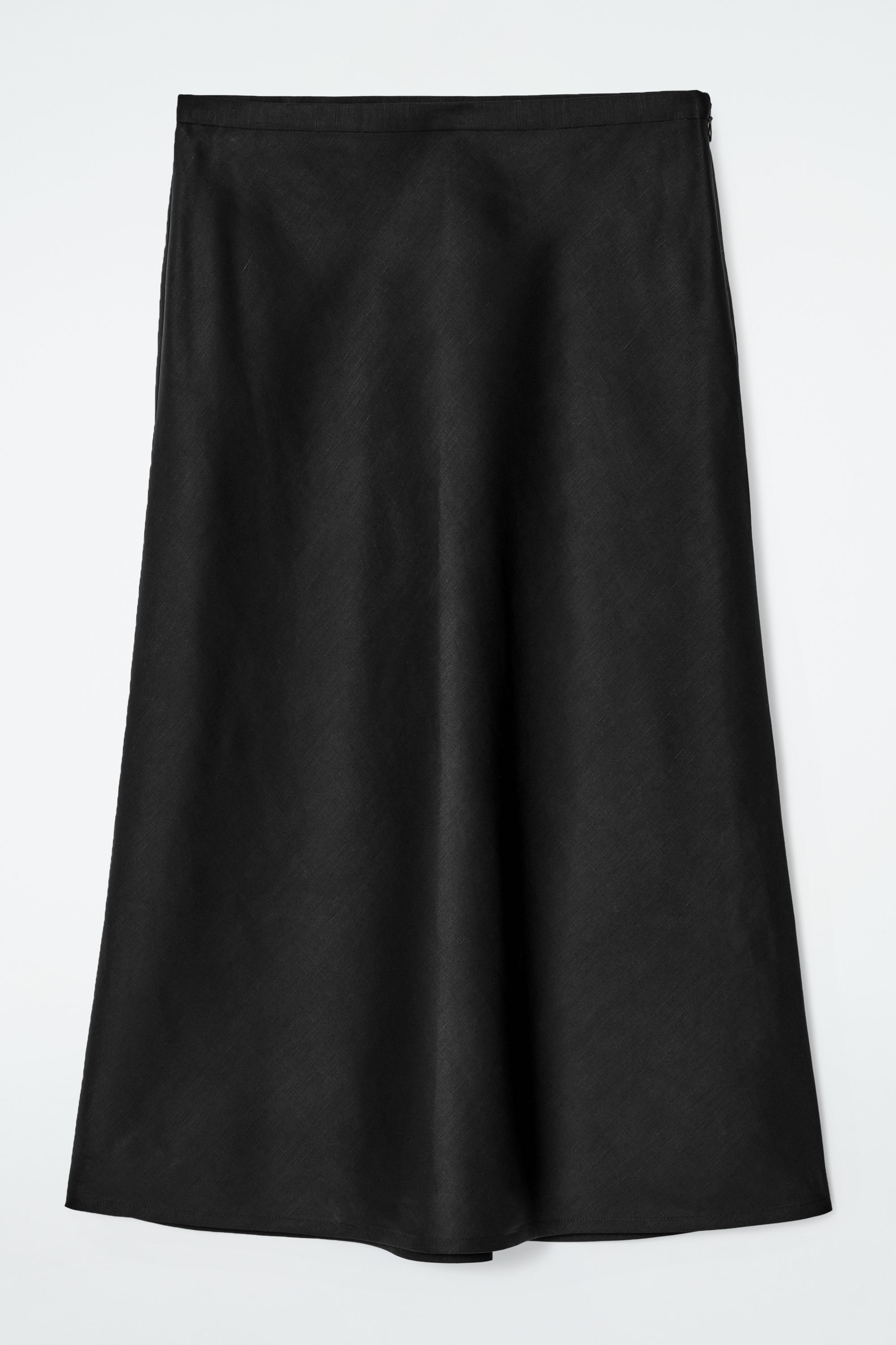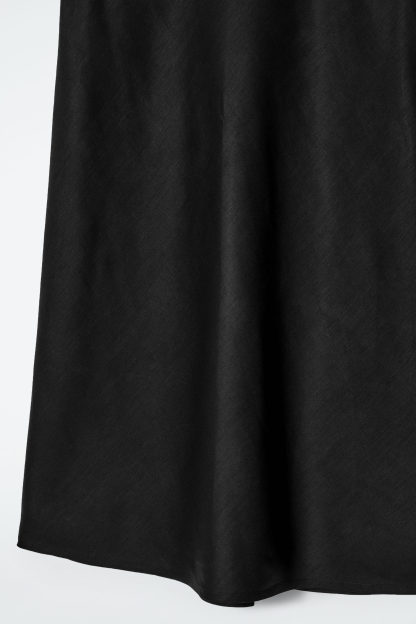 Inled de varmare månaderna med den här snedskurna midikjolen i en luftig blandning av TENCEL™ lyocell och lin som lämpar sig för ljumma väder. Den erbjuds i en klassisk, svart nyans och har en rak silhuett. Styla den som ett set med den matchande toppen