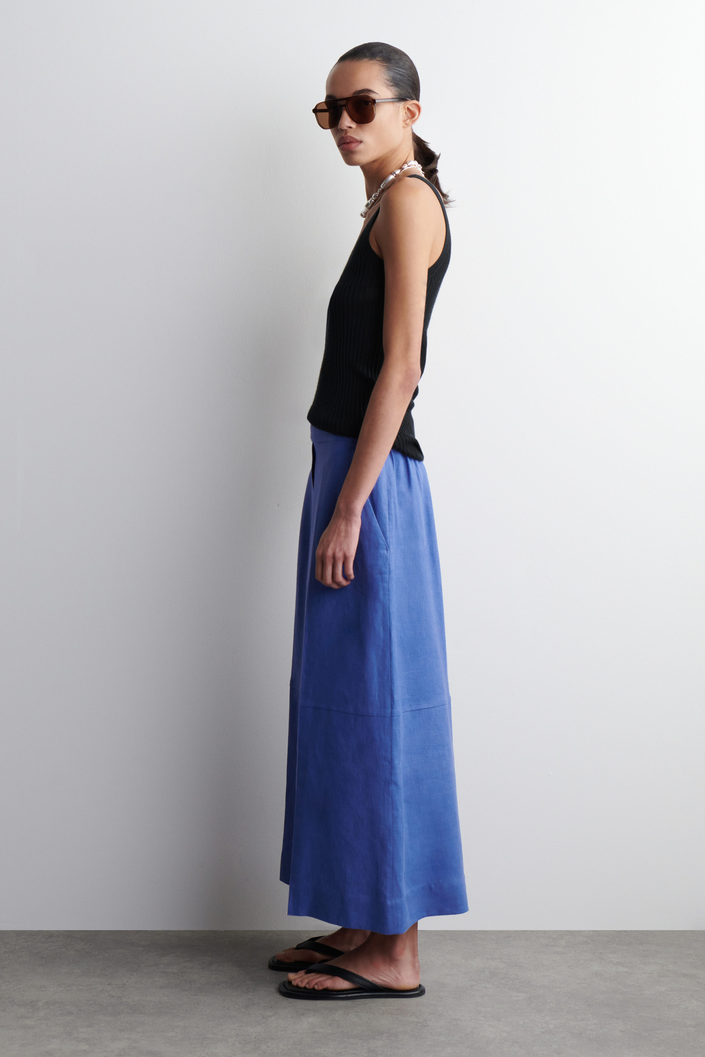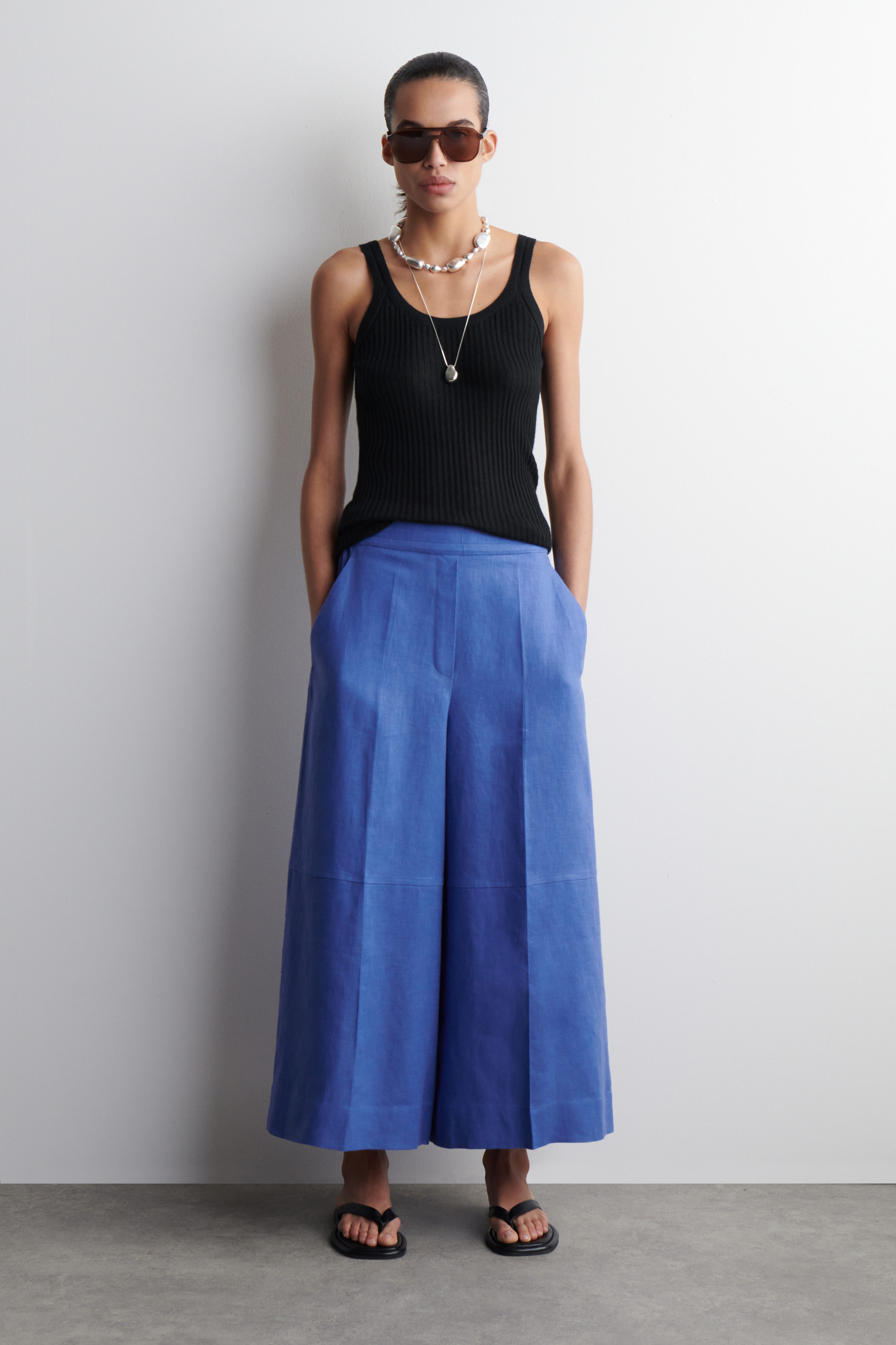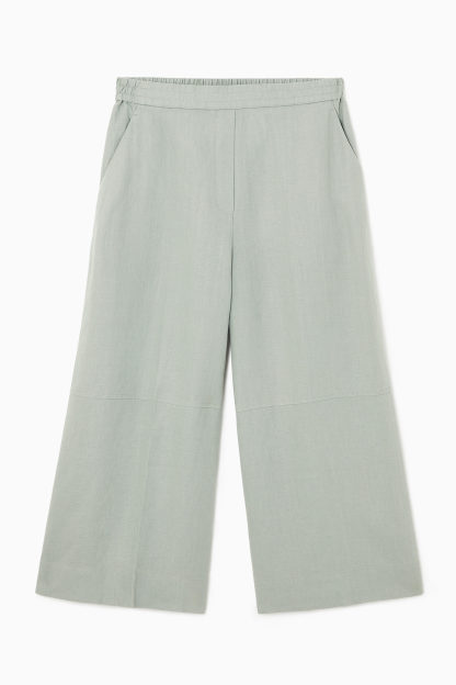 Dessa moderna culottes är ett självklart val för varmare dagar. De är tillverkade av rent linne samt har ett lätt, avslappnat snitt, resår i midjan och flera fickor.
