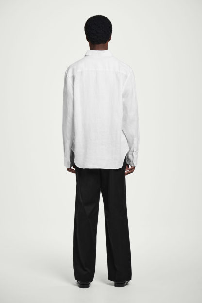 Den här luftiga långärmade skjortan är ett basplagg som kommer att passa in perfekt i garderoben under varmare månader. Gjord av naturligt luftigt linne i en tidlös, vit nyans och avslappnad passform för en behaglig känsla i varmt väder.