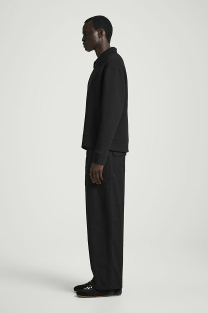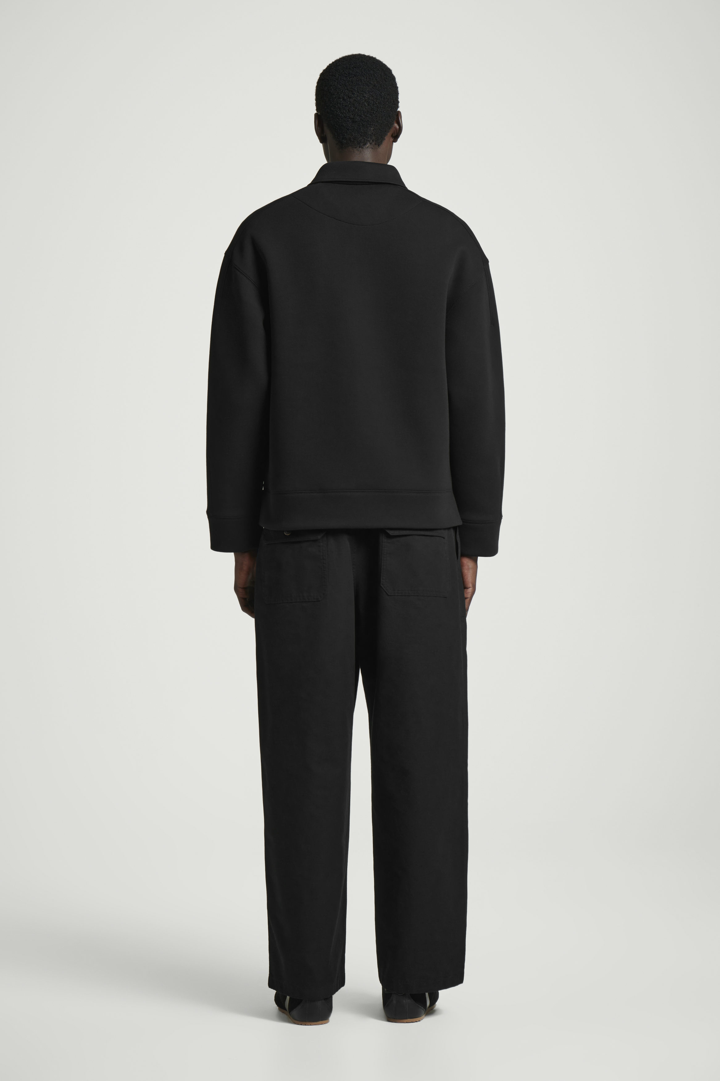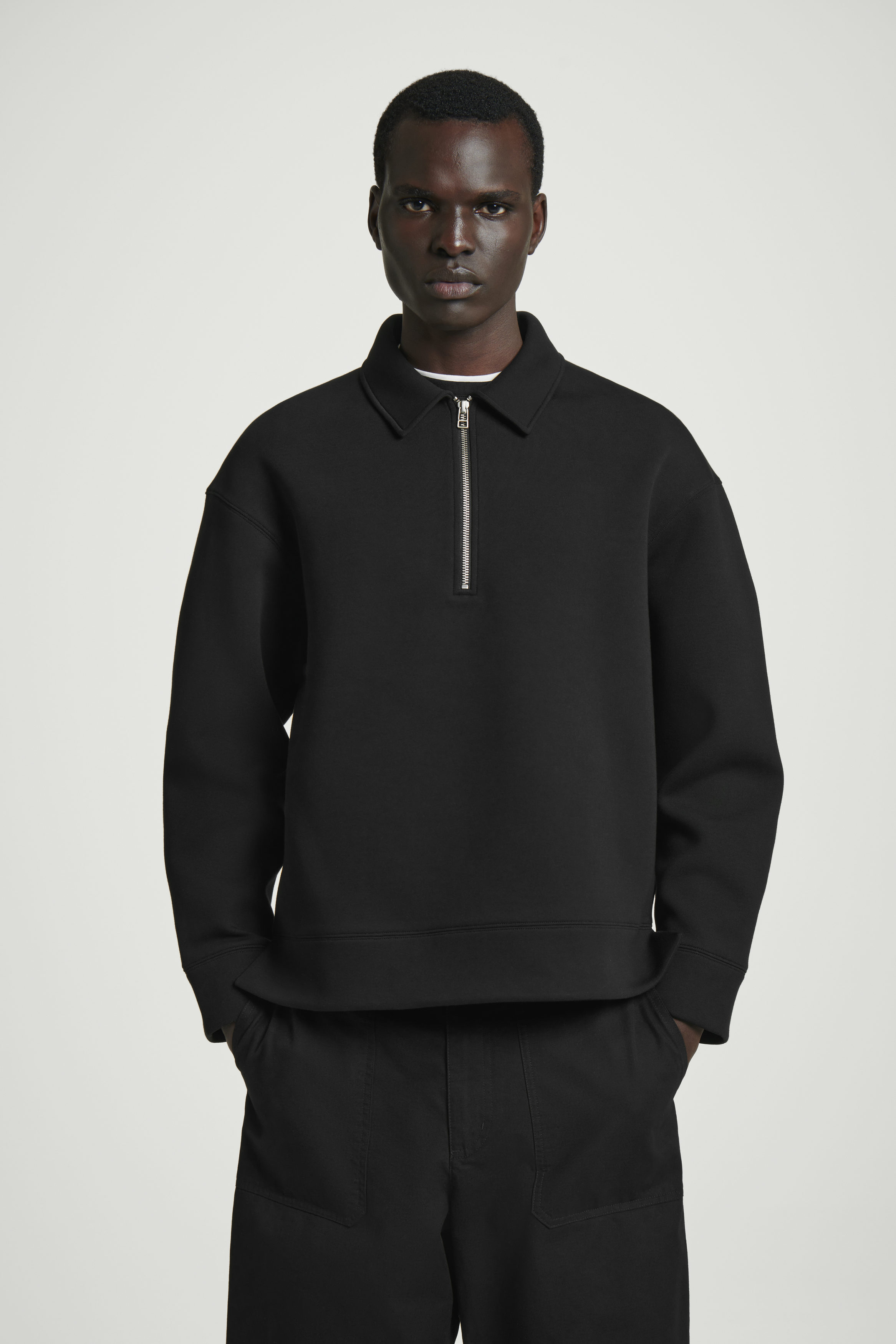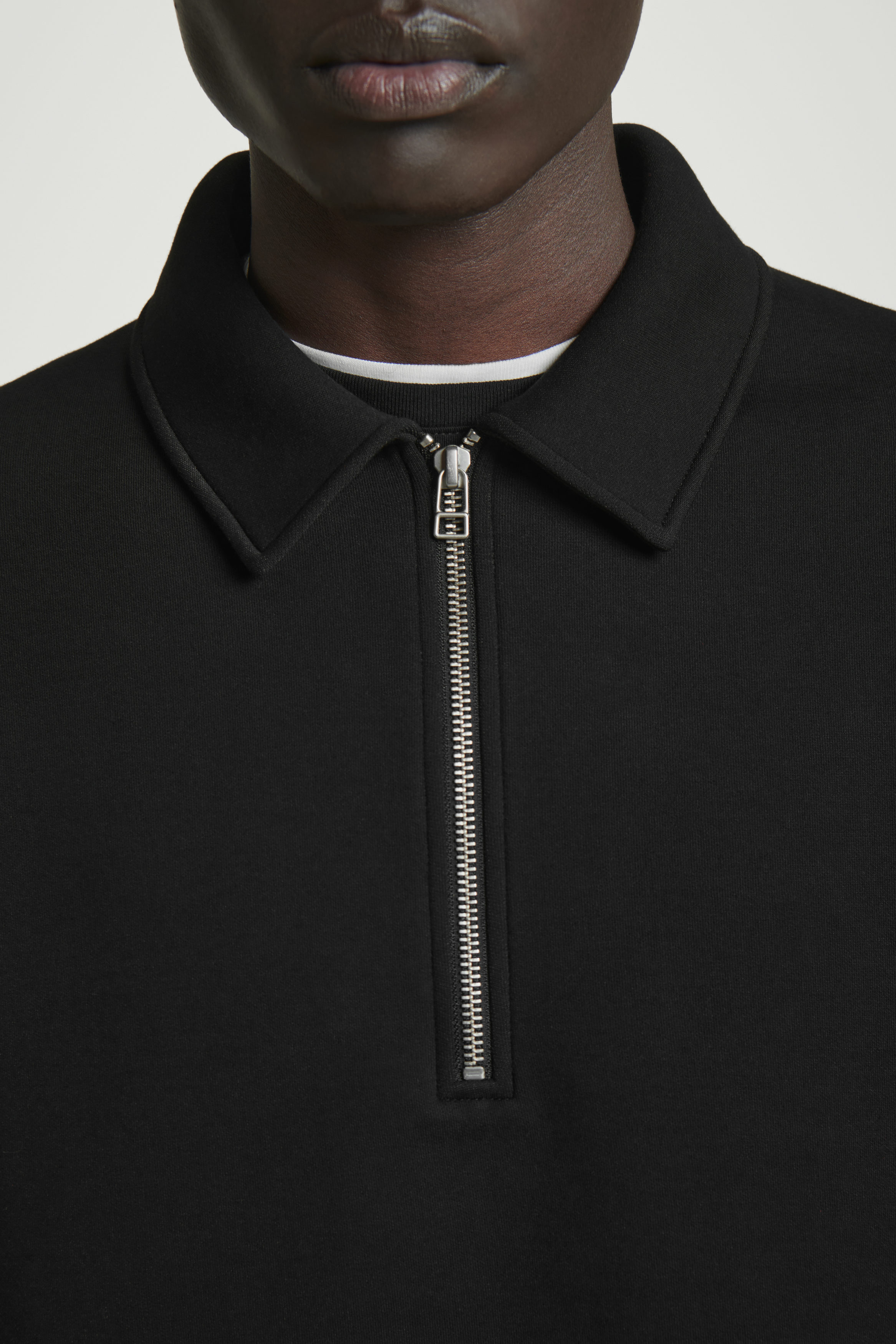En avslappnad variant av den klassiska pikétröjan. Den här versionen är tillverkad i scuba jersey som behåller sin struktur och har ett ledigt snitt. Tröjan har en spetsig signaturkrage och stängs med en silverfärgad dragkedja istället för traditionella knappar.