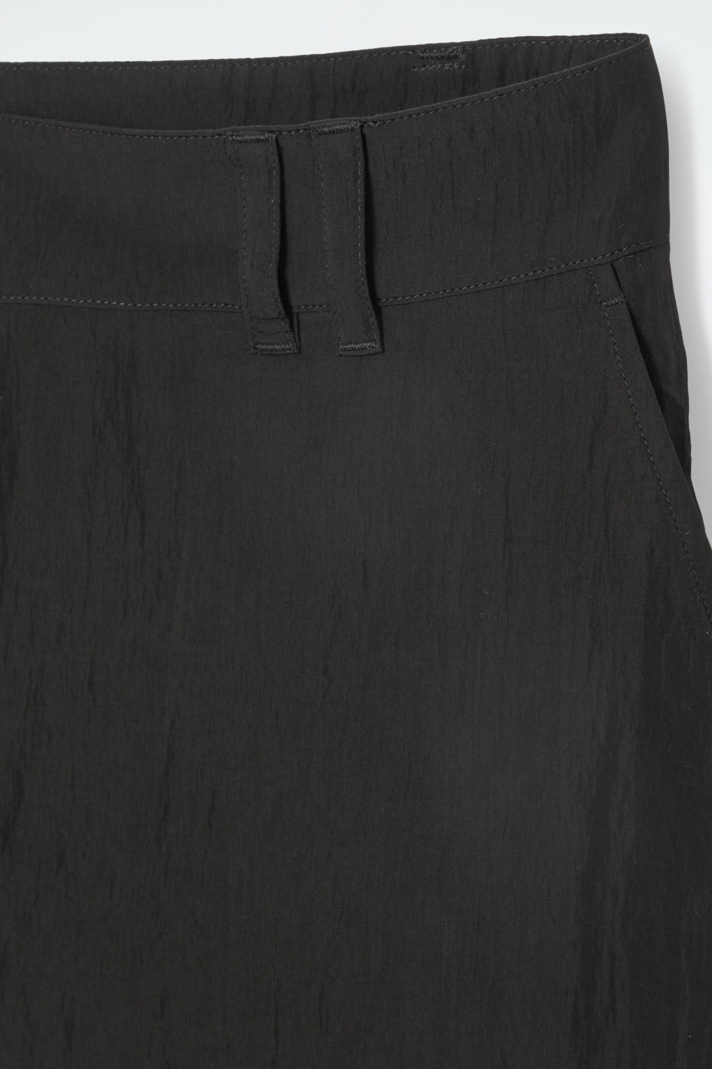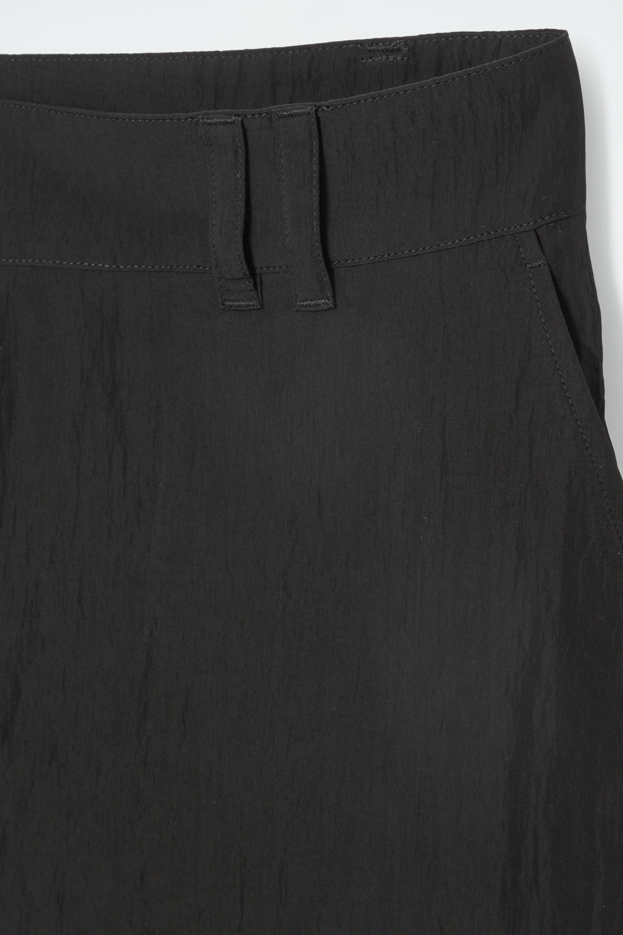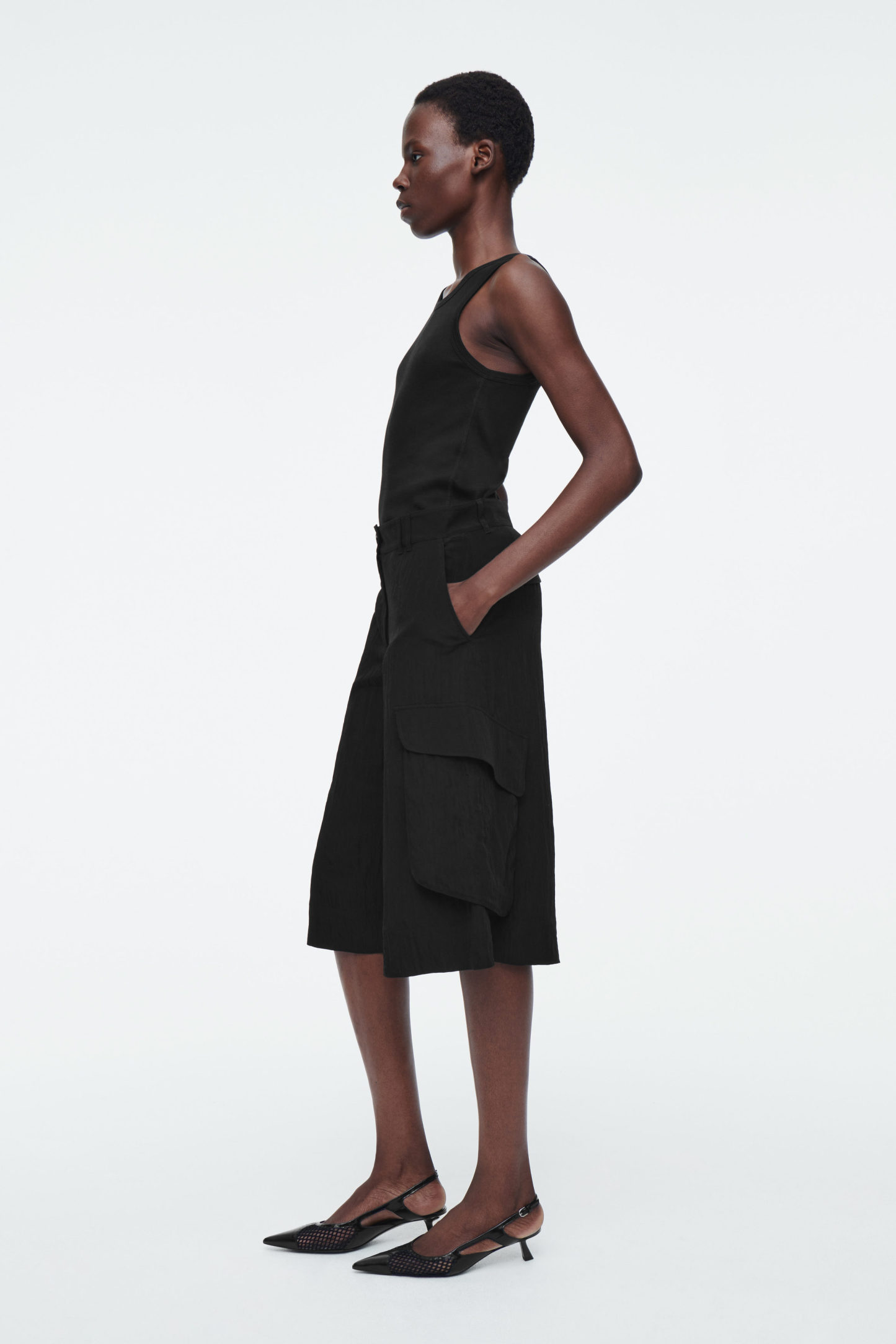 De här cargoshortsen i lång modell lånar inslag från workerdesign och är gjorda av en blandning med ECOVERO™-viskos och elegant fall. Benen är försedda med workwear-fickor och slutar nedanför knät. Kombinera med ett par skor i mules-modell för en uppklädd outfit.