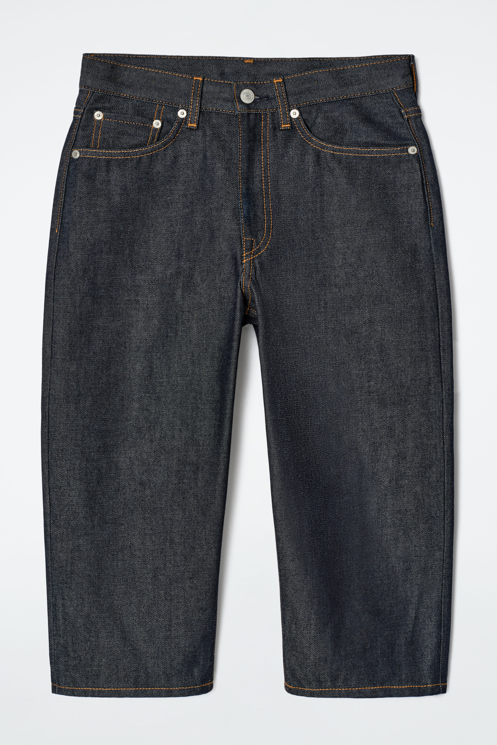 Denim får en uppdatering inför Vår & Sommar 2025. Dessa moderna shorts har en förlängd silhuett och är tillverkade i indigofärgad denim med signaturdetaljer från cthtos, såsom tobaksfärgade sömmar och präglade, silverfärgade nitar.