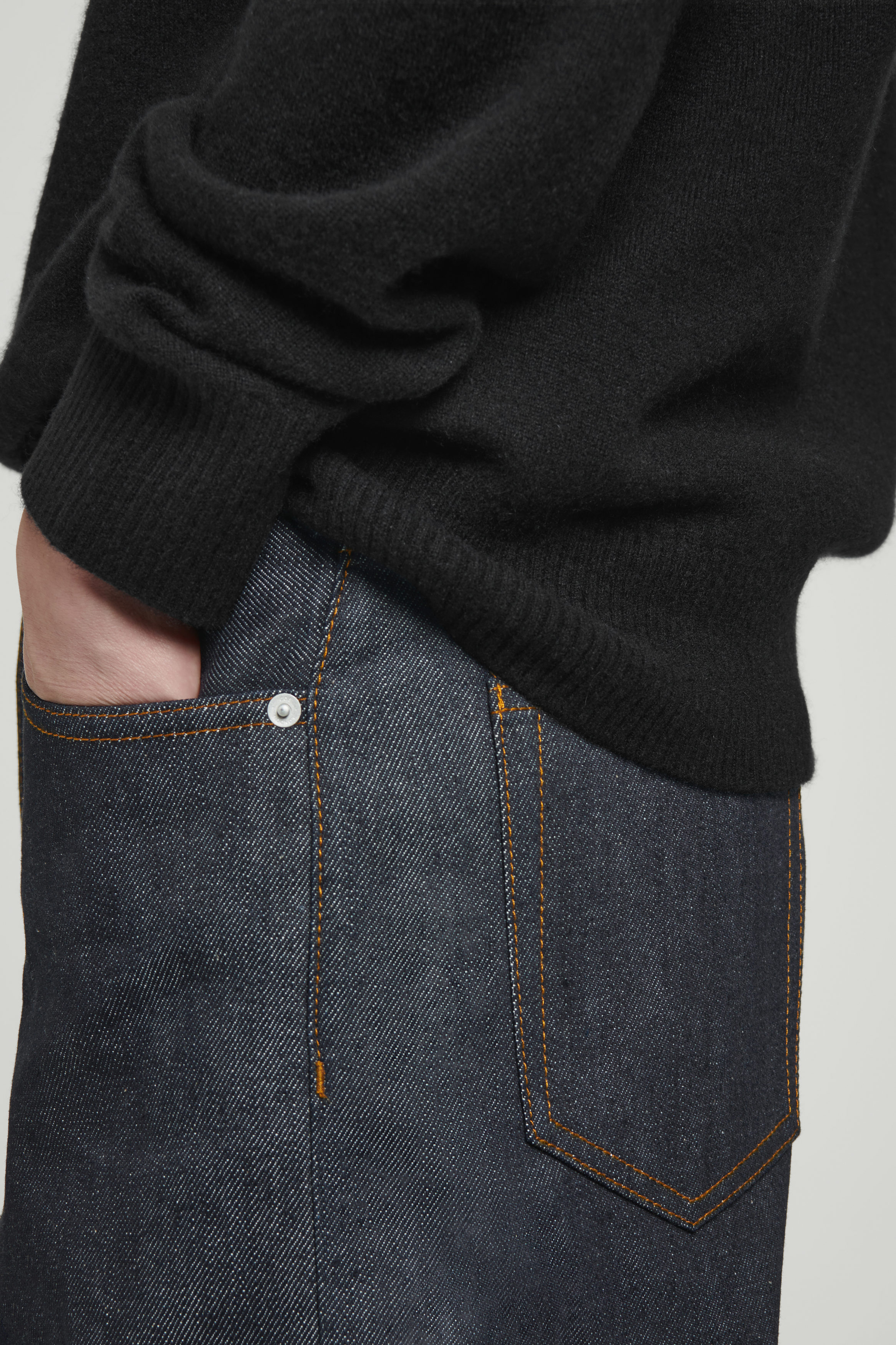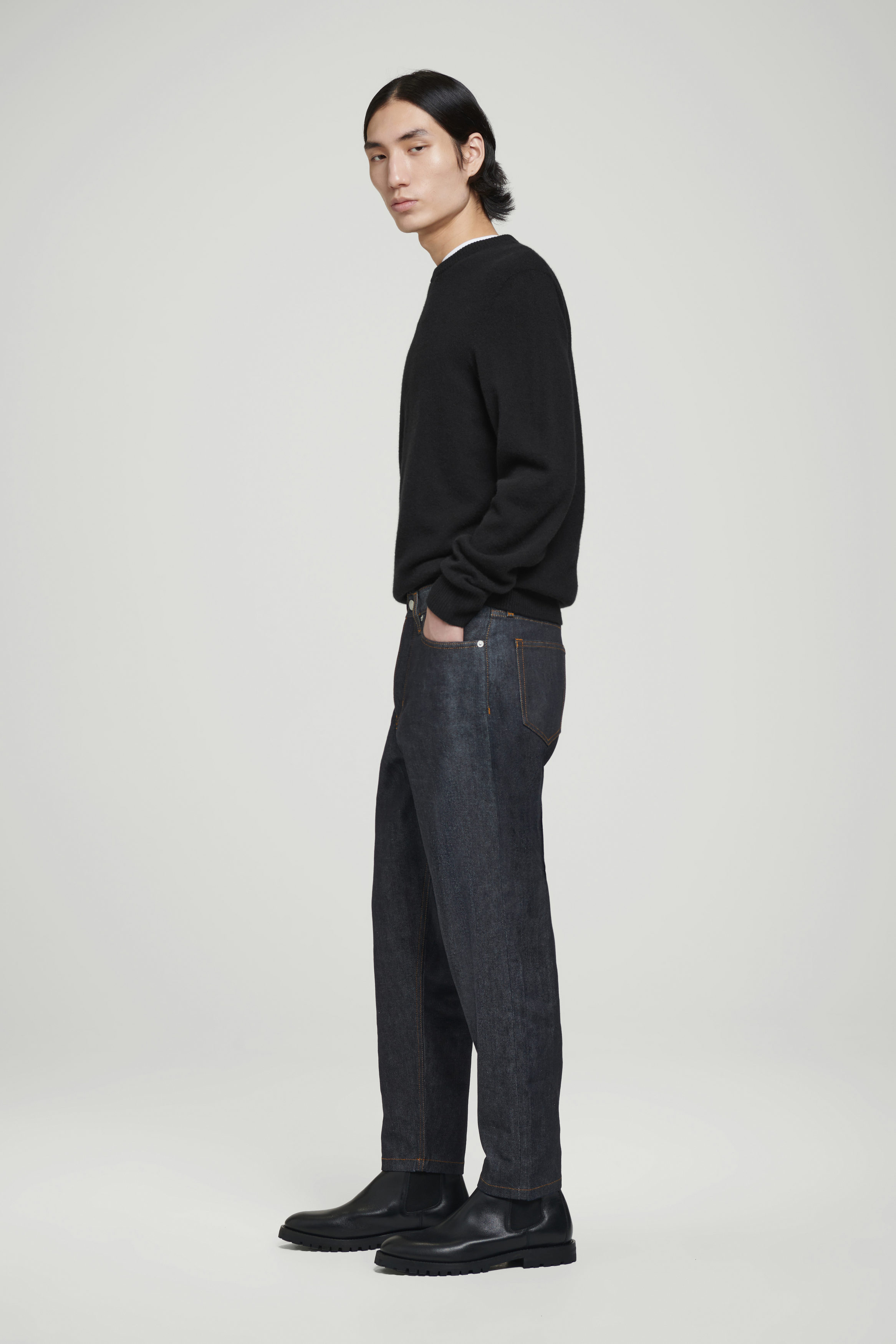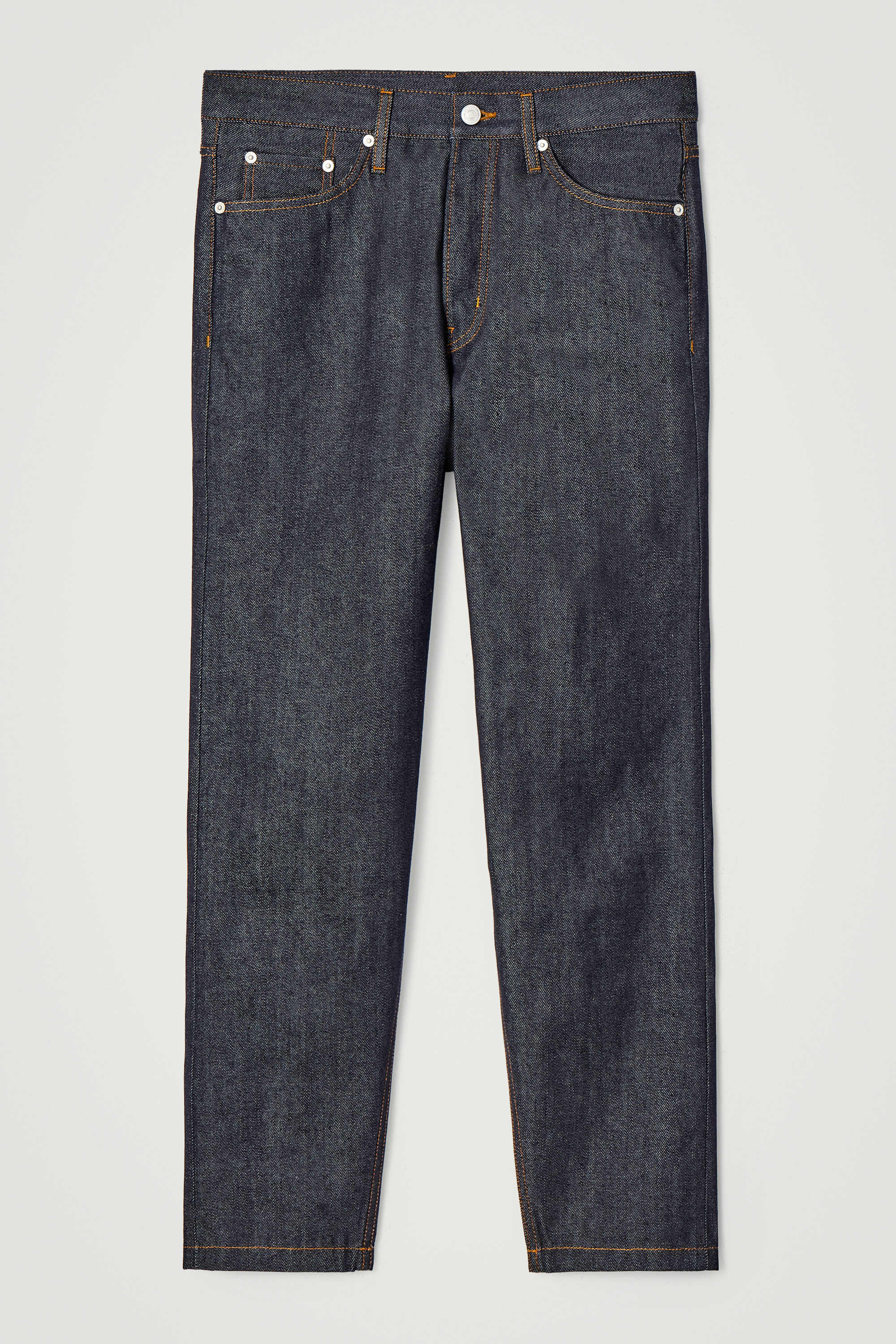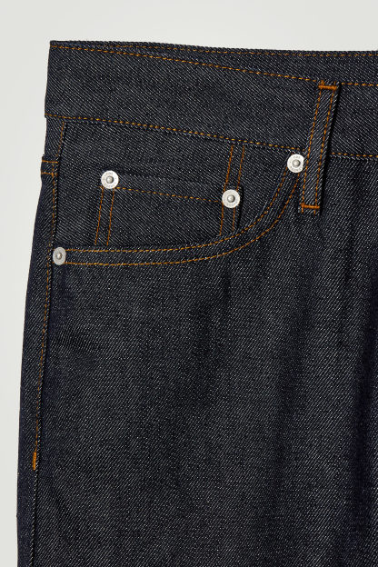 Jeansen Margin visar upp en förhöjd tolkning av klassisk denim. De är skurna i en avsmalnande form och tillverkade av ekologisk och återvunnen denim i bomullsblandning som lämnas rå för att behålla sin djupa indigoton. Metallnitar och eleganta sömdetaljer fulländar stilen.