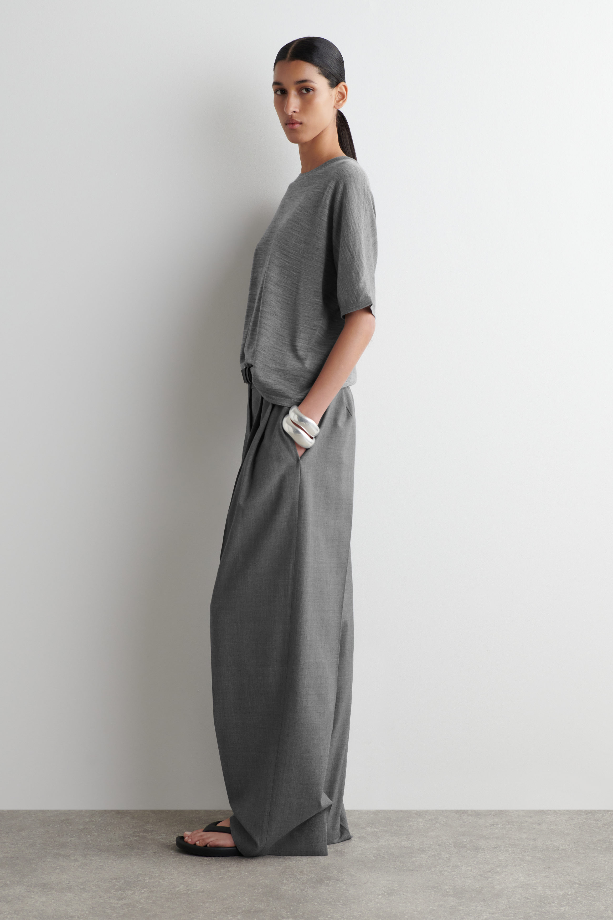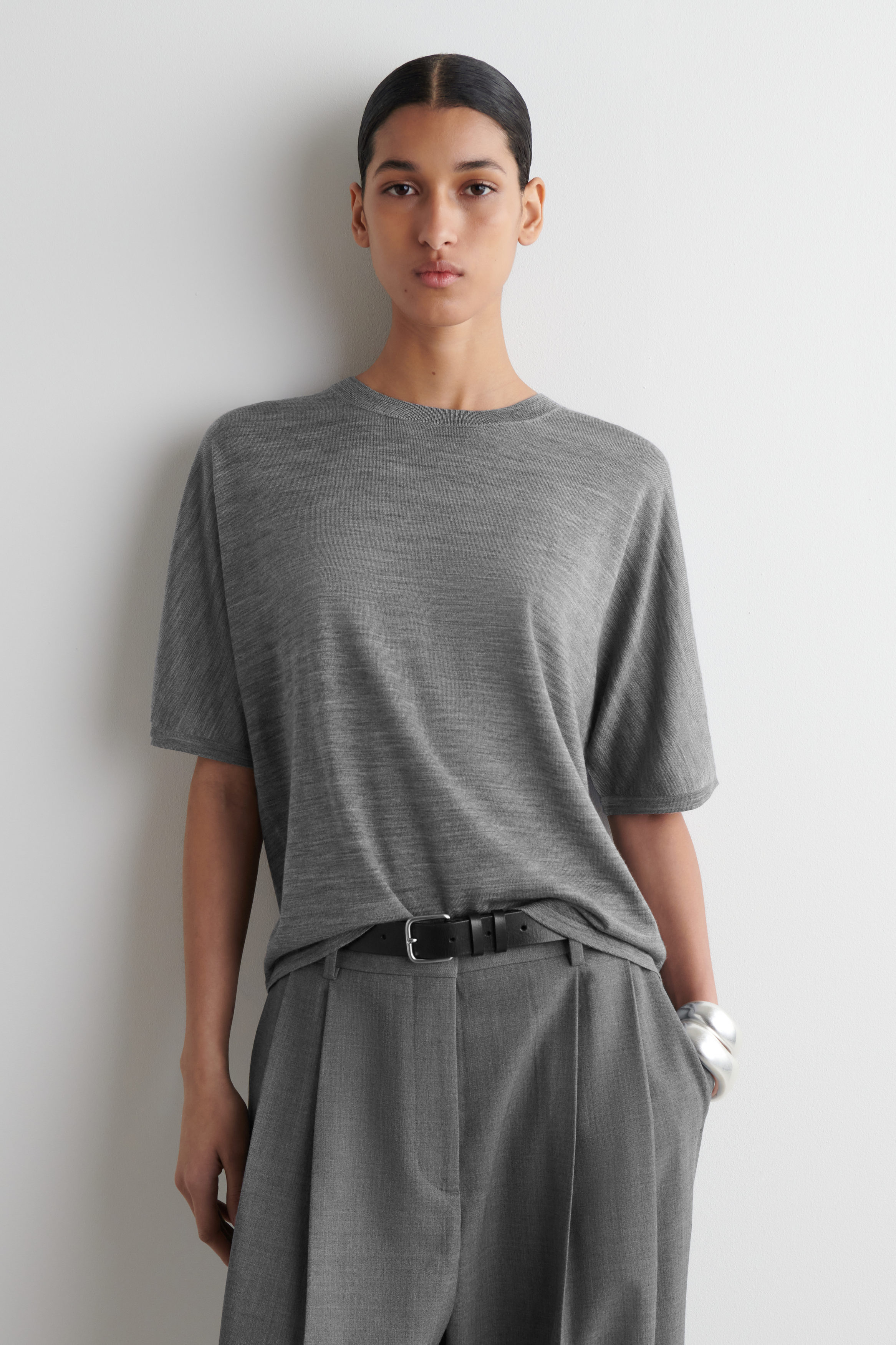Knitted T-shirts are a refined yet understated staple. Offered in a rich grey tone, this one is crafted from premium merino wool and TENCEL™ Lyocell, chosen for its soft, light and delicate handle. It's shaped with a crew neckline and finished with tubular trims.