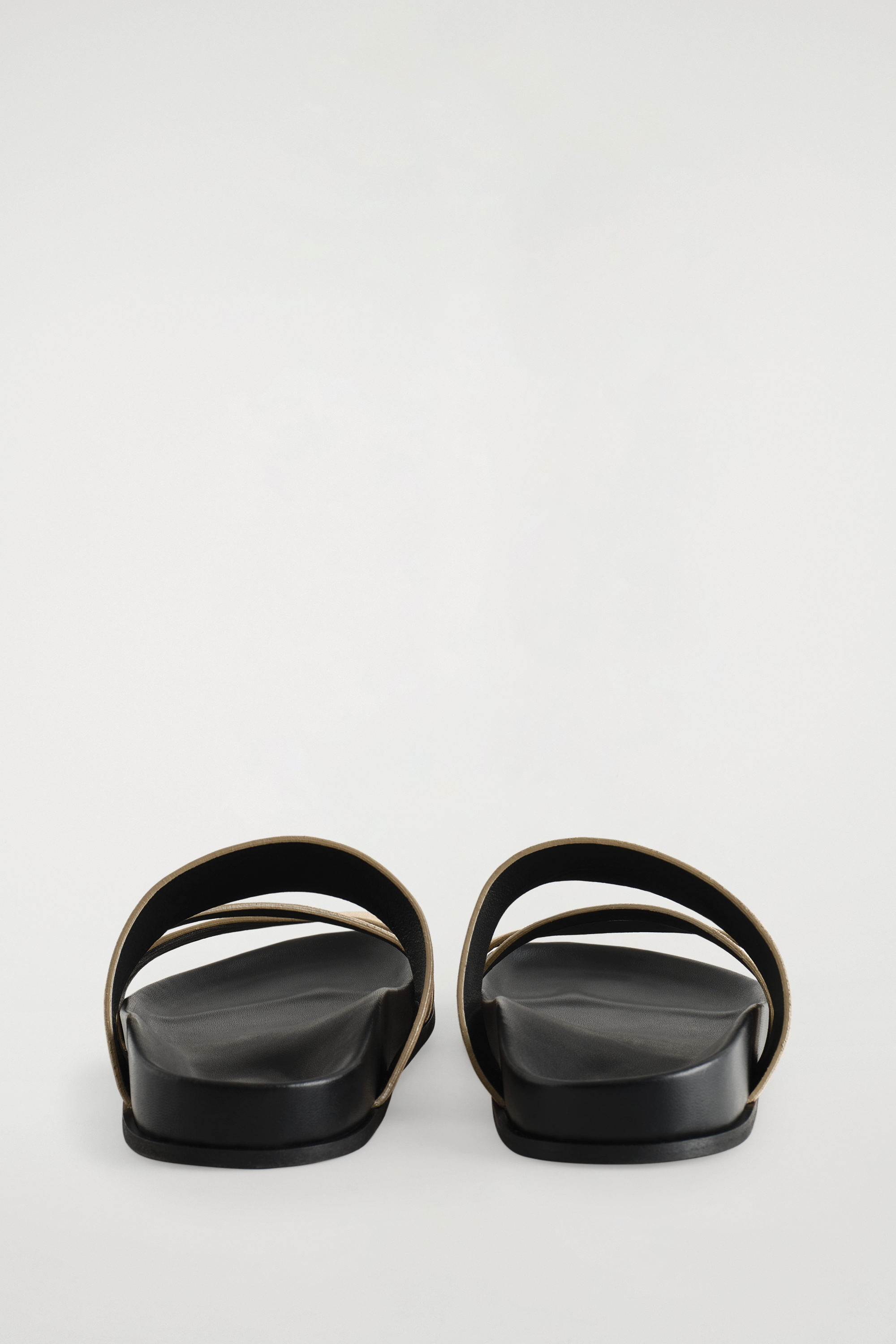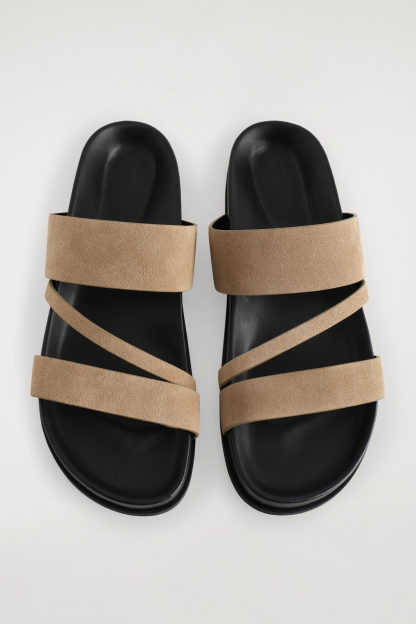 De här eleganta sandalerna utgör ett mångsidigt tillskott till vår- och sommargarderoben. De är gjorda av mjuk, kromfri mocka och har en asymmetriskt spännesdetalj och formgjutna fotbäddar i läder för en bekväm känsla.