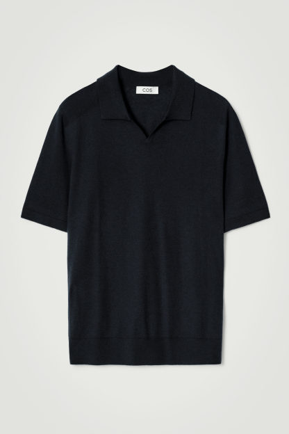 FINSTICKAD PIKÉTRÖJA I KASHMIR MED ÖPPEN KRAGE
