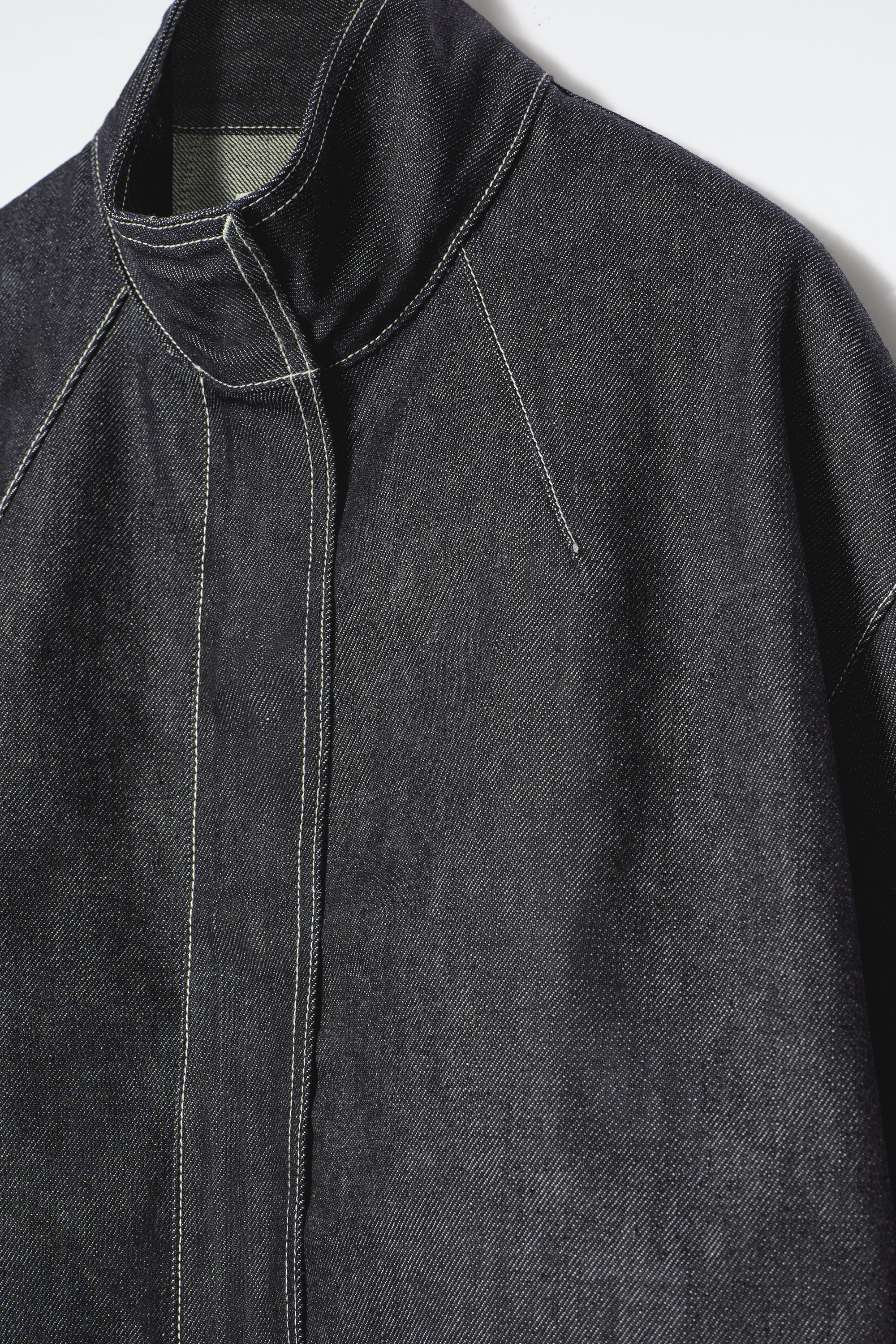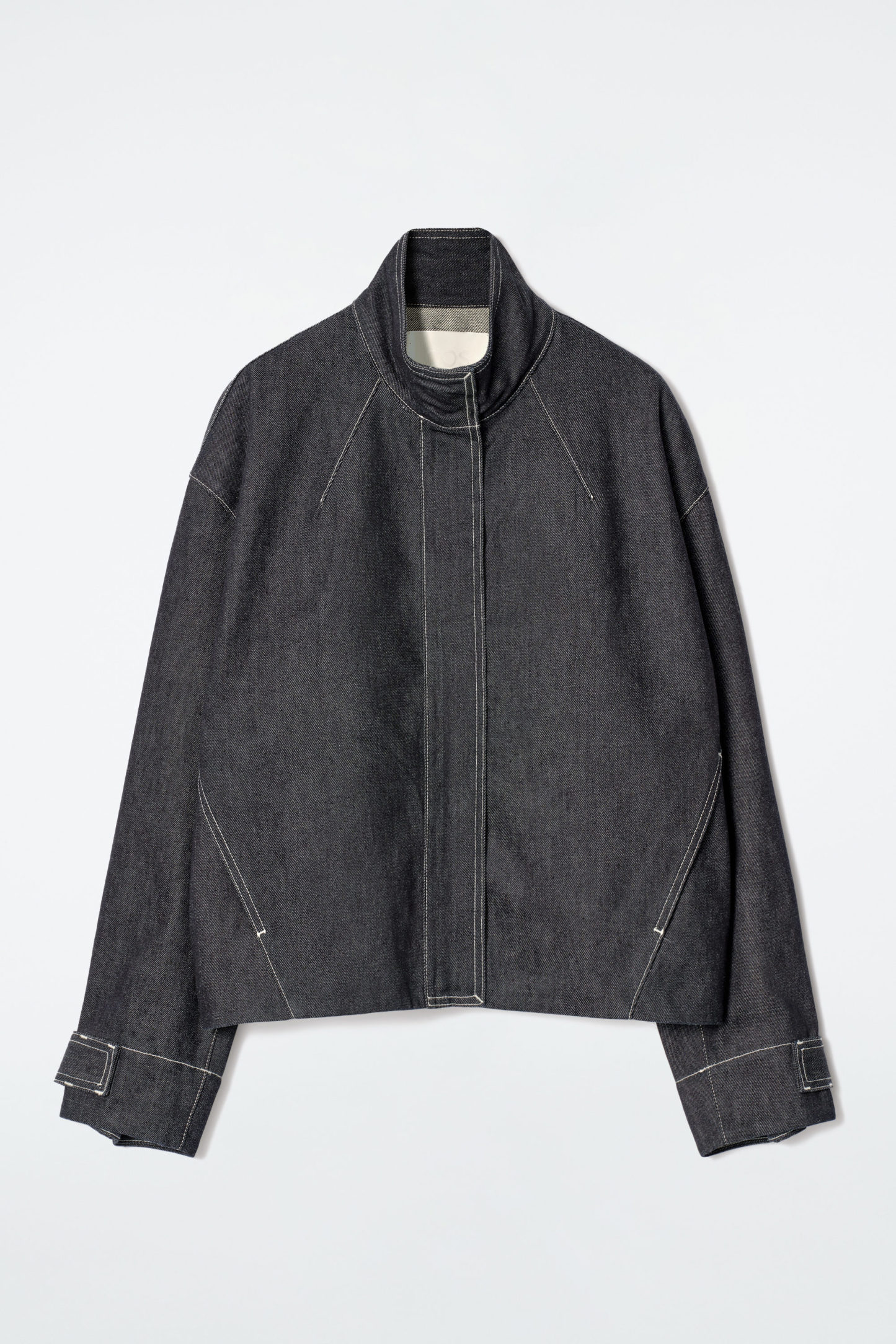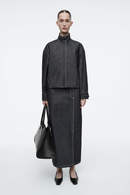 Det här plagget är en del av cthtos Remade – en kapselkollektion i denim tillverkad av 20% insamlade, pre-loved bomullsplagg från cthtos, vilket ger fibrerna en förnyad funktion. Den här indigofärgade jeansjackan hämta inspiration från klassiska bombersilhuetter och har ett rundat snitt. Designen är moderniserad med hög krage och dold knäppning upptill. Styla med den matchande toppen och kjolen för en fulländad look