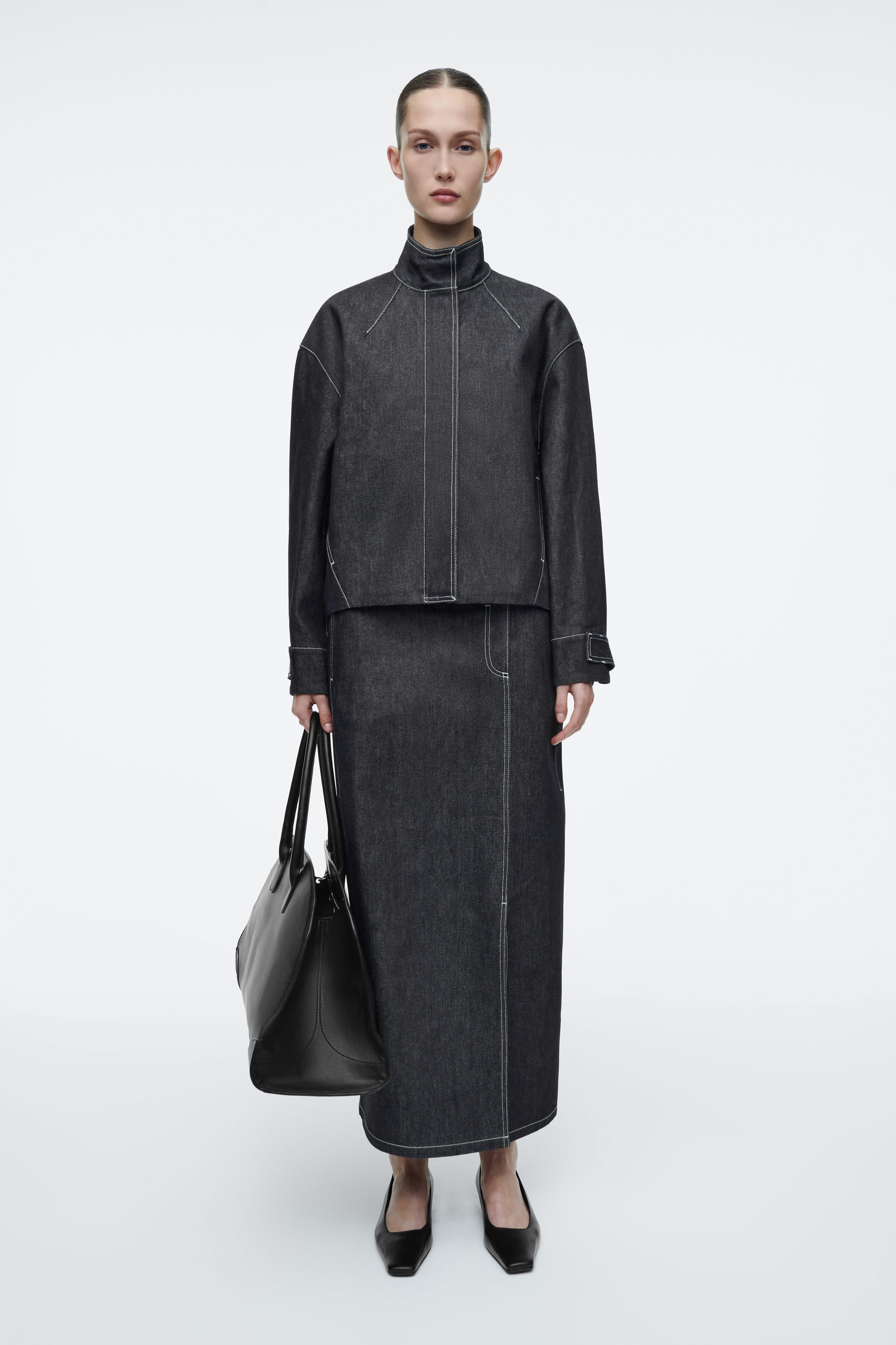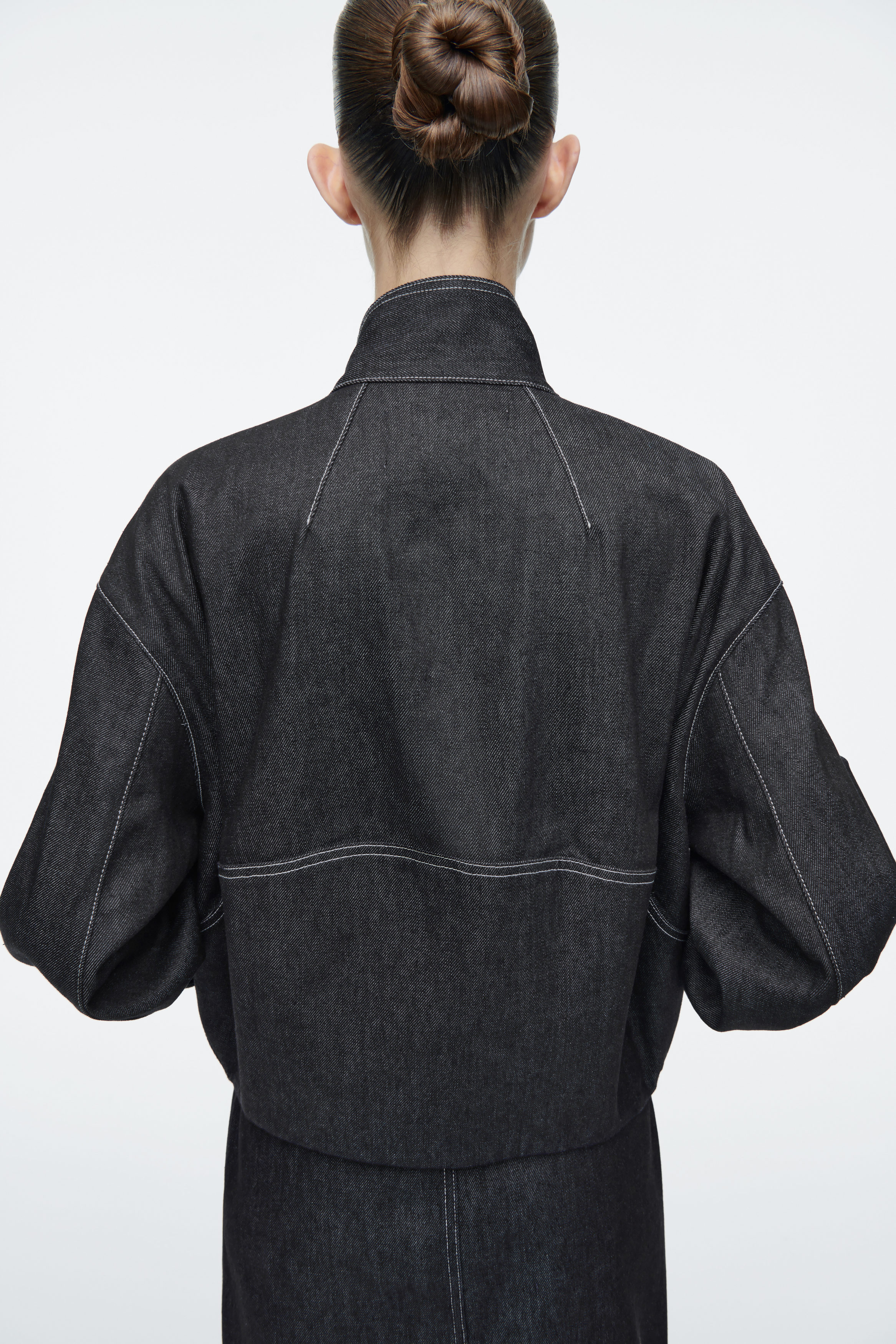 BOMBERJACKA I DENIM MED RUNDAD SILHUETT