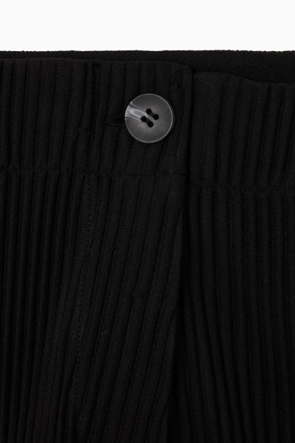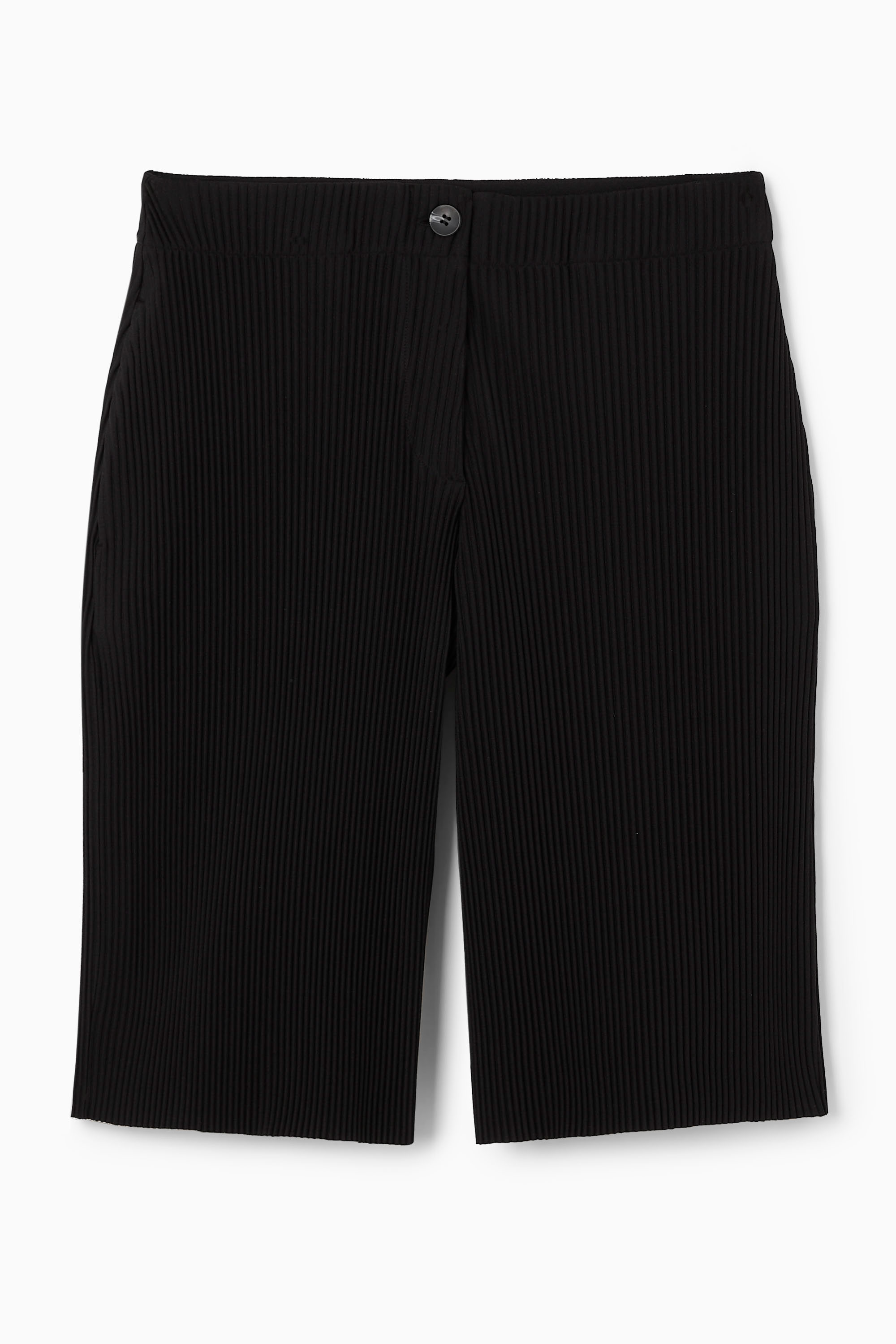 De här bermudashortsen i trikå är knälånga och plisserade för en ripplad effekt. De återvunna materialen ger plagget struktur och dolda sidofickor gör dem praktiska. Även om designen är diskret sticker den ut tillsammans med matchande topp och jacka.