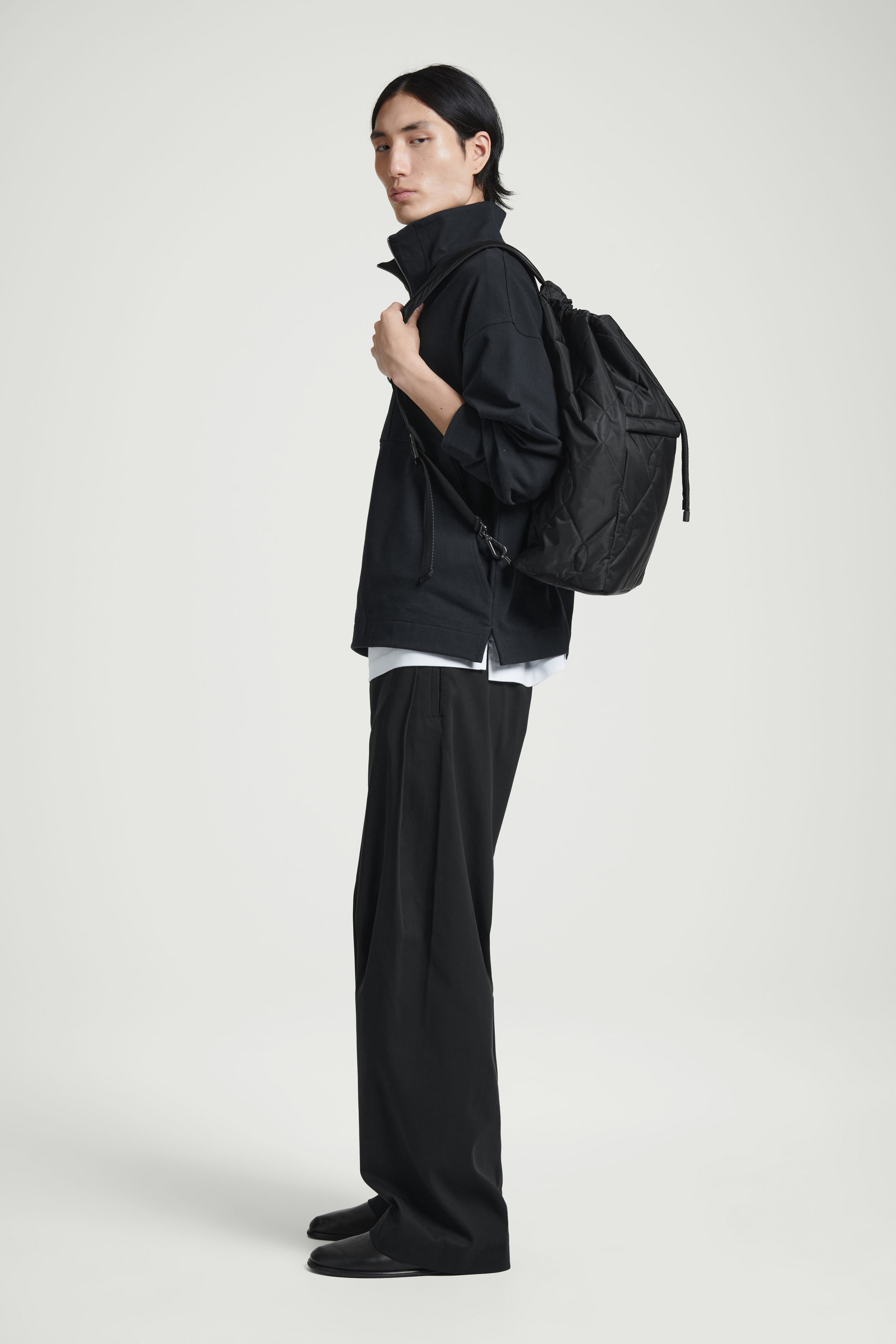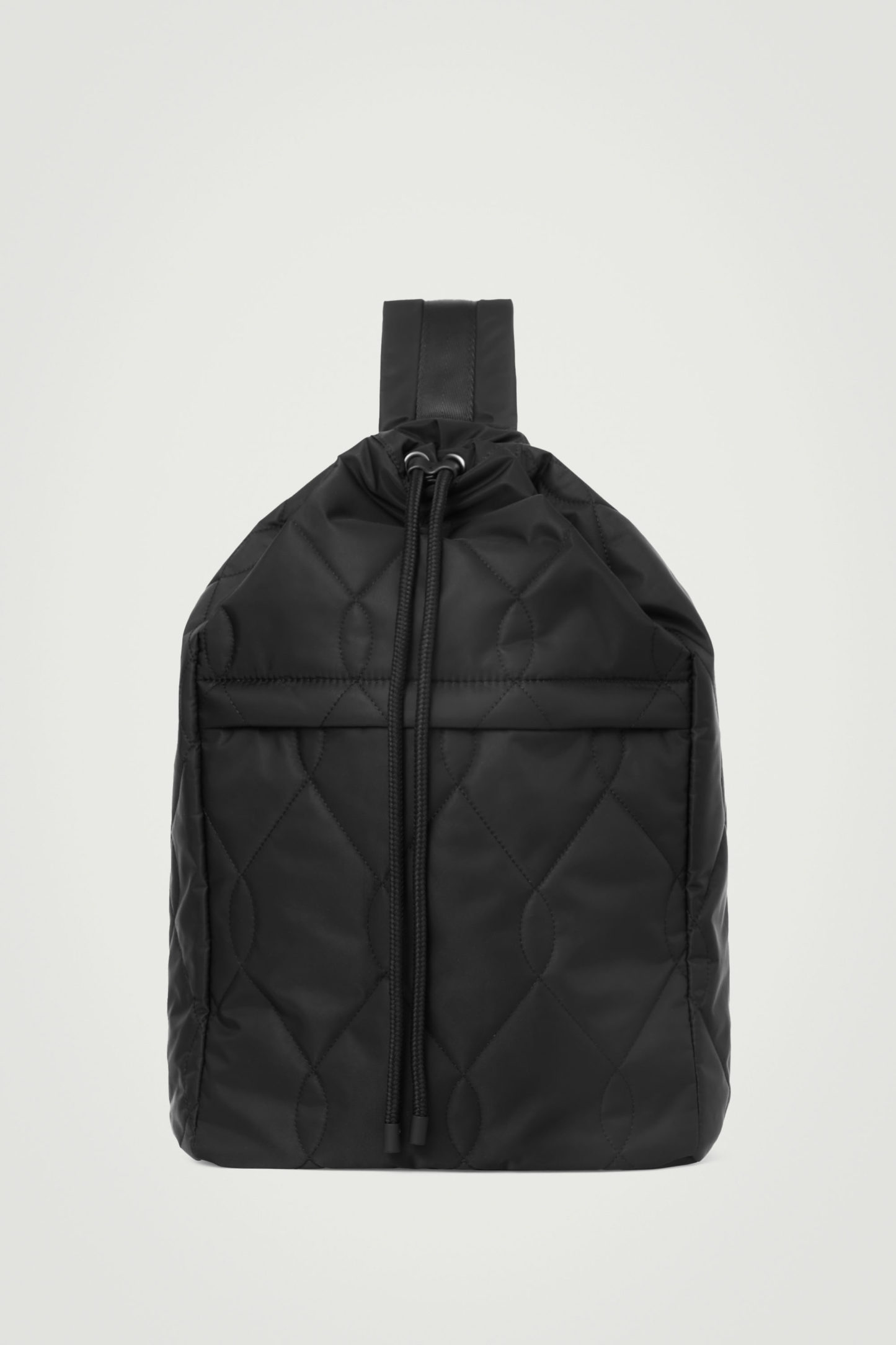 Den här duffelväskan med dragsko är gjord av quiltad, återvunnen nylon och har ett rymligt fack med dragkedja framtill och generösa dimensioner med plats för dina viktigaste saker. Designen har ett justerbart axelband och en praktisk, silverfärgad D-ring.