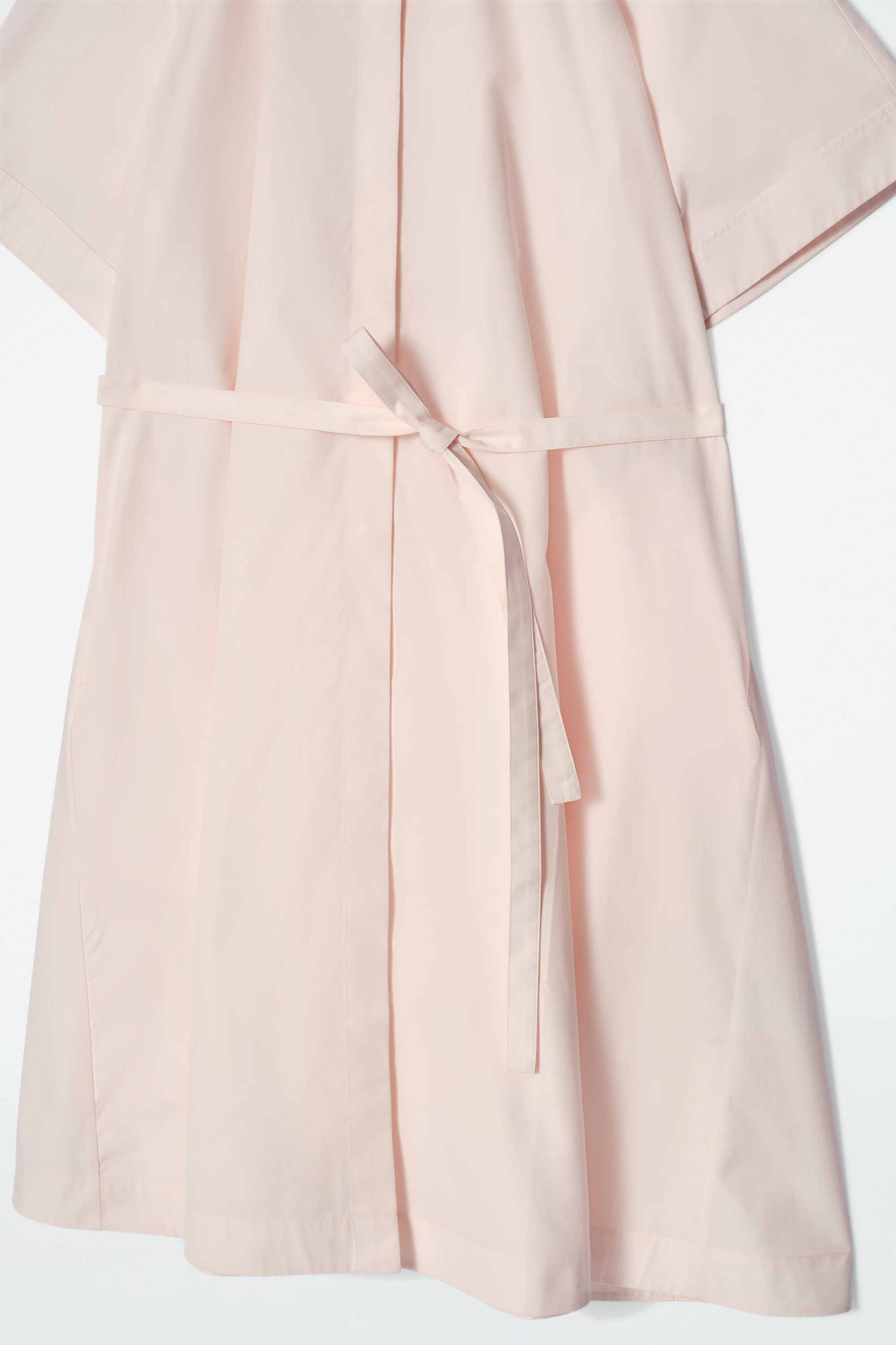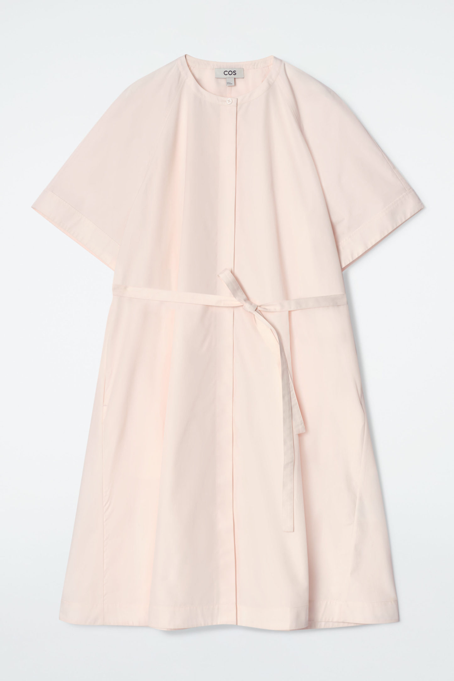Den här midiklänningen har en stilren och elegant silhuett – notera murarkragen, raglanskurna ärmar och den voluminösa, a-linjeskurna formen. Klänningen är tillverkad i mjuk bomullspoplin och har en trenchcoat-inspirerad panel på ryggen samt diskreta fickor i sidsömmarna och ett skärp som låter dig leka med den lediga passformen.