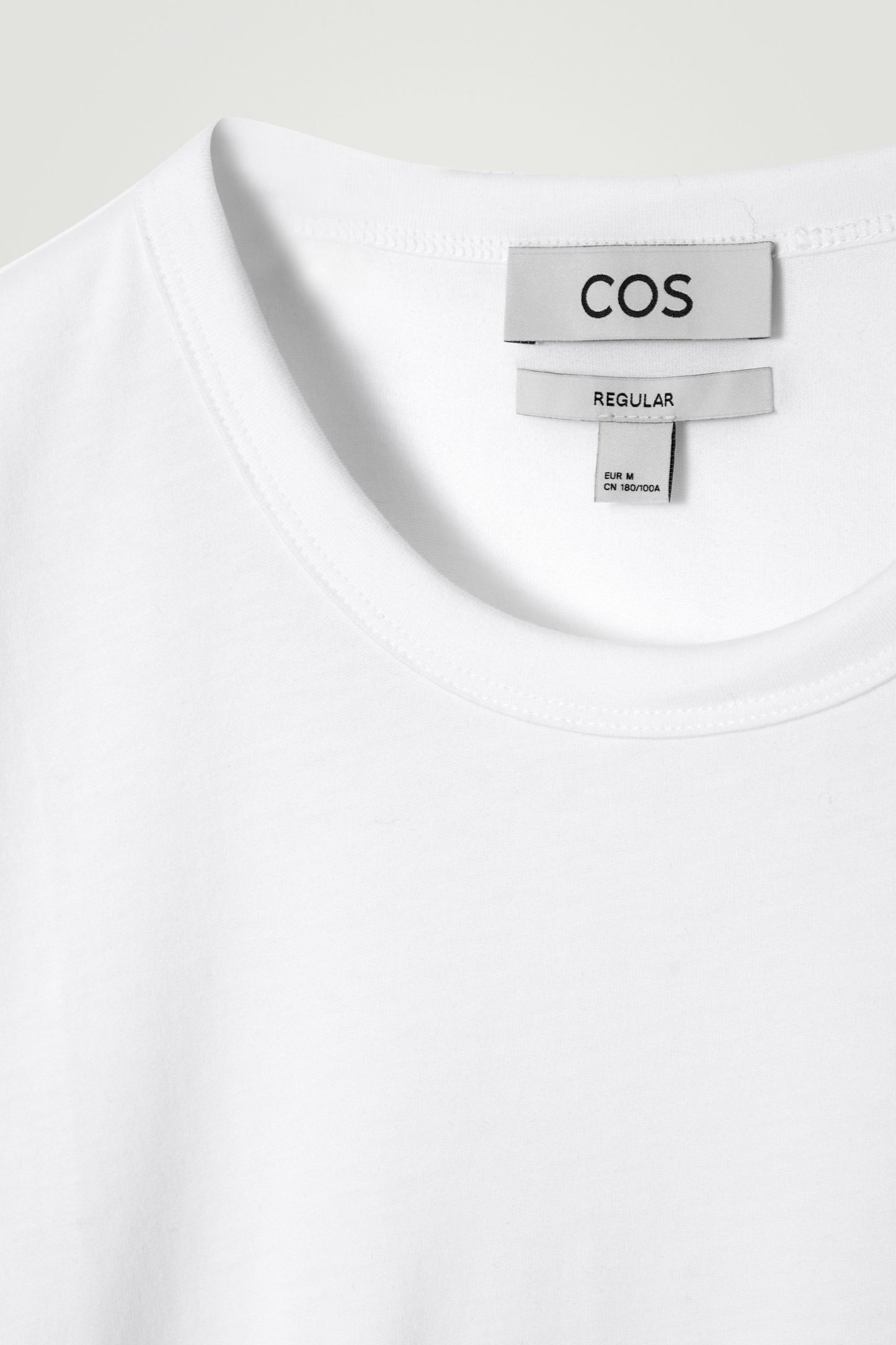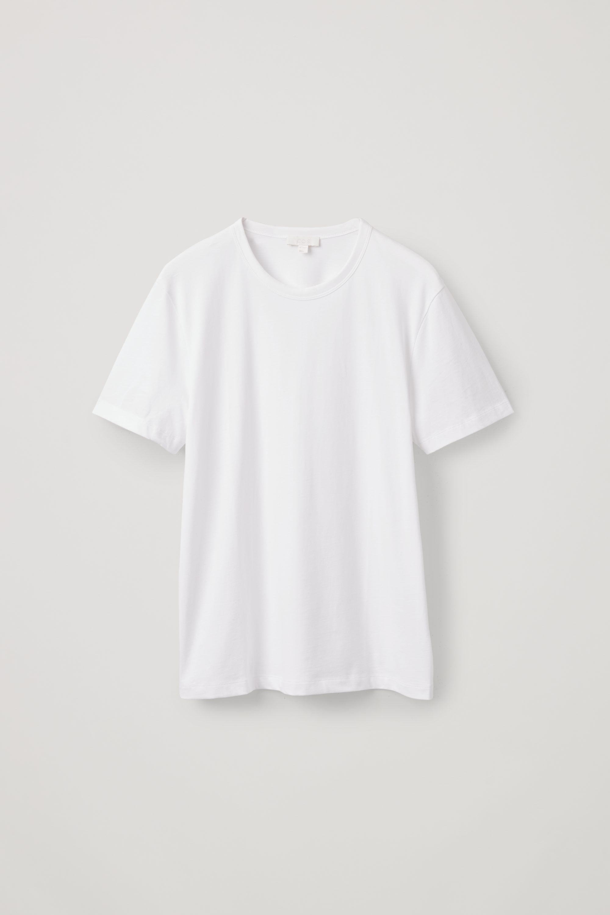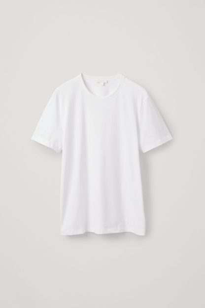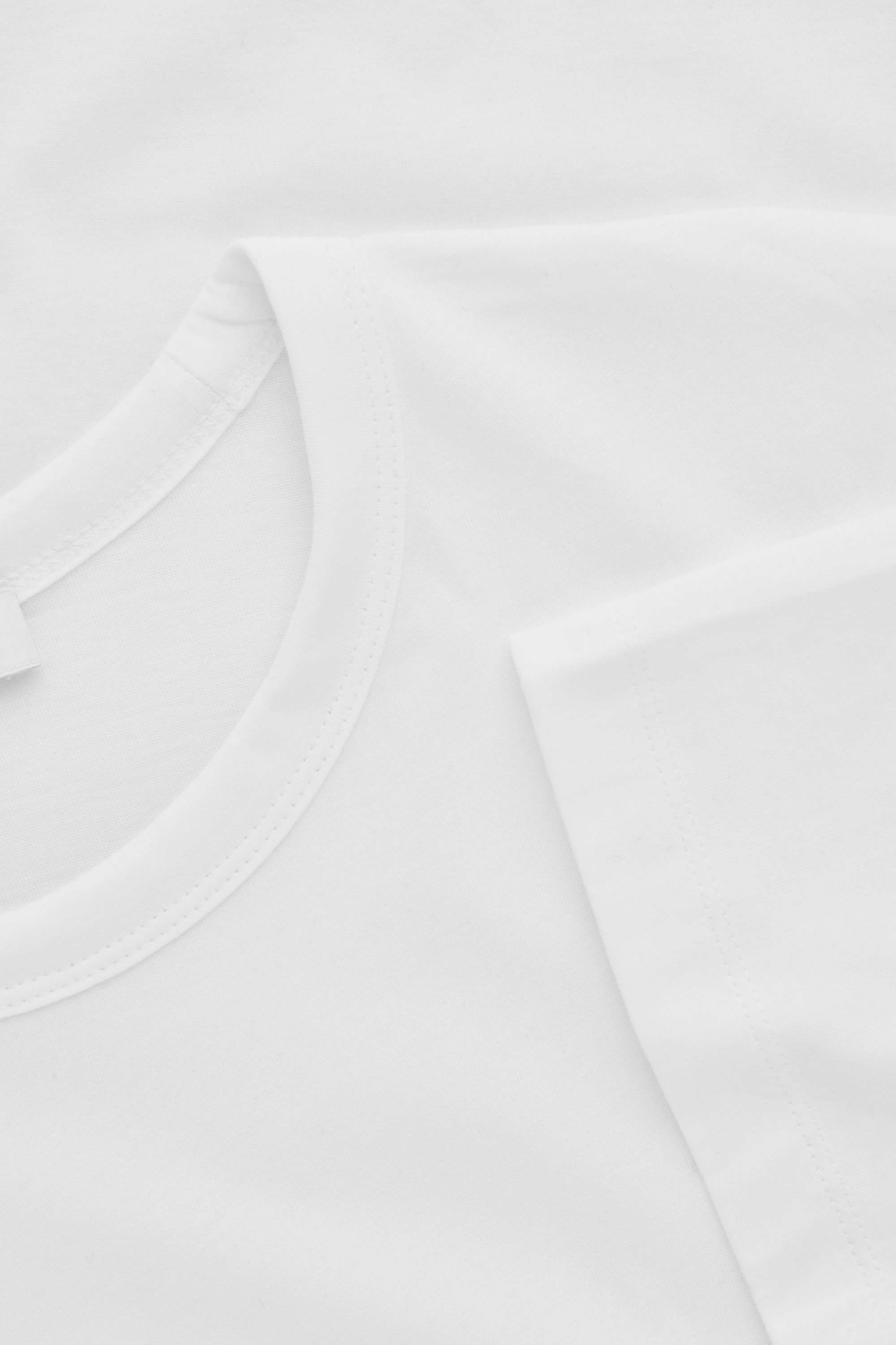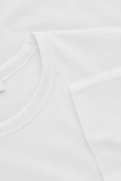 Den borstade t-shirten har utgjort en hörnsten i vår kollektion från dag ett – och av goda anledningar. Den är gjord av 160 g/m² bomullstrikå, har en lyxigt mjuk känsla och är lätt nog att bära med andra lager. Den klassiska passformen i vitt har gott om plats för rörelsefrihet i bröstet och ärmarna.