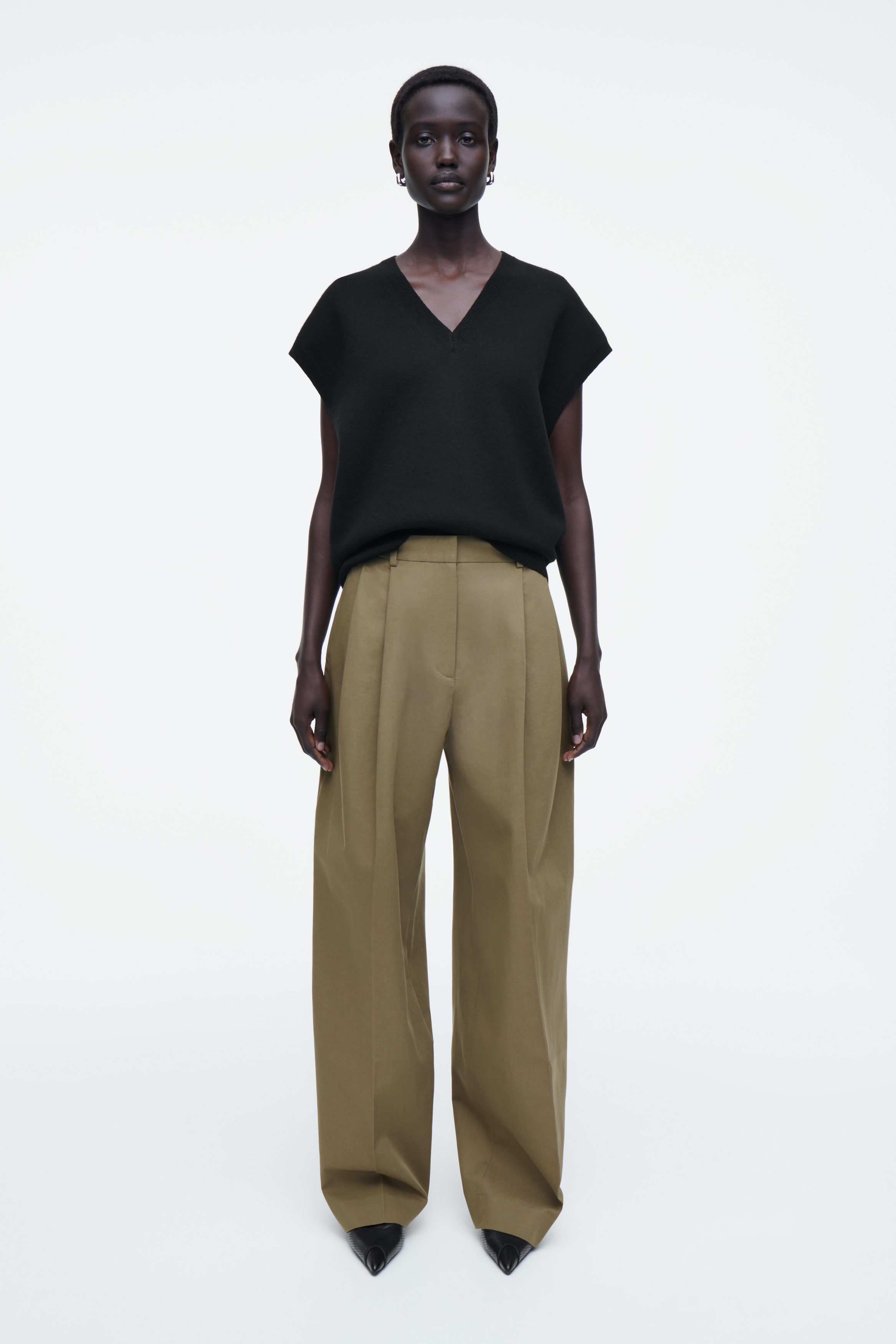 Dessa byxor är en hörnsten i cthtos damkollektionen. De är tillverkade av lätt bomullstwill och har ett ledigt snitt med skarpa pressveck fram och lösa, vida ben. Reglerbara band inuti linningen låter dig experimentera med passformen.