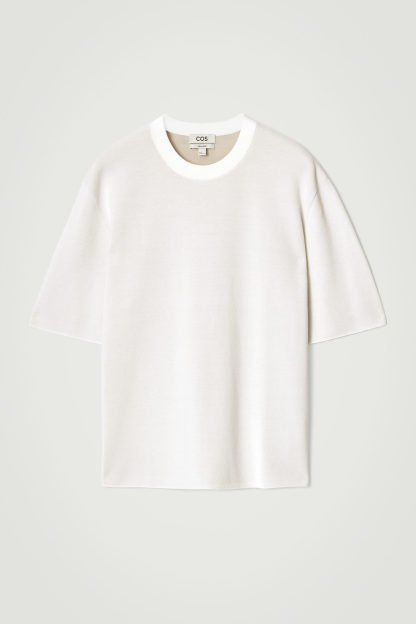 Refined wardrobe staples continue to anchor the cthtos menswear collection this season. Offered in a subdued white hue, this contemporary T-shirt is crafted from knitted organic-cotton piqué in place of classic jersey and double-faced in beige for subtle structure. It's cut in an effortlessly relaxed shape and designed with a ribbed crew neck and wide half sleeves.