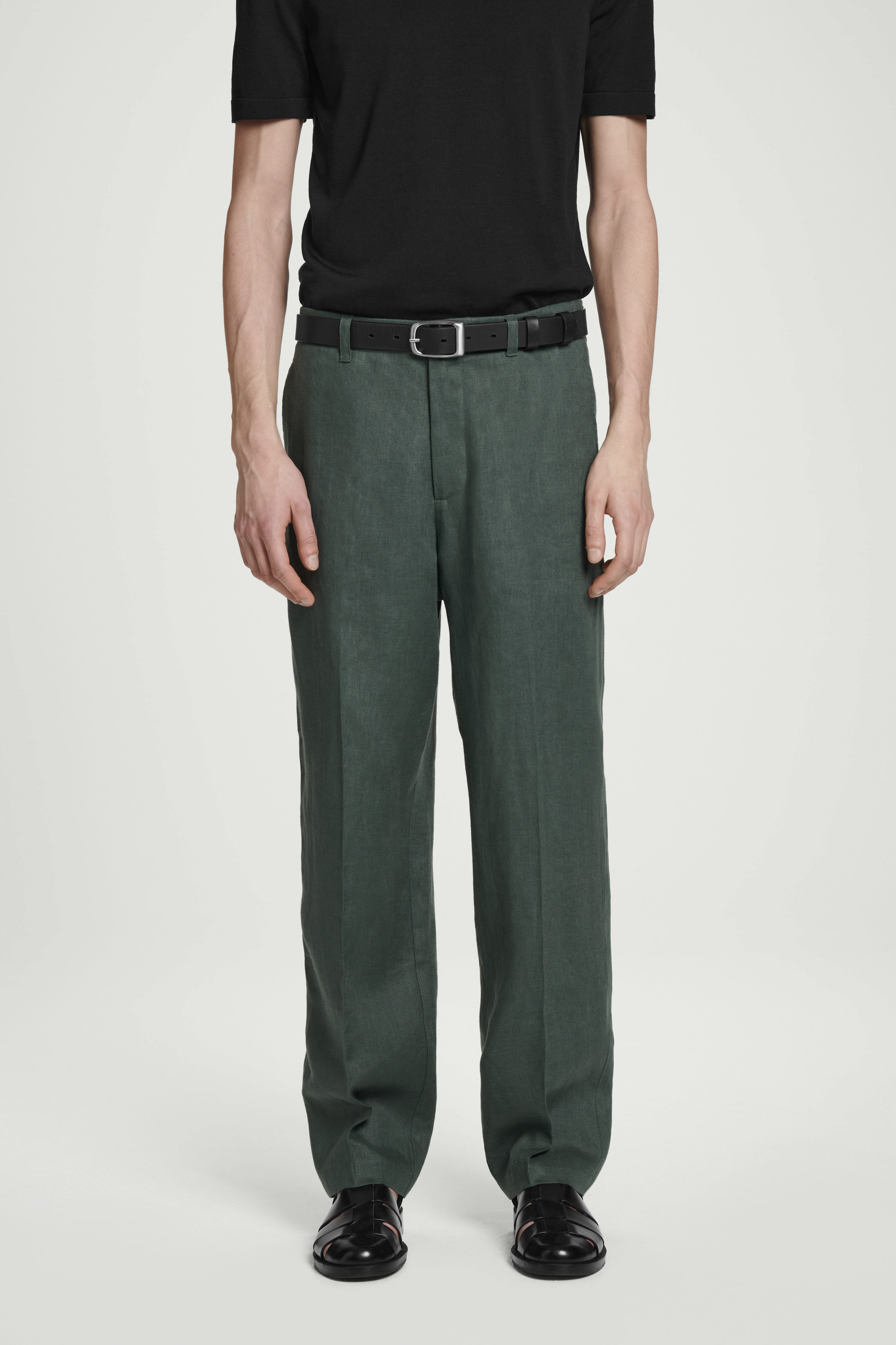 Pared back yet polished, these trousers propose a refined take on summer dress codes. They're crafted from linen that has a light, textured handle and tailored in a relaxed shape with tapered legs and an adjustable tab inside the waist to perfect the fit. Style them as a suit with the matching blazer.